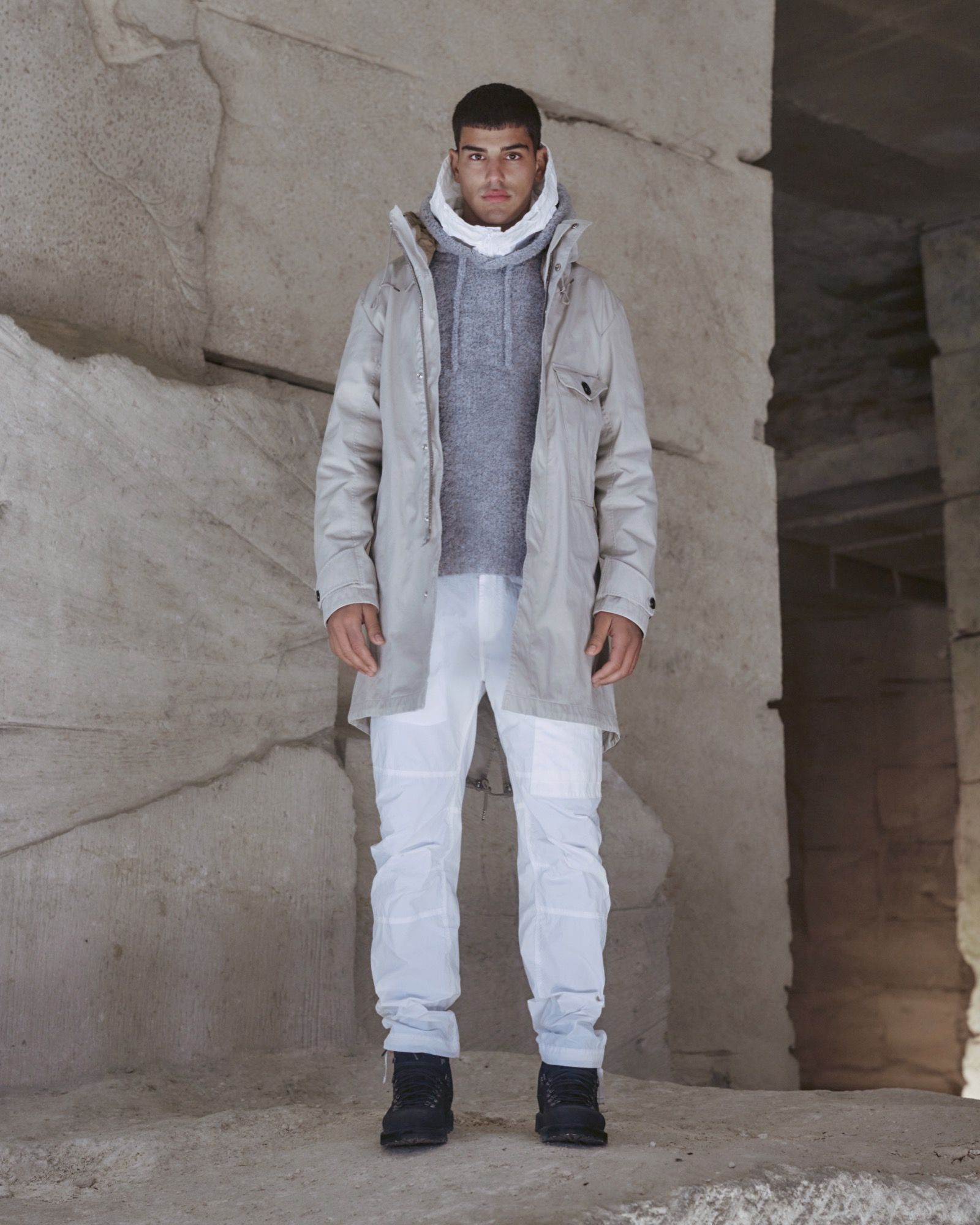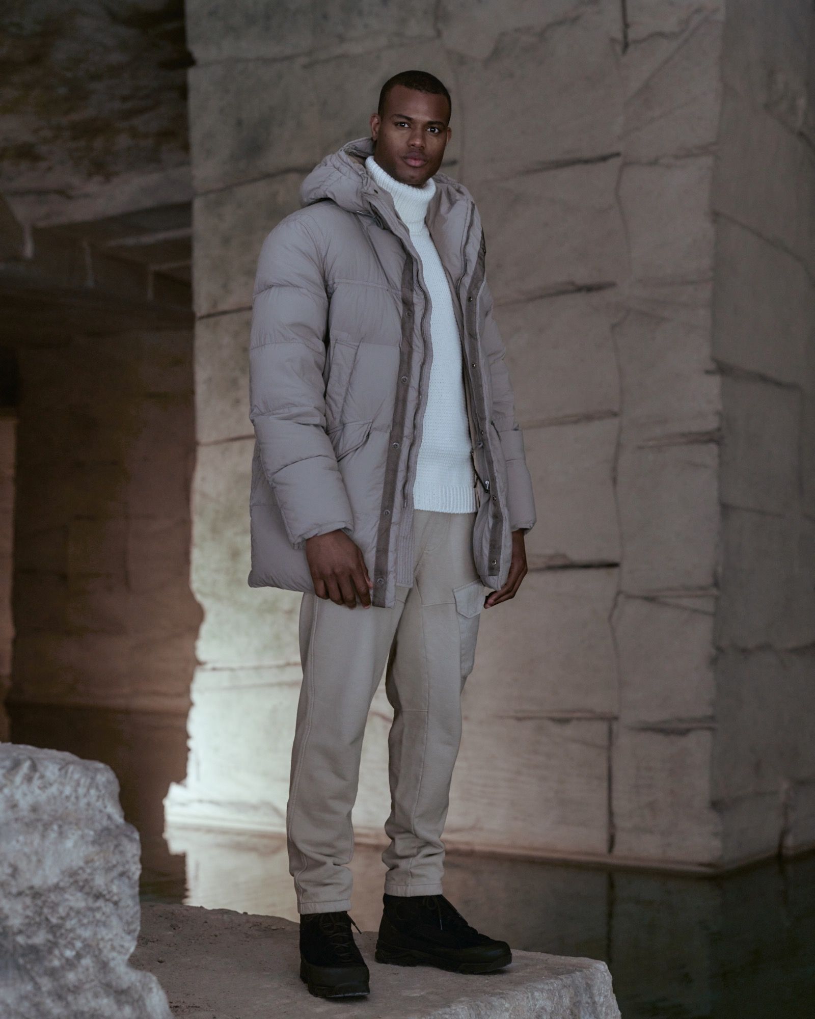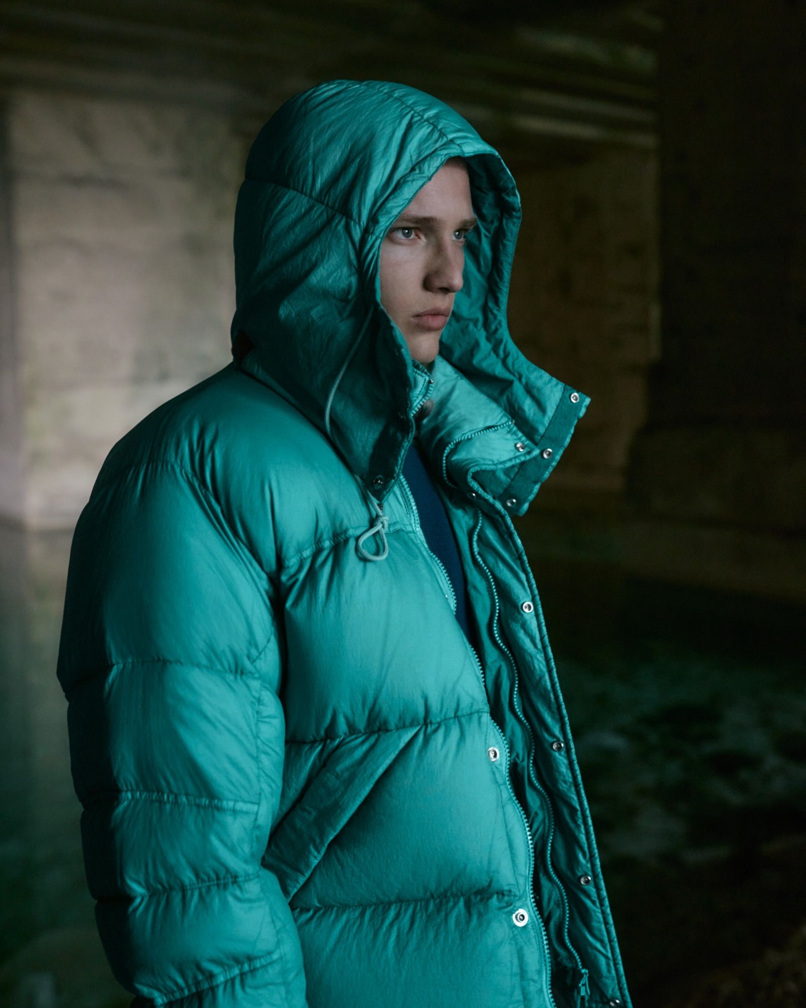 Tre colori segnano la nuova campagna della FW23/24 di Ten c, trovando ispirazione nelle sfumature che compongono le Cave di Arcari, dove sono stati scattati i capi. Tra il verde militare dei muschi e delle alghe che si appoggiano sulle pareti rocciose, l’avorio della Pietra di Vicenza e il nero che incombe negli spazi più nascosti di questo luogo, il brand celebra la storia di uno dei siti più suggestivi dell’Italia e il suo posizionamento nell’architettura moderna, essendo stato scelto da David Chipperfield per ospitare il tempio da lui disegnato. Questa nuova collezione conferma l’impegno da parte del brand di celebrare l’heritage italiano, sia per i suoi paesaggi che per il suo artigianato, e la sua dedizione per una continua ricerca, dall’introduzione di tecnologie all’avanguardia, come l’ibridazione dei materiali con la combinazione di tessuti diversi, al perfezionamento della funzionalità dei capi.