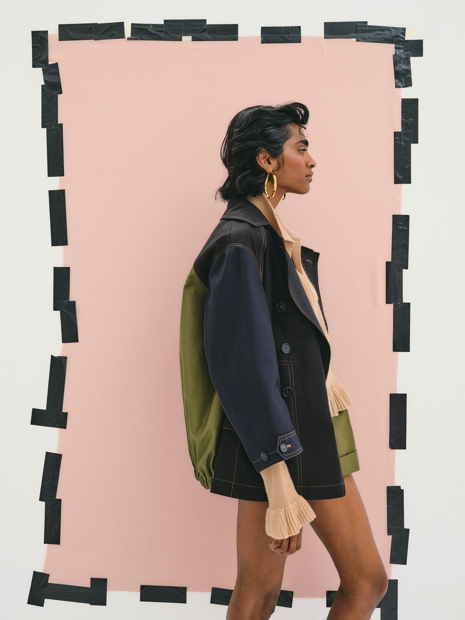 Al centro della storia di Colville ci sono sempre state idee ben precise, come la sostenibilità, la visione di una moda sempre più circolare che comprende non solo upcycling e riciclo, ma anche la la longevità delle creazioni. I modelli più amati del passato vengono rivisitati e rinnovati di stagione in stagione. Nella SS24, diversi classici dell'archivio - inclusi quelli delle prime stagioni - vengono presentati in nuove declinazioni, con stampe fresche ed energiche e una palette di colori accesi. C’è il versatile Rider Parka in cotone, che ha visto il suo debutto nell'FW19, rielaborato in un lussuoso color cammello e navy; la camicia a tunica leggera e arricchita con tasche viene abbinata a nuovi pantaloncini sartoriali; la camicia con il retro in pizzo, ora disponibile in un vivace arancione o in una stampa in bianco e nero. Ma non mancano le nuove proposte.