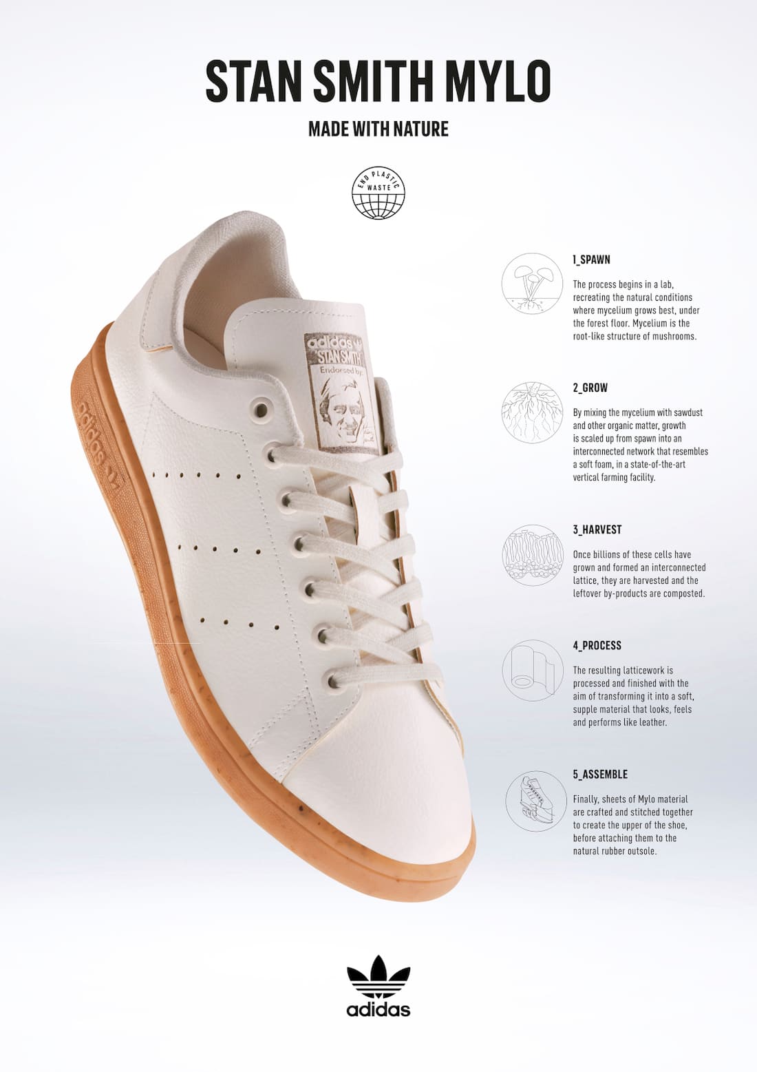 Nel settore dello sportswear e delle calzature, alcuni brand si sono fatti avanti nella sperimentazione delle fibre vegetali per le loro produzioni. Nel 2016, adidas ha lanciato le Stan Smith Mylo, una rivisitazione delle iconiche trainer low top Made with Nature, ovvero create con le radici sotterranee rinnovabili dei funghi, mentre nel 2022 Lululemon ha lanciato la prima collezione di borse yoga in micelio. In Italia, più precisamente ad Erba, vicino a Como, Golden Goose ha appena rinnovato la propria collaborazione con l’azienda Coronet al Yatay Lab, un progetto di co-action volto a supportare la ricerca e lo sviluppo di materiali bio-based tramite tecnologie e strumenti dedicati. Anche le t-shirt si sono fatte convincere dalle proprietà innovative delle fibre vegetali, con brand come Pangaia - che nelle sue giacche sostituisce le piume d'oca con i fiori - e Hyper Natural che utilizzano rispettivamente alghe marine e ortica selvatica, i gusci inutilizzati dei granchi e la pietra di giada. Da Bottega Veneta, casa di moda maestra nell'arte della pelletteria, i materiali vegetali scelti per essere trasformati in abito e accessorio sono stati lo zucchero di canna e il caffè - eco sostenibili, ma all'italiana.