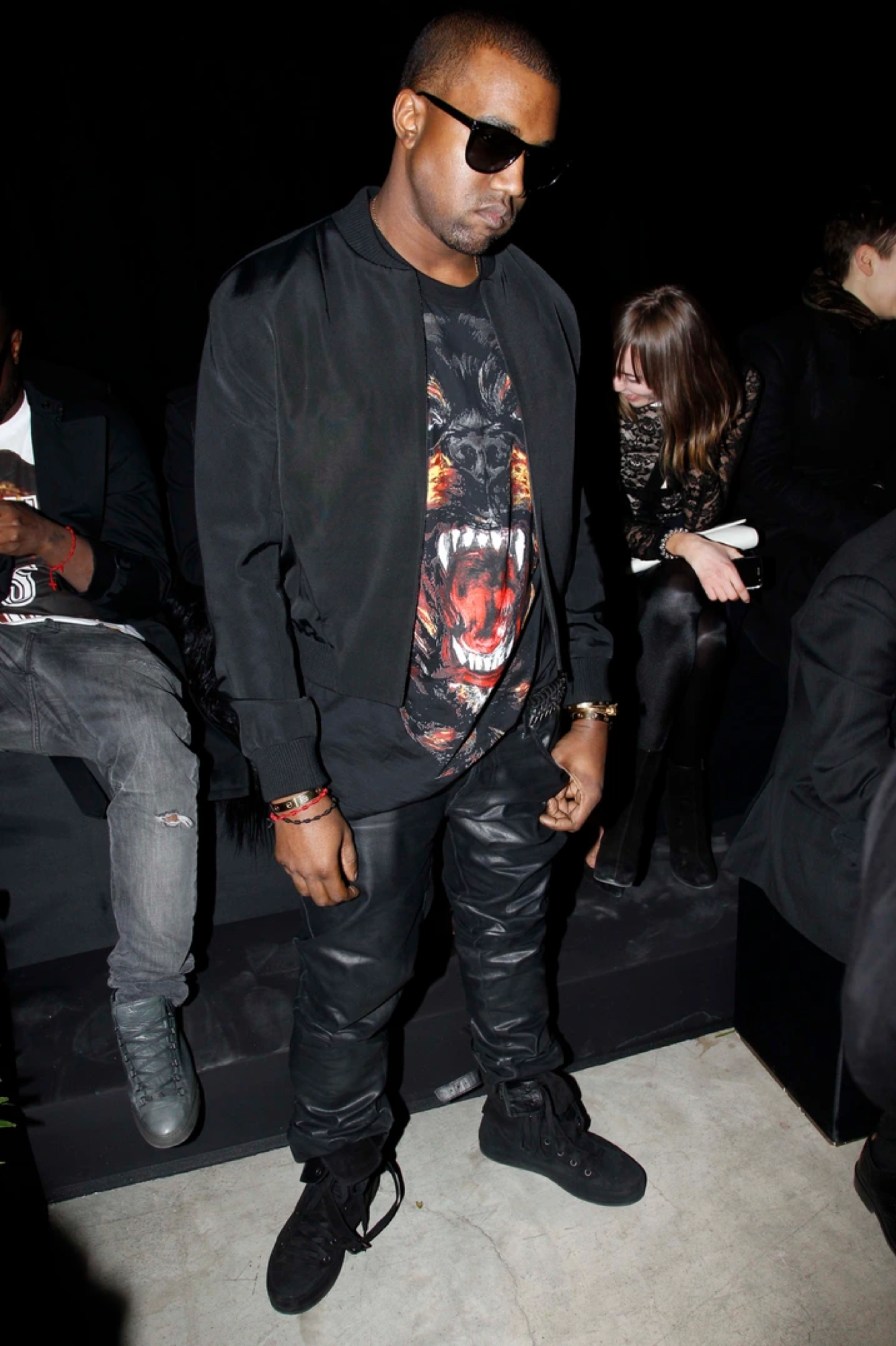 Kanye aveva già mosso i suoi primi passi verso i piani alti della moda: non era nuovo a matchare sneakers con duffel bag di Louis Vuitton e tote bag di Goyard, eppure, il primo brand high-end a godere a pieno dell'effetto Kanye fu Givenchy. Come nel caso della crewneck raffigurante l'orsetto di Polo Ralph Lauren e in quello della hoodie LRG, il terzo item realizzato da un marchio associato direttamente alla figura del rapper diventa la t-shirt di Givenchy contraddistinta da una stampa con un rottweiler; forte di un legame con Riccardo Tisci, al tempo direttore creativo della maison francese, Kanye si fece realizzare una t-shirt oversized custom made che avrebbe sfoggiato in alcune date del joint tour di Watch The Throne al fianco di JayZ - giusto per la cronaca, fu proprio Tisci a realizzare l'artwork presente sulla copertina del disco. La vendite di quella maglietta raggiunsero cifre da capogiro (incredibile se pensate che il retail era di circa €500), eppure la figura di Kanye non fu vincente, per Givenchy, solamente per l'exploit di quel prodotto in particolare, quanto per la diffusione di un nuovo stile. L'oversized da quel fatidico biennio 2011-2012, nella musica e nel fashion, prende una piega diversa; il rapper che veste denim larghi, Timberland e jersey XXXL assiste all'arrivo dell'accoppiata jeans skinny e t-shirt oversized, pronto a diventare predominante e che farà la fortuna di altri brand, come Hood By Air. Lato footwear, l'estro creativo di Kanye aveva già trovato espressione e influenza, negli anni precedenti, con il drop delle Bapesta (2007), della Air Max 180 tributo di The College Dropout mai rilasciata, delle diverse colorazioni di Nike Air YEEZY e infine delle tre silhouette (Jasper, Don e Mr. Hudson). Ma un uomo dalle risorse illimitate come Kanye non avrebbe mai potuto non spingersi oltre le sneaker: fu così che iniziò - pur non mettendoci mai mano - a indossare il noto Chelsea Boot di Bottega Veneta, uno stivaletto scamosciato che creò non poco fermento attorno al brand e al menswear tutto.
