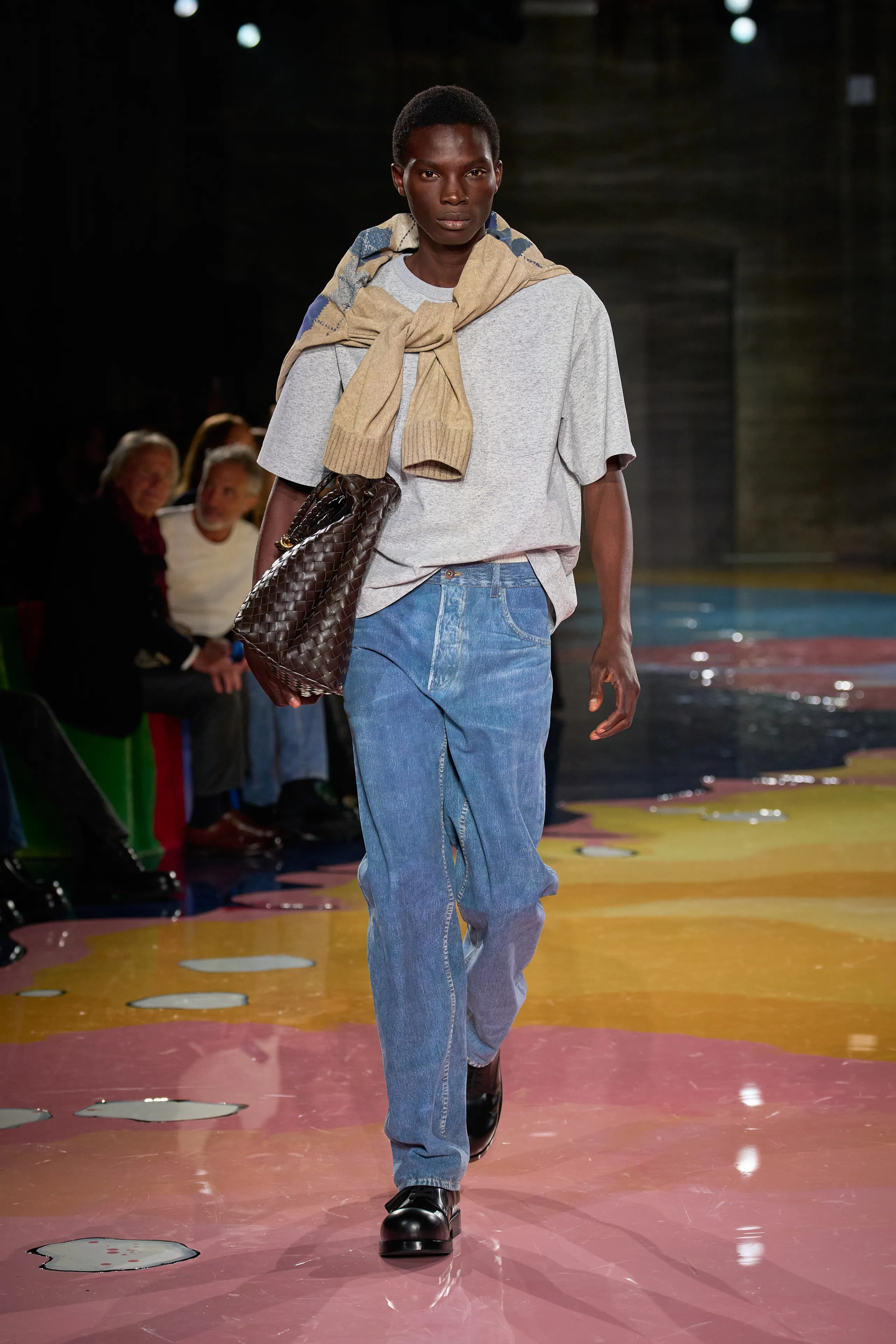 Anche nel 2023, Bottega Veneta e il suo direttore creativo Matthieu Blazy hanno dominato la scena. Con uno studio senza pari della tecnologia tessile e della pellettiera, la maison ha reso i look illusionisti un codice stilistico indelebile del proprio DNA. Sfoggiati per la prima volta in passerella da Kate Moss per lo show SS23 e in seguito indossati da Kim Kardashian sulla copertina di settembre di Interview Magazine, il denim in pelle tromp l’oeil di Bottega Veneta ha scosso la fashion industry e ispirato innumerevoli altri brand a sfidare i limiti del tessile. La pelle di Nabuk scelta da Blazy e dal suo team si è finta cotone, maglieria e pelliccia in questi ultimi mesi, ma l’iterazione denim resta la più notevole.