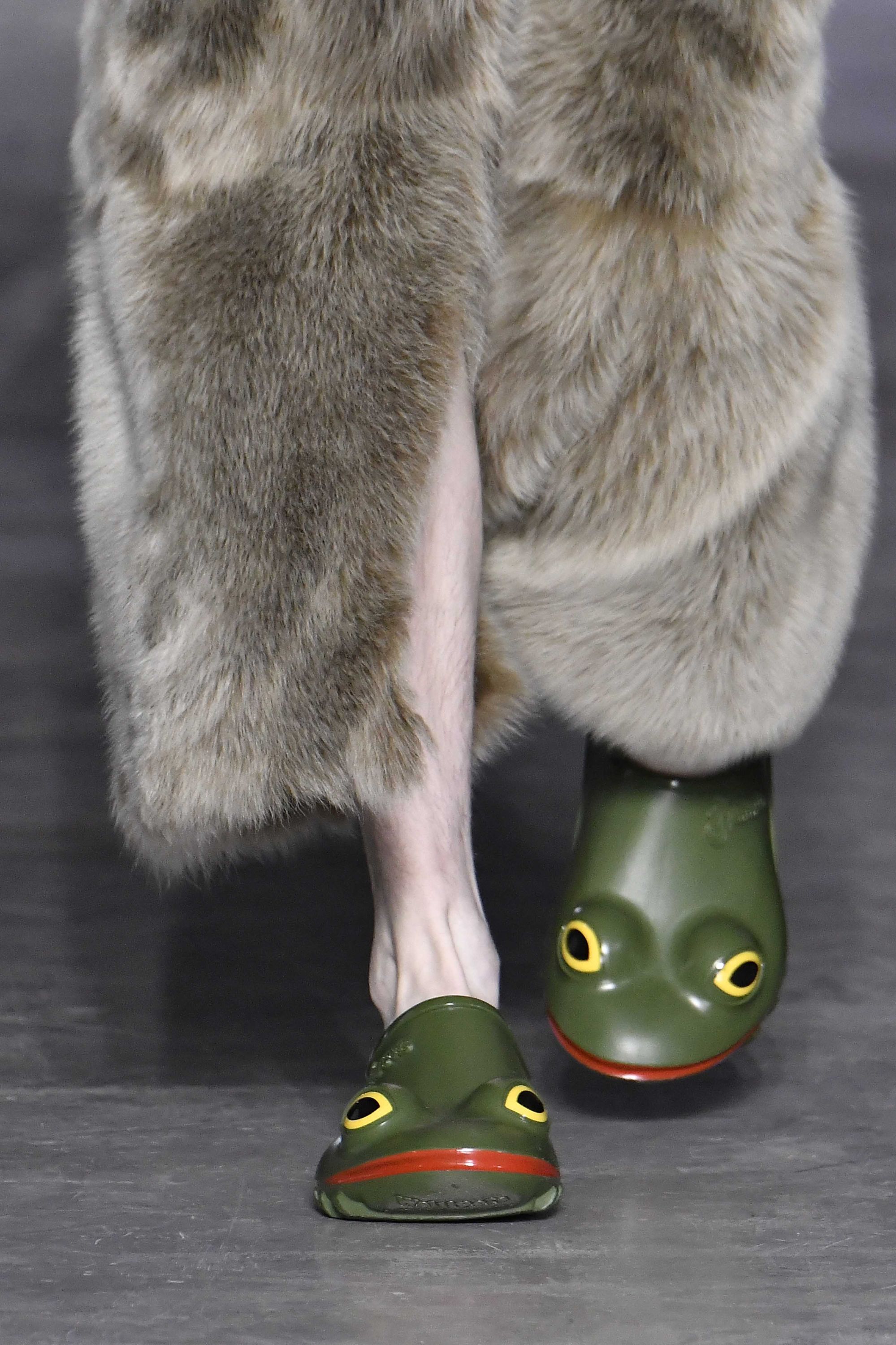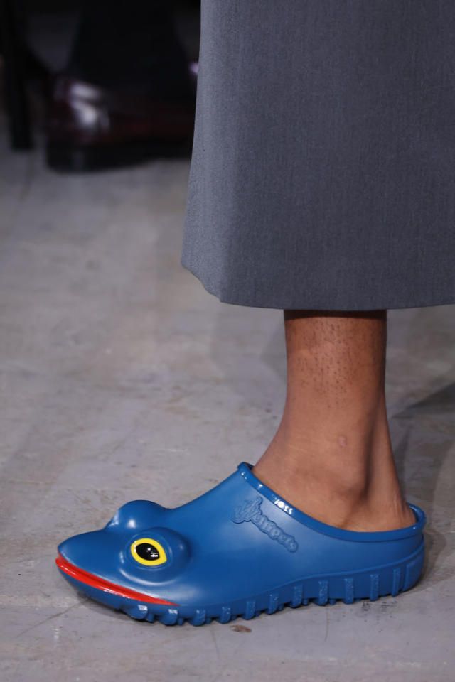 Le collezioni di JW Anderson hanno sempre dell’ironico. I design più stravaganti del designer e fondatore della maison sono sedimenti nostalgici della sua infanzia, la prova che per trovare qualcosa di nuovo serve osservare il passato. Uno degli articoli che ricorderemo maggiormente sono sicuramente le Frog Mules, le scarpe in gomma a forma di rana create in collaborazione con la marca inglese Wellipets e presentate a Milano durante la Fashion Week FW23. Un articolo inequivocabile in Regno Unito che ha raggiunto il valore di icona grazie ad una famosa fotografia dei principi Harry e William in compagnia di Lady Di, queste simpatiche rane in PVC sono state paparazzate negli anni ’80 dalle maggiori testate inglesi, e nel 2023 hanno trovato un’immenso spazio mediatico sui social.