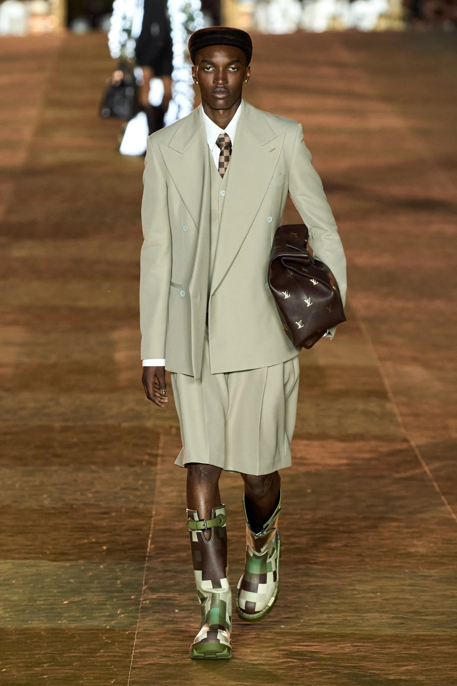 L’ingresso trionfale di Pharrell Williams nella storia della moda è stato orchestrato sul Pont Neuf, per l’occasione trasformato in titanica passerella riempita di tutte le star, tutti i giornalisti, buyer e designer più importanti del mondo. Se Parigi si popola di stelle a ogni fashion week, l’intero Olimpo della moda si è riunito ad assistere a uno show che non riguardava solo il brand più redditizio al mondo, ma anche un importante passaggio di consegne che si è compiuto, se pur tardivamente, nel migliore dei modi. L’intero concept dello show era collegare Parigi alla Virginia «i ricordi della Princess Anne High School di Virginia Beach, un istituto fondamentale per la formazione del Direttore Creativo, così come i ricordi della strada che lo hanno guidato fino ad oggi», come dicono le show notes del brand.