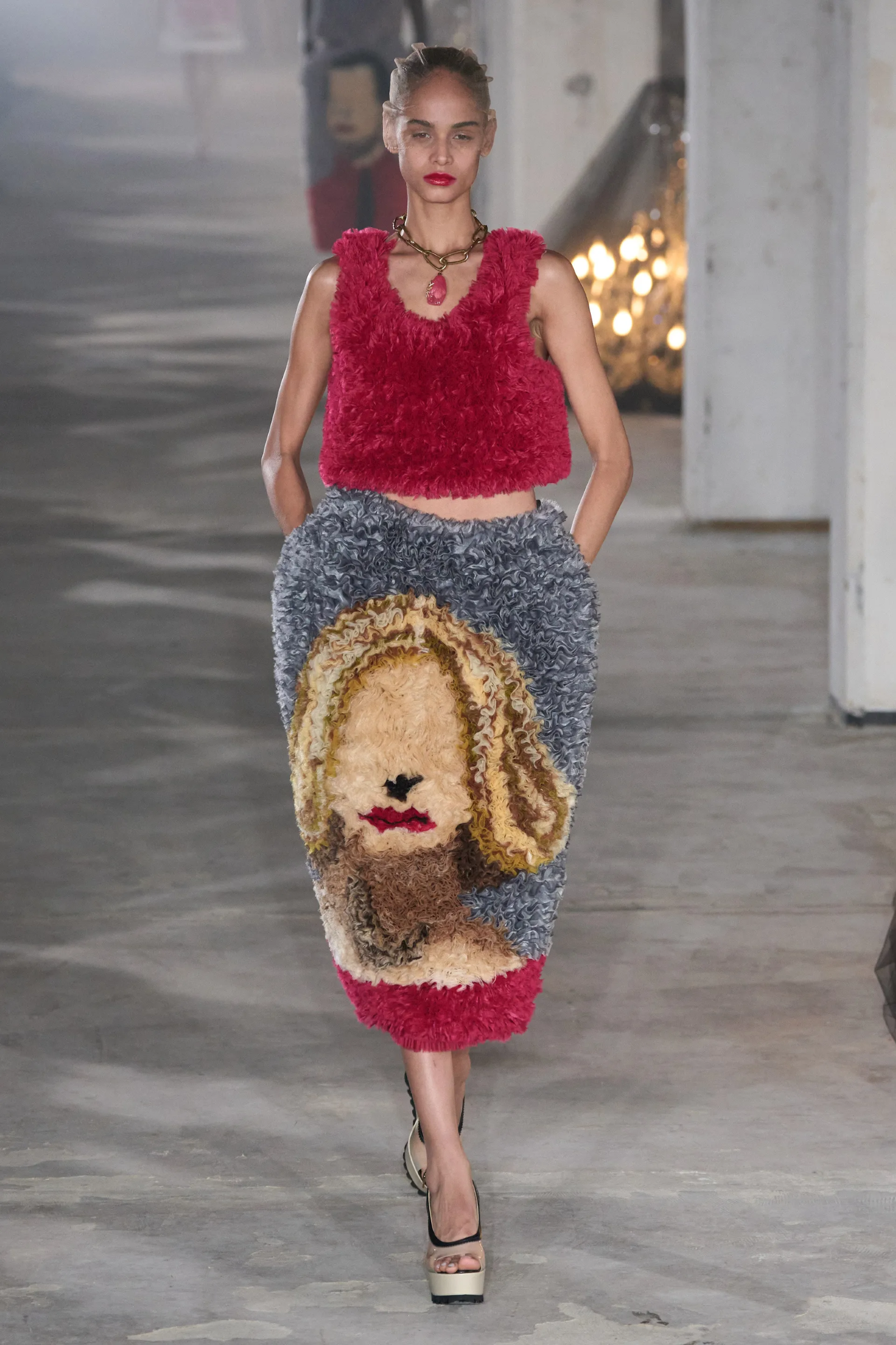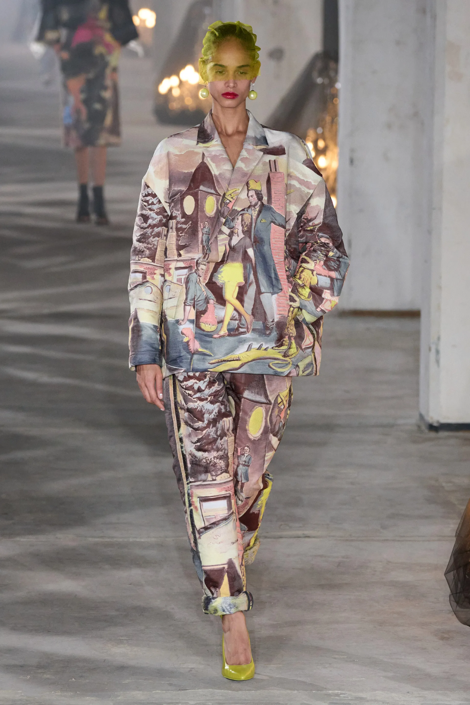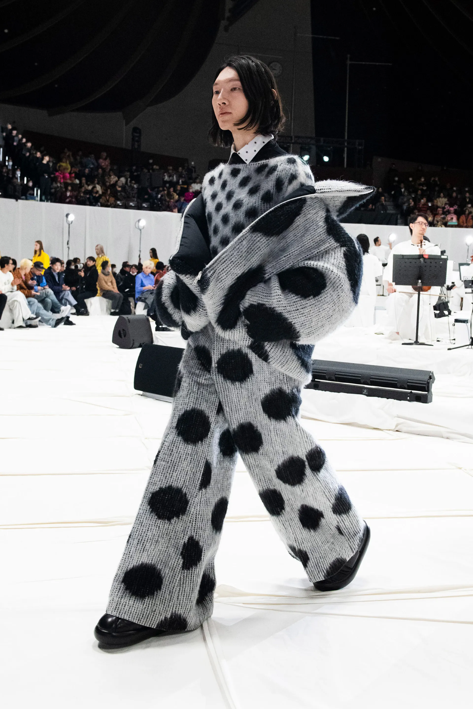 Gli show di Marni hanno sempre qualcosa di poco convenzionale – ma quello di Tokyo è stato forse più grandioso degli altri. A partire dai capispalla rigonfi firmati dall’artista Dingyun Zhang, che hanno inaugurato una collezione basata su colori intensi e acidi, fino alla location del tutto ricoperta di lenzuoli bianchi, l’orchestra con i suoi archi, i suoi tamburi e i suoi sintetizzatori hanno fornito al pubblico uno show tanto eccentrico quanto memorabile.