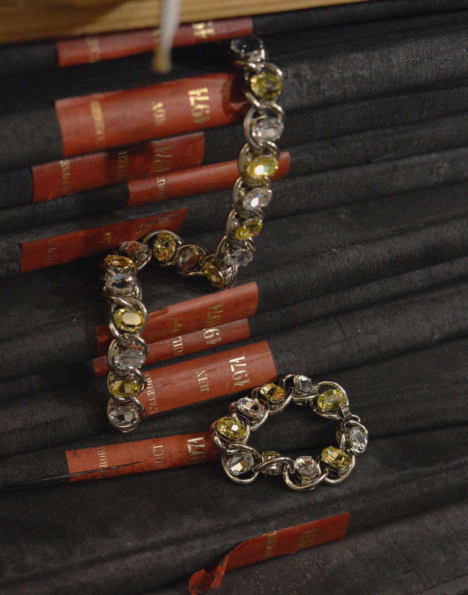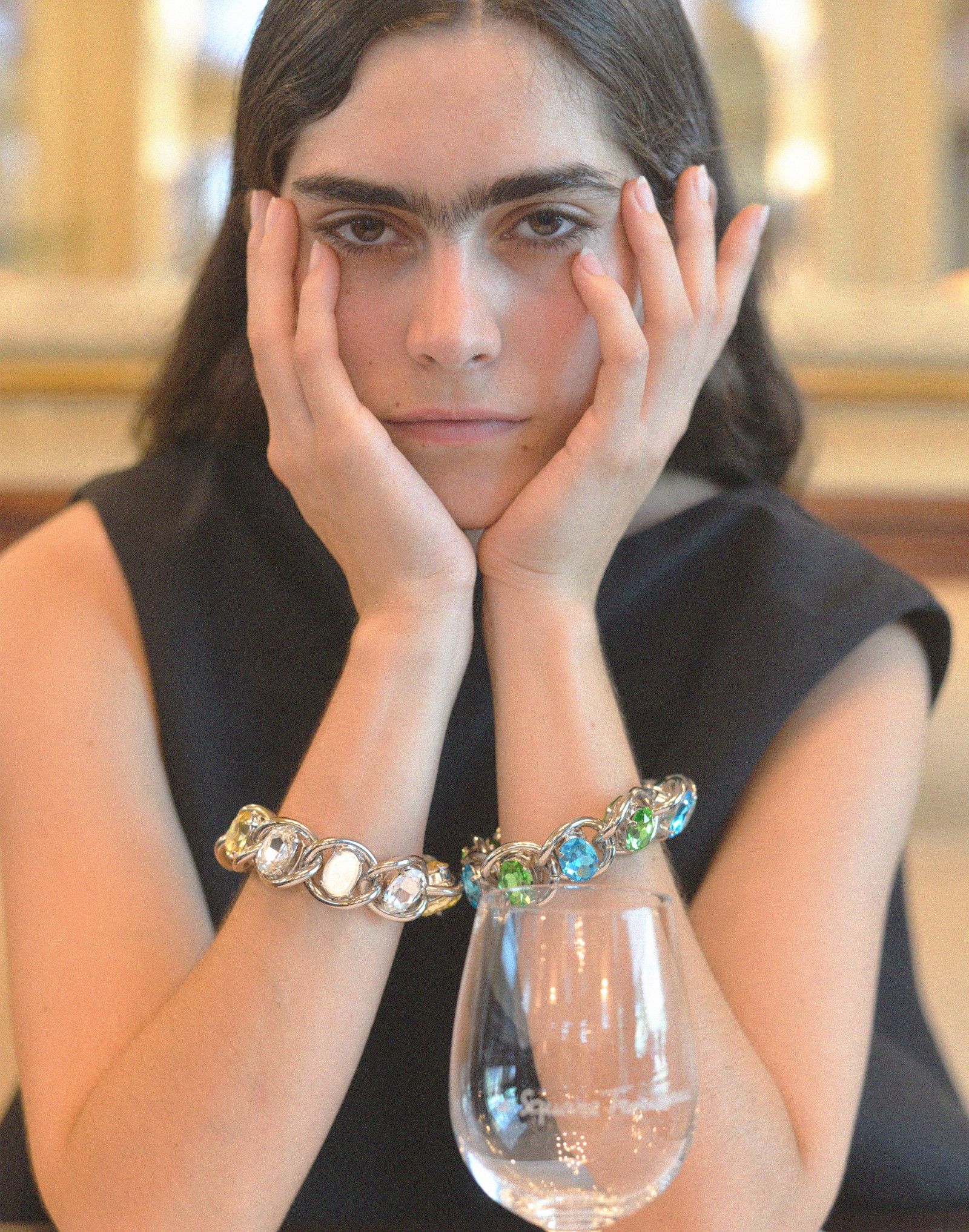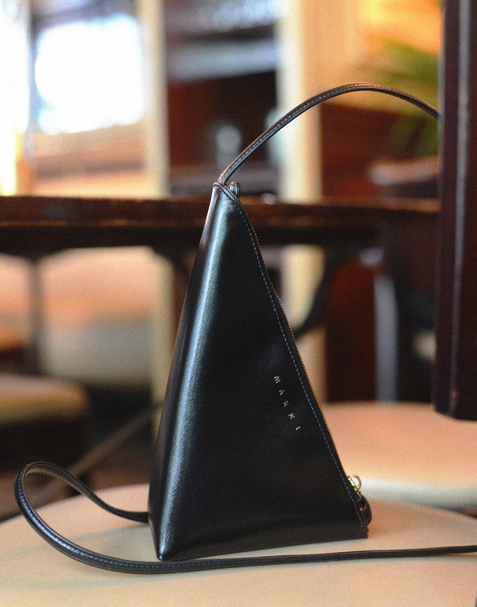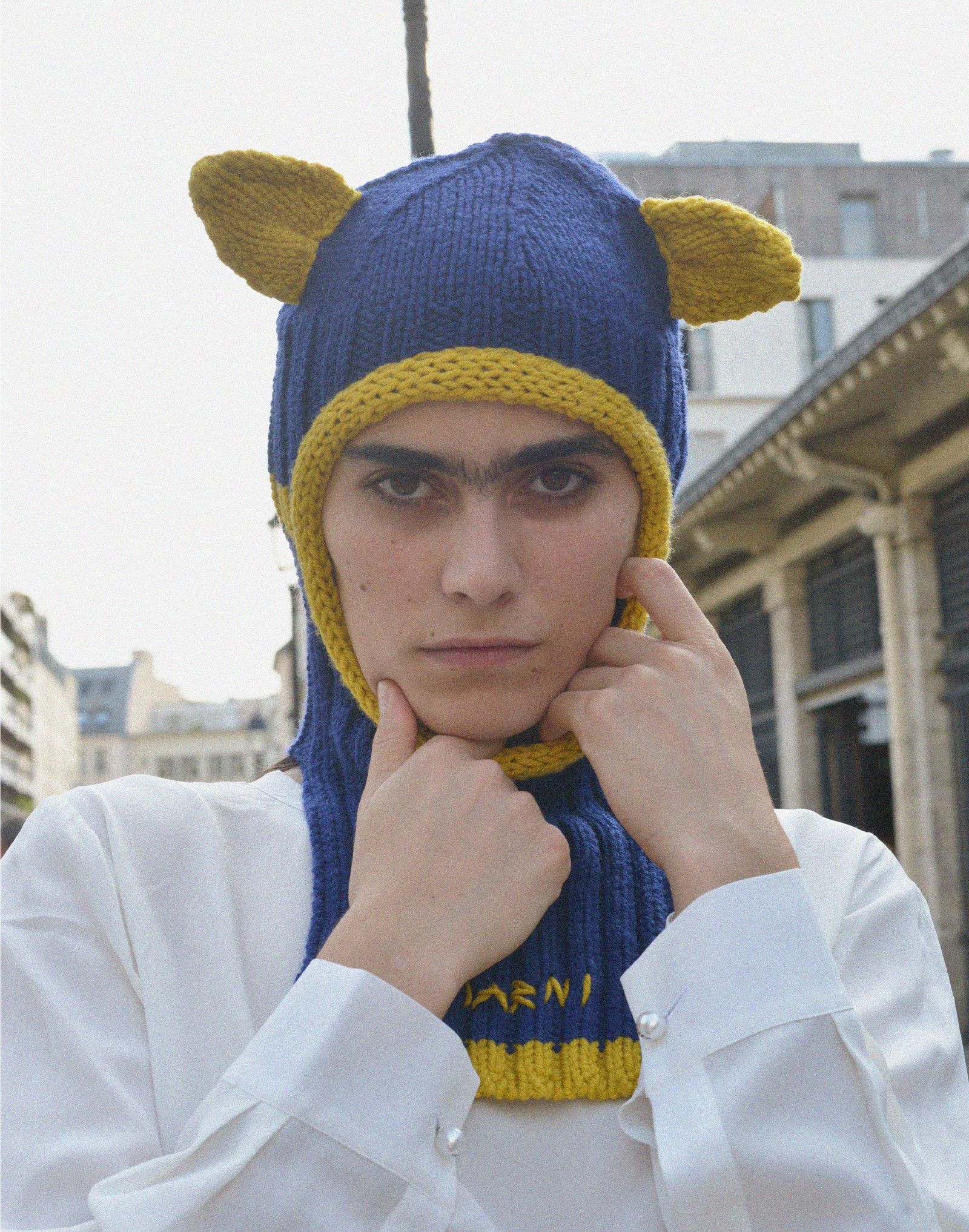 Nella sua Holiday Collection, Marni ha presentato accessori che aggiungono un tocco eccentrico alle festività invernali - non è un caso se questa campagna è scattata durante la stagione calda. Tra i protagonisti, le borse Triangle Prisma, ispirata alla costruzione origami, con una struttura puffy e morbida al tatto. La collezione di borse per le festività include eleganti modelli in pelle liscia, caratterizzati da linee sinuose e dettagli in ottone dall'ispirazione rétro, insieme a un nuovo logo MARNI scritto in corsivo. I bijoux della collezione aggiungono un tocco di luce al guardaroba invernale con collane e bracciali tempestati di strass e orecchini a cerchio intrecciati e poi ancora guanti, balaclava con orecchie e sciarpe a forma di aragosta lavorate a maglia. La collezione si completa infine con spille a tema college, portachiavi in feltro rosso e giallo con dettaglio aragosta, mules a pelo lungo e Fussbett Sabot in pelle ricoperti interamente di strass, aggiungendo un tocco di glamour e giocosa eleganza alle fredde giornate di festa.
