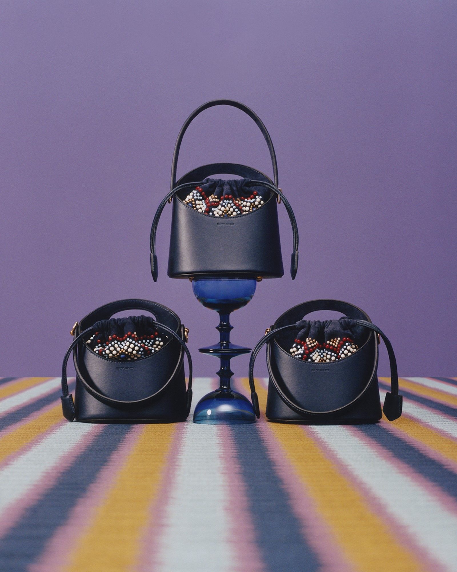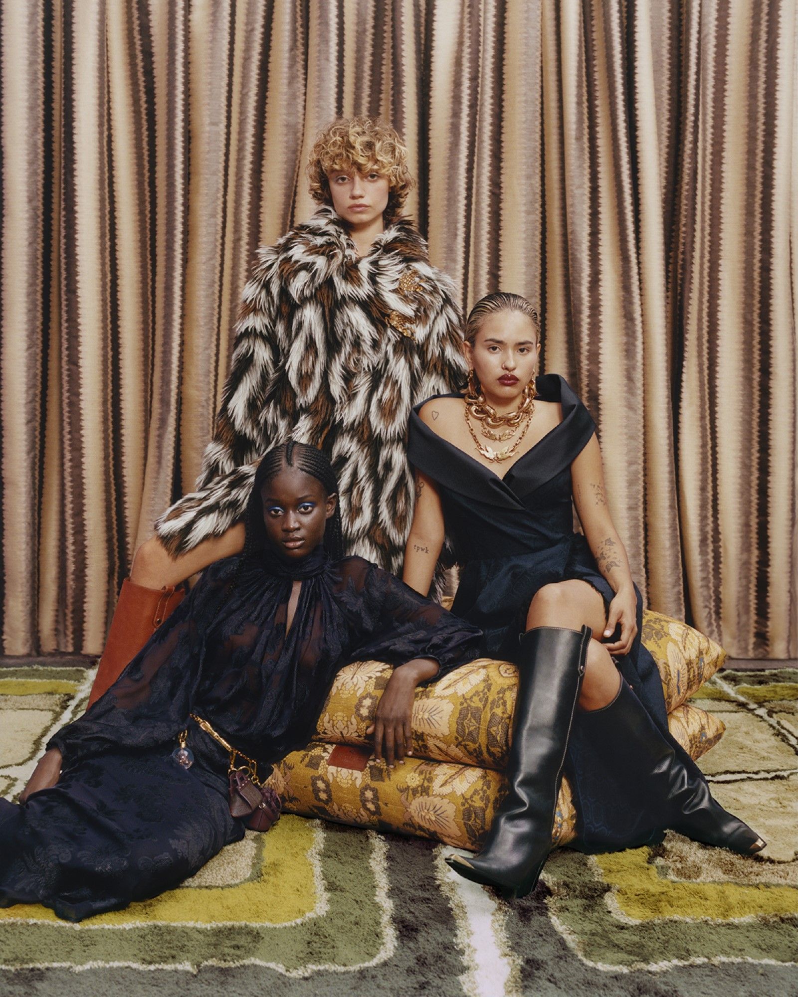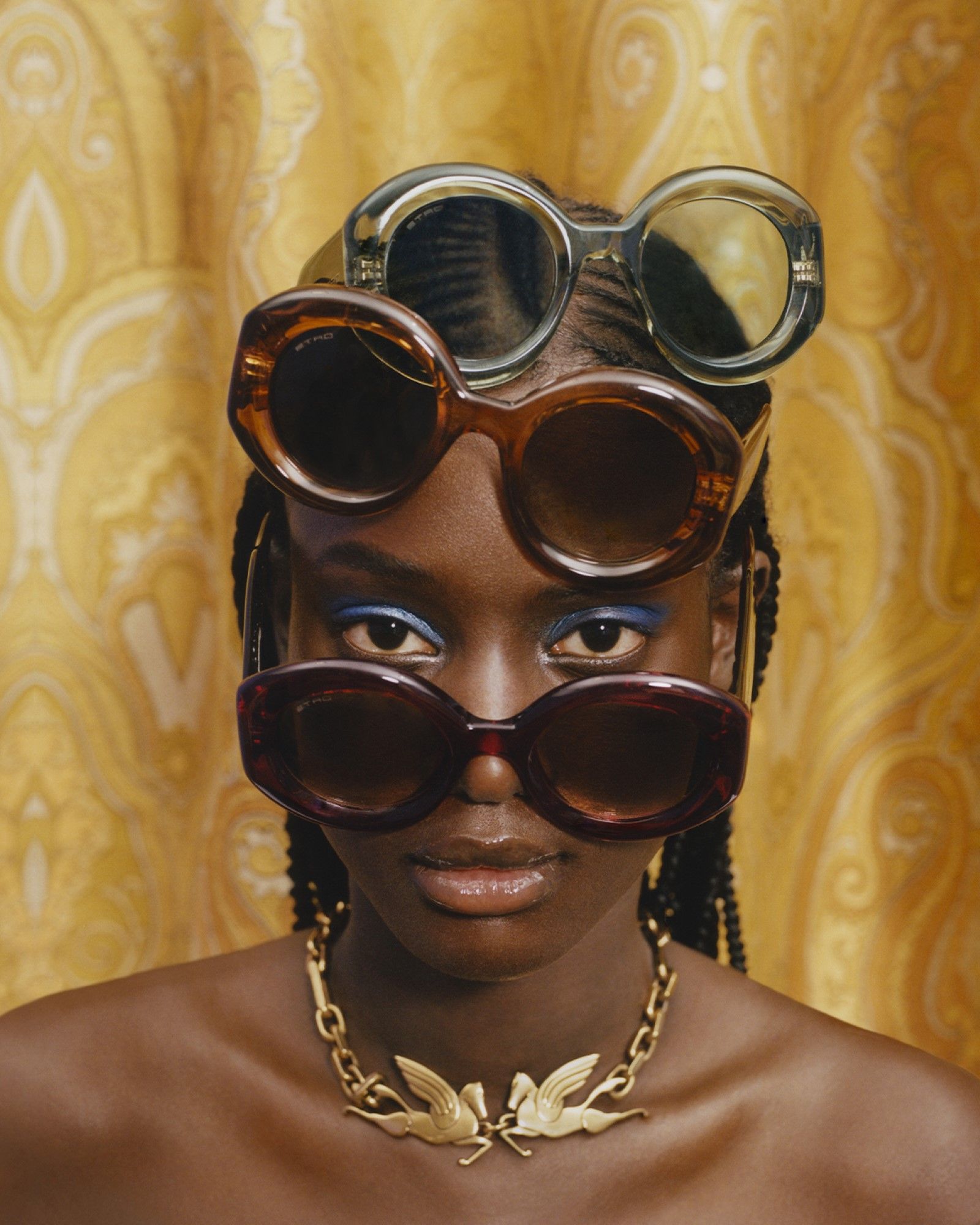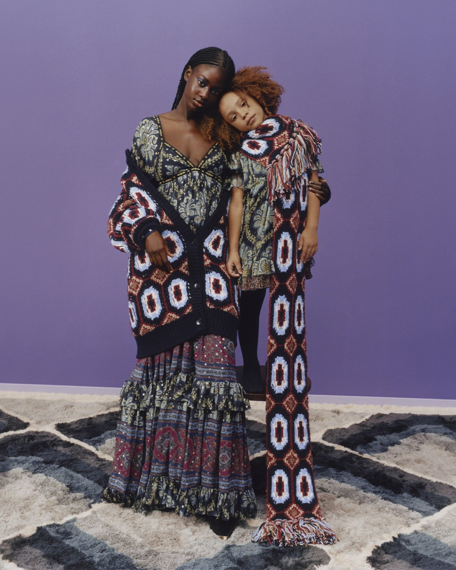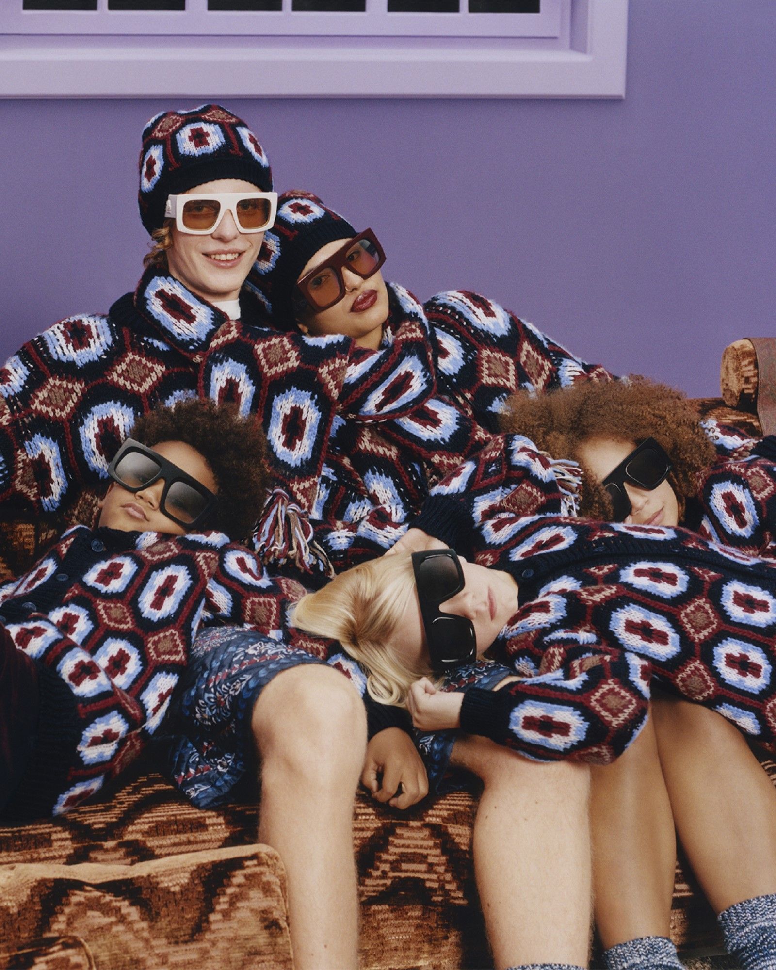 La collezione "Gifts of Joy" di Etro è stata presentata attraverso una campagna dai forti vibes anni '70, che mescola pattern estrosi e un'estetica massimalista che richiama l’estetica colorata e cosmopolita del brand. Gli accessori in pelle sono il fulcro della collezione, decorati dal tradizionale paisley e dal logo con Pegaso. Ci sono le nuove borse Saturno ed Essential Folder decorate da borchie multicolore. La capsule ready-to-wear gioca con l'eleganza del nuovo tuxedo, le sete eteree, i motivi tartan e i volumi delle maglie indossate sugli abiti da sera – il tutto ornato da disegni di medaglioni e jacquard con scomposizioni geometriche. Inoltre, questa campagna ha segnatp il debutto della nuova collezione di eyewear del brand, già vista in sfilata, e della collezione per bambini. Essendo Etro un brand che si occupa anche della casa, nel range sono inclusi anche diffusori di fragranze per la casa Oud e Vetiver e il panettone Etro creato in collaborazione con Aimo e Nadia del ristorante due stelle Michelin Il Luogo Aimo e Nadia, presentato in una speciale scatola in metallo decorata con il disegno Etro nei toni del blu e oro. Insomma, un pacchetto completo.