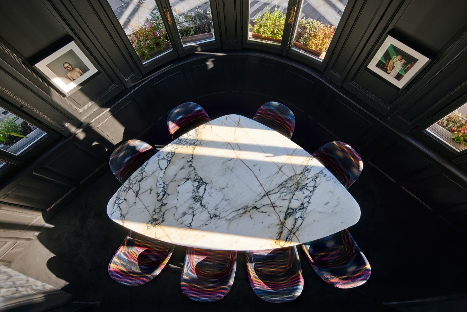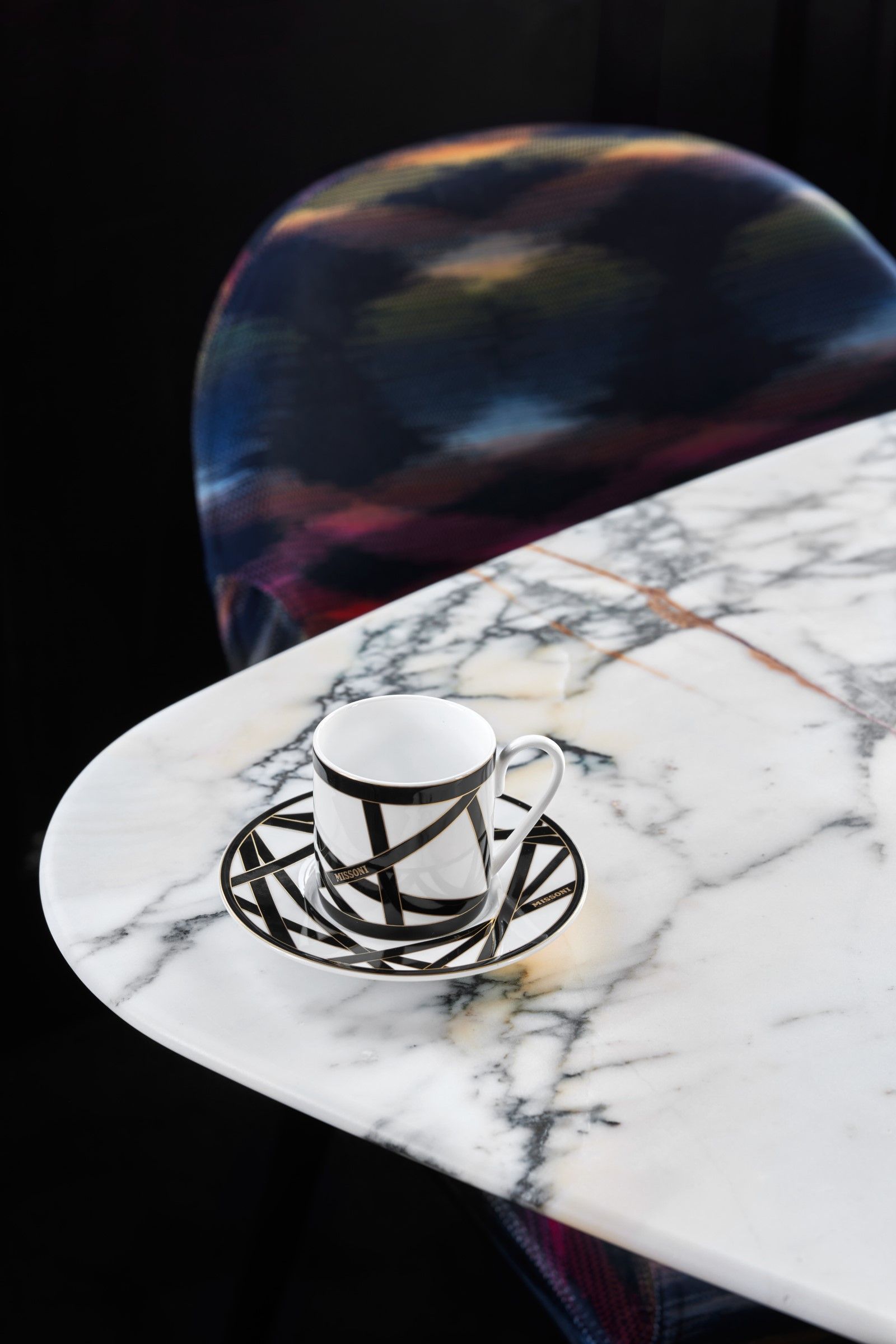 Il più originale è stato Missoni, o meglio Missoni Home che, attraverso la direzione creativa di Alberto Caliri, ha personalizzato gli spazi dell'hub creativo SuonareStella, l'appartamento milanese di Paolo Stella, presentando un set da caffè unico nel suo genere. La casa di Paolo Stella è trasformata in un'esposizione vivente della collezione Missoni home, con sedute, tavolini e tessili che creano un ambiente reale e tangibile. L'hub creativo diventa così uno strumento per comunicare un messaggio, trasformando l'arredamento in un'esperienza conviviale. L'incontro tra Missoni, Paolo Stella e la sua rubrica quotidiana "Il caffè del buongiorno" si materializza attraverso brevi momenti di relax e riflessione prima dell'inizio della giornata. La selezione di tableware per il rituale mattutino include una tazzina da caffè e un piattino realizzati dalla Compagnia Italiana del Cristallo, decorati con il nuovo motivo Nastri in elegante nero con bordature dorate. La limited edition della tazzina con piattino in Fine Bone China presenta il pattern Nastri nero, bordo dorato e una dedica speciale di Paolo Stella al centro del piattino: "A chi ascolta con il cuore", firmata da una stella, rendendo il set ancora più straordinario.