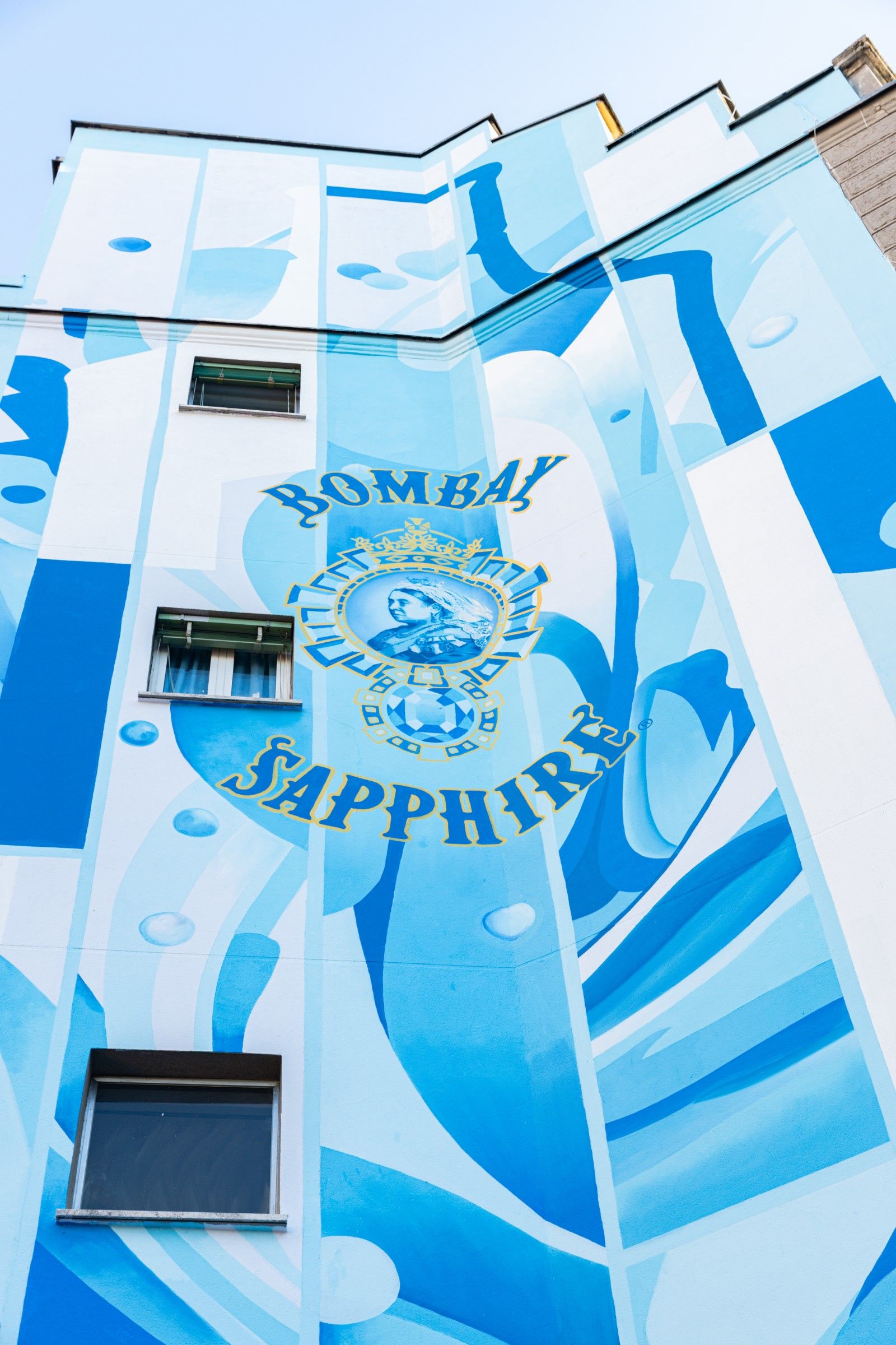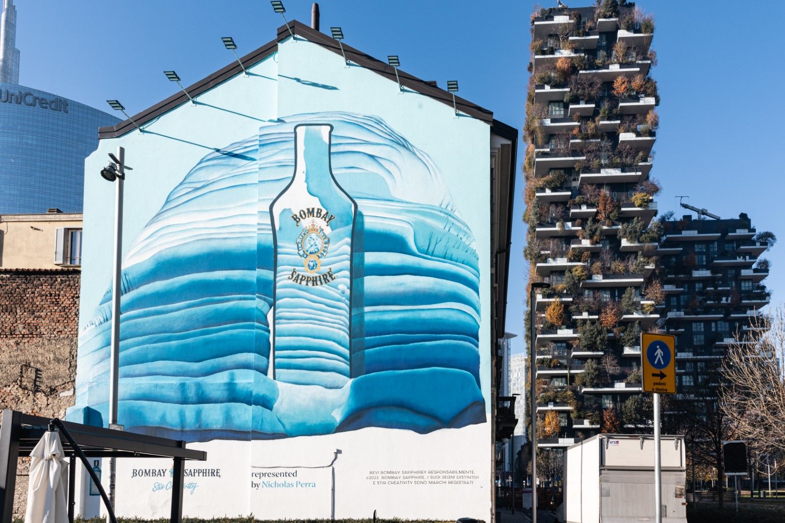 C’è poi la zona di Parco Sempione, con il murales di Via Canonica 37 firmato Giulio Rosk che utilizza l'iperrealismo per rendere omaggio ai 10 botanicals che conferiscono al gin il suo aroma distintivo. Nell’opera, i singoli elementi dei botanicals sembrano quasi prendere vita per raccontare l’intrinseca bontà del cocktail-simbolo del Regno Unito (lo stesso Winston Churchill ne era un grande fan). Infine, Nicholas Perra, con il murales in Via de Castilla, nel cuore pulsante di Isola, ha celebrato le sfumature di blu zaffiro della bottiglia di Bombay Sapphire con immagini astratte che vogliono celebrare l’iconicità del colore del Bombay Sapphire facendola interagire con lo stesso tessuto urbano del quartiere.