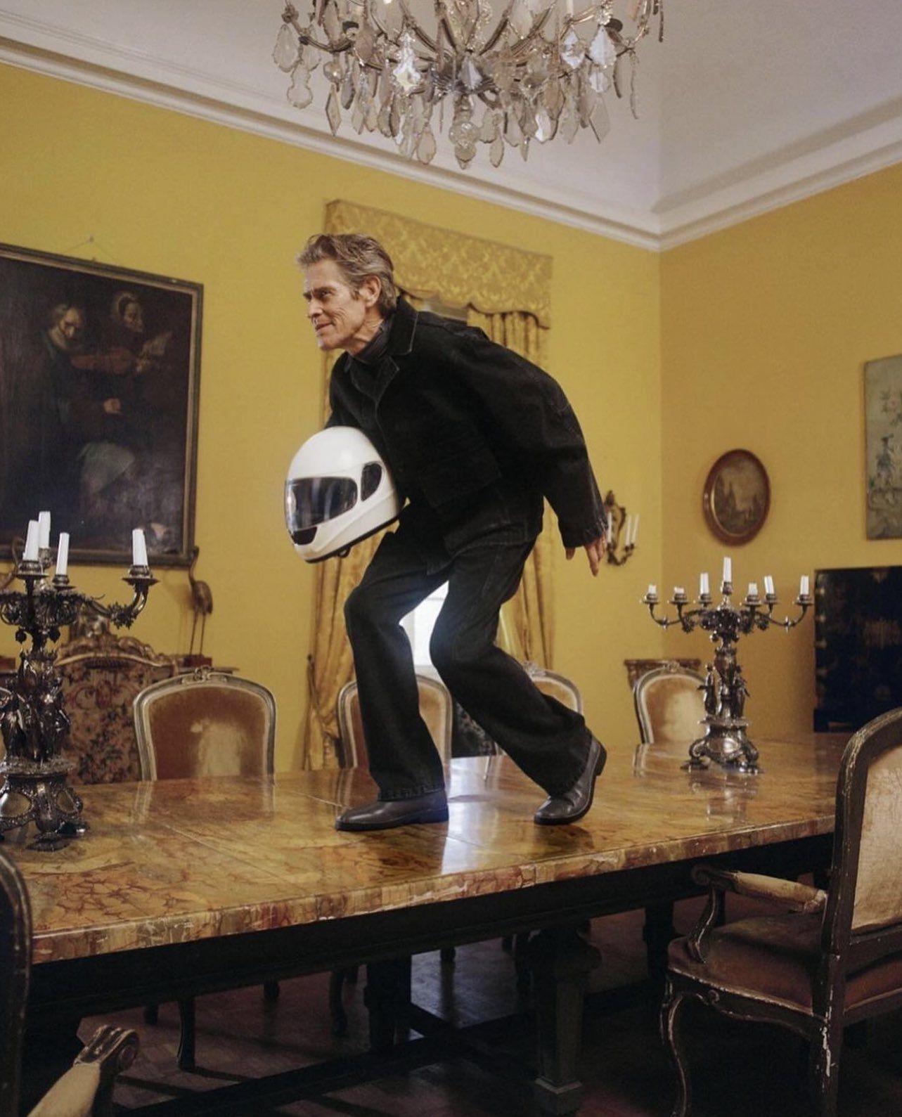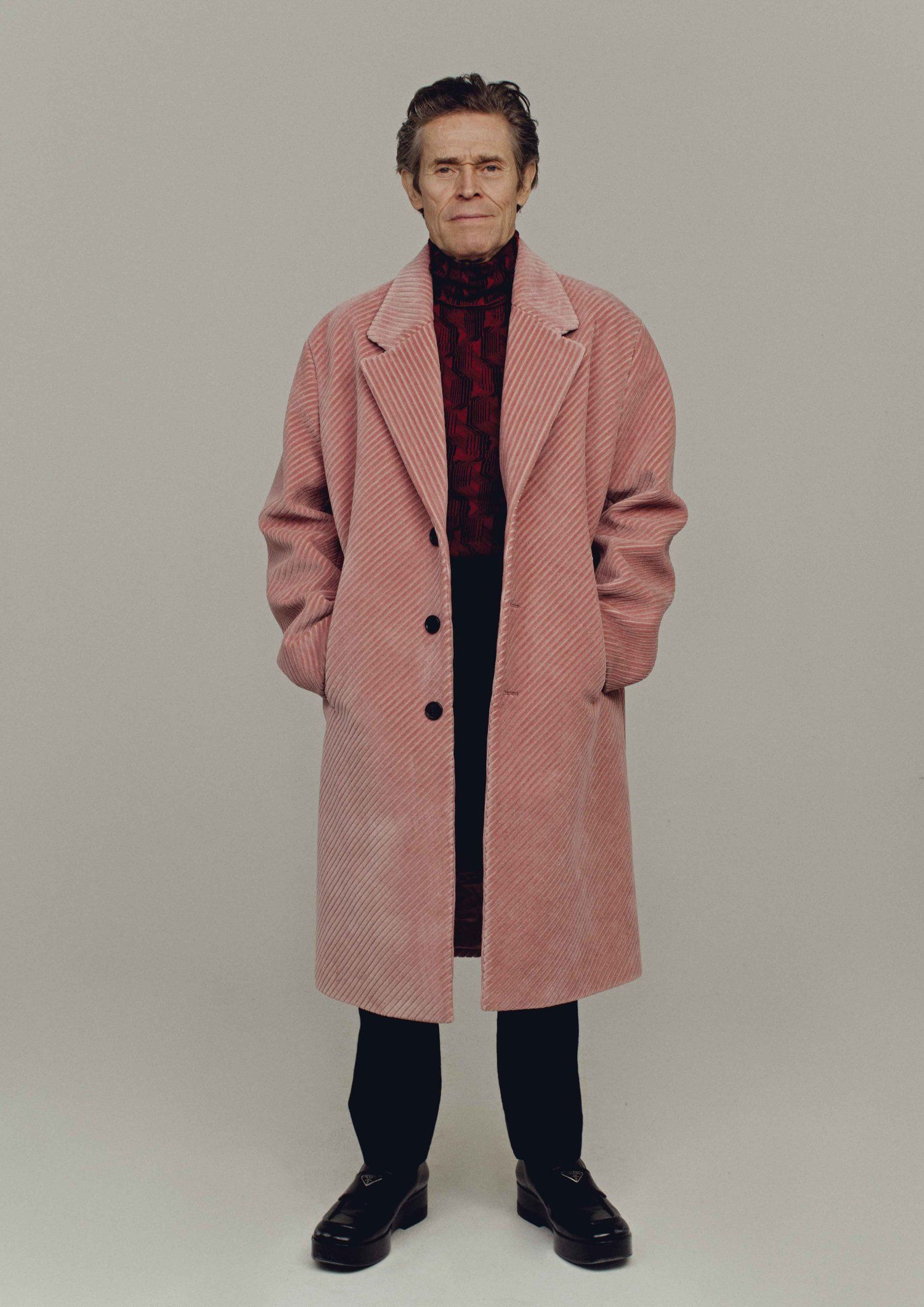 Il rapporto tra Willem Dafoe e la moda nutre radici profonde, oltre le solite collaborazioni con stylist e curatori d’immagine in occasione dei vari award show. L’attore ha sottolineato più volte il suo interesse per il mondo della moda, avendo raccontato che porsi di fronte ad un obiettivo per lo shooting di una rivista comporta calarsi in una parte, perciò gli abiti diventano uno strumento d’appoggio tanto quanto i costumi di scena del cinema. «Si gioca, a volte si prendono abiti che non si indosserebbero normalmente nella propria vita, li si indossa e si cerca di farli vivere», ha dichiarato in un’intervista con A.V. Club. Effettivamente, i progetti più noti dell’attore condividono un senso estetico sensazionale, marcato da uno studio del colore e del costume senza pari, da Povere Creature! a Grand Budapest Hotel, passando per Van Gogh, anche il verde smeraldo del Green Goblin di Dafoe ha un certo fascino. Complici le collaborazioni con registi dall’immaginario fantastico, come Wes Anderson e David Lynch, non si può certo dire che la filmografia di Dafoe abbia uno stile nella norma.