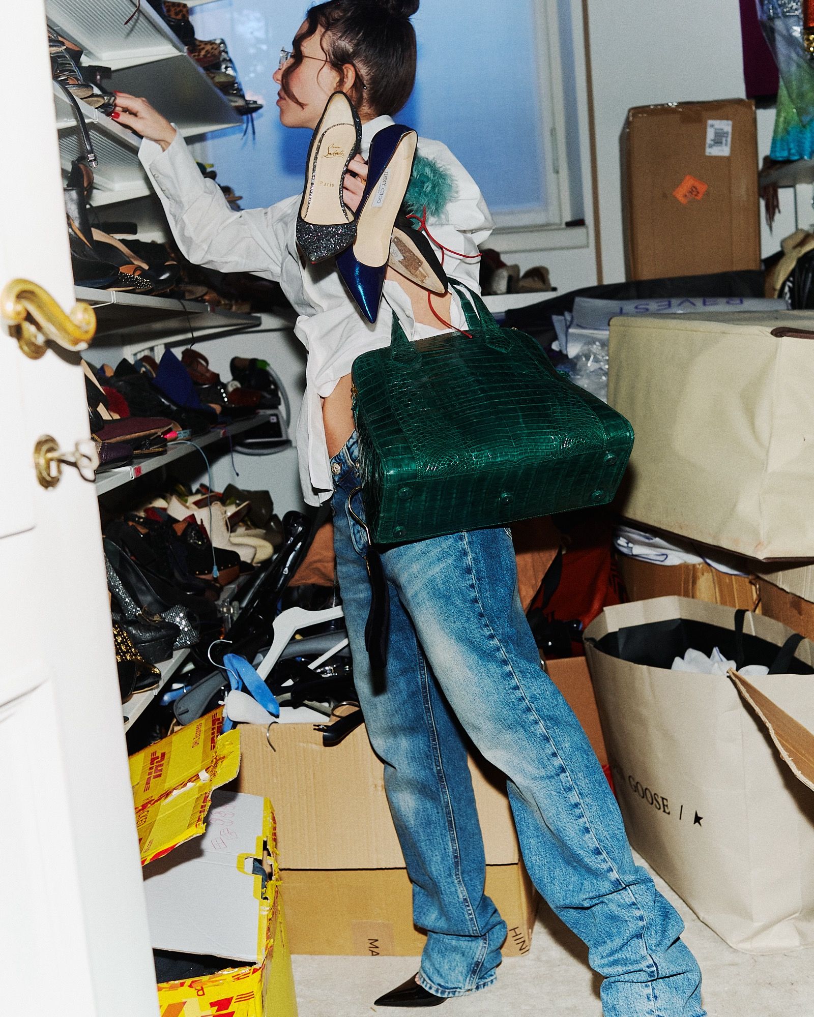 Prima di iniziare a lavorare come celebrity stylist, Cantoni ha sviluppato il suo talento nell’editoria di moda partendo prima dallo studio dei brand emergenti, poi dall’utilizzo dei loro capi. Si è resa conto di essere una stylist sul set di un videoclip musicale, quando ha realizzato l’impatto dei suoi look sulla riuscita del progetto. «Fin dall’inizio ho avuto un fortissimo imprinting con la ricerca in tutte le sue forme,» aggiunge. «Sono diventata un’appassionata di designer emergenti perché volevo fare cose molto eccentriche». Insoddisfatta della moda italiana durante i primi anni della sua carriera, adesso Cantoni si dice contenta di essere rimasta a Milano. «Perché devo scappare da questa realtà? Piuttosto cambio il sistema io», aggiunge. Da grande promotrice dei contenuti digitali, il suo lavoro mischia intelligenza artificiale e creatività senza badare ai limiti imposti dalla industry italiana, secondo la stylist un settore che ha paura di sperimentare con le nuove tecnologie. «Col 3D si può creare tutto, è come se fosse un sottobosco che non è ancora arrivato a tutti», racconta, certa però che sia la collaborazione la chiave per il successo, non l’esasperazione di un solo medium, o di un solo punto di vista. Proprio come in amore, «quando una squadra funziona, in un mondo come il nostro fa sempre la differenza».