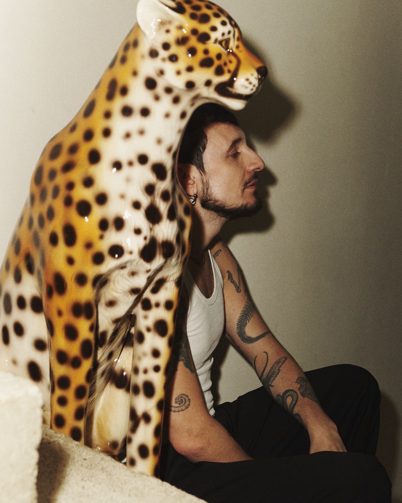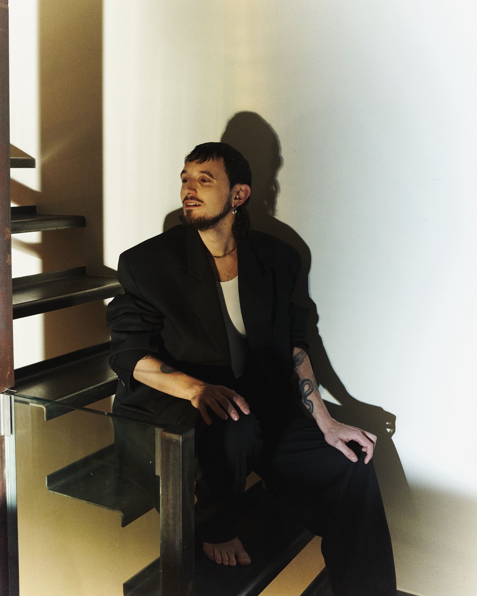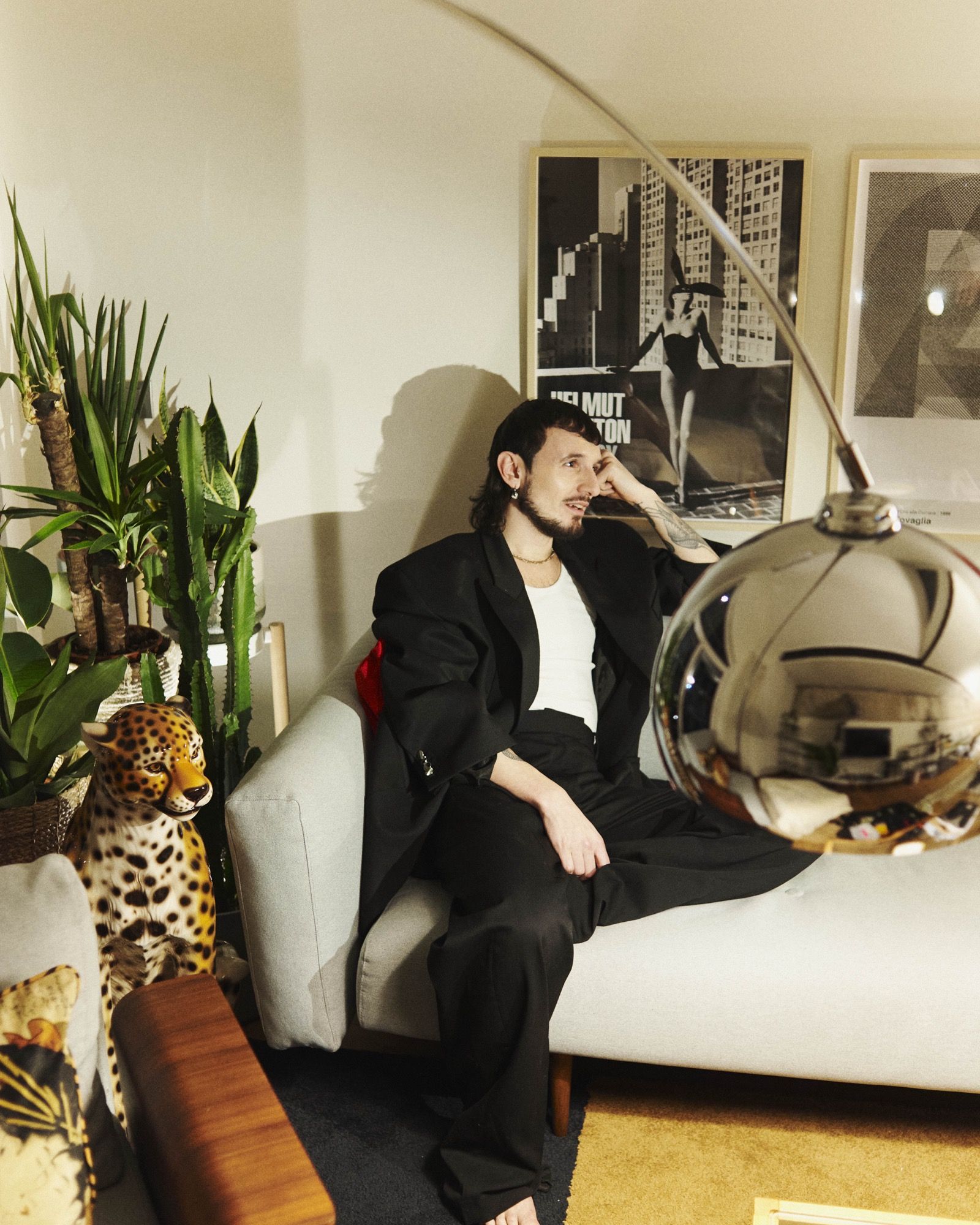 Per Pablo Patané, i retroscena del teatro sono familiari come i muri di casa. La carriera dello stylist l’ha portato da studente di scenografia e costume a celebrity stylist, facendogli vestire star del calibro di Monica Bellucci, Sabrina Impacciatore, Skin, Rossy De Palma e Nick Jonas. Questa settimana, la sfida non sarà portare le sue idee sul temibile palcoscenico dell’Ariston, ma far scoprire al pubblico sanremese un progetto artistico tutto nuovo. «La creazione dei look per La Sad a Sanremo è stata un viaggio attraverso la storia del punk, della moda e del cinema, tratto dalla storia personale dei ragazzi e dal testo della loro canzone», racconta lo stylist, curatore d’immagine per il trio in gara con il singolo “Autodistruttivo”. I look, che nel vocabolario di Patané hanno il nome di costume, «saranno un elemento chiave della loro performance». Grazie ad una visione cinematografica della moda, la cifra stilistica di Patané si distingue per un flair estremamente teatrale. «La moda fine a se stessa», ci dice «non mi è mai piaciuta». Patané arriva a Sanremo dopo aver curato progetti sia negli Stati Uniti che in Italia, dalla direzione artistica delle testate giornalistiche più conosciute allo styling delle star candidate agli Emmy, con l’aiuto dei colleghi del gruppo Tiny Idols. «Non ho mai visto il lavoro come una competizione, piuttosto come un’opportunità di creare connessioni significative», racconta lo stylist. «Provenendo dal mondo della moda ho esteso il mio raggio d’azione grazie alle collaborazioni. Tiny Idols mi ha presentato al gruppo, ritenendomi la persona più opportuna per seguirli su questo palco».