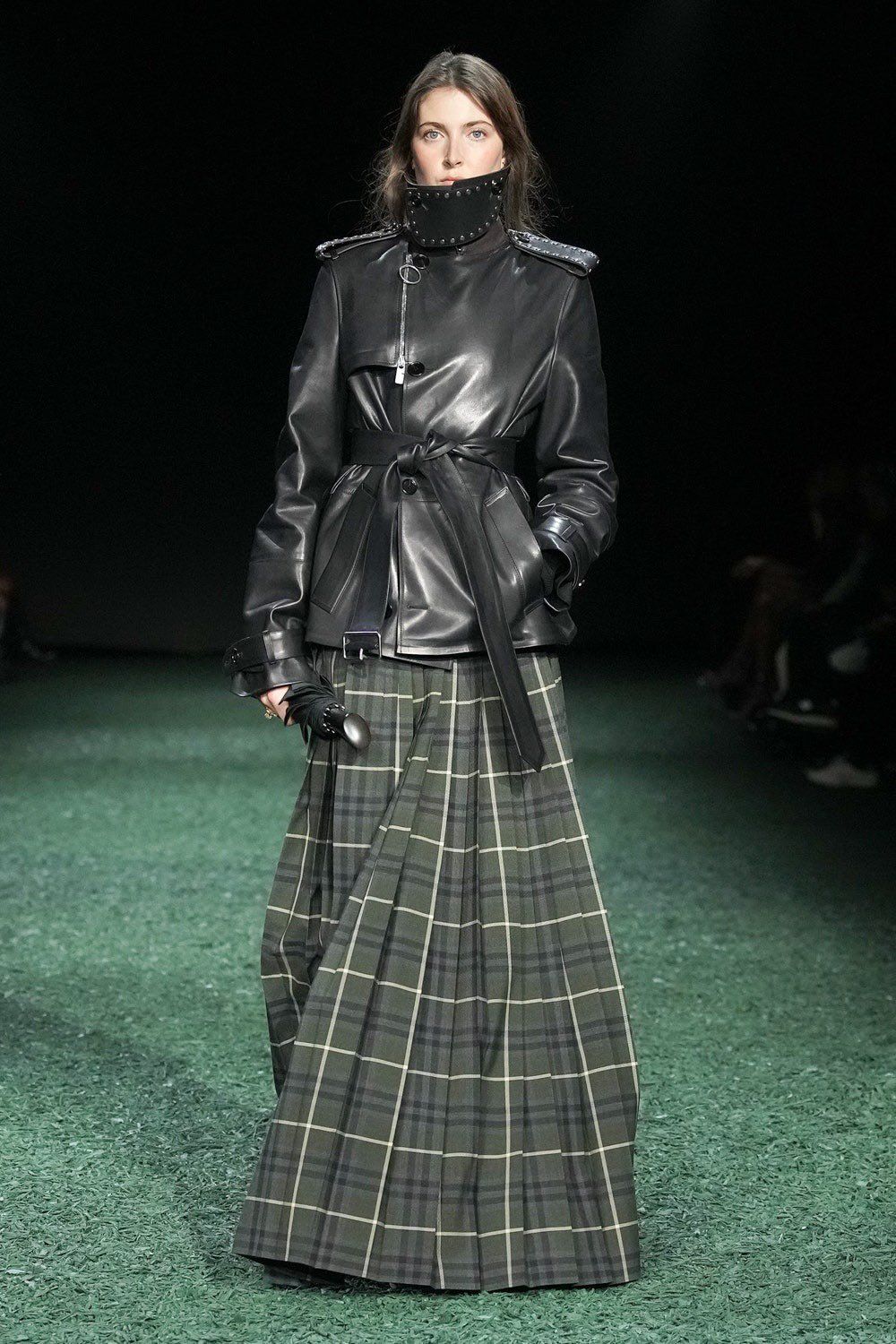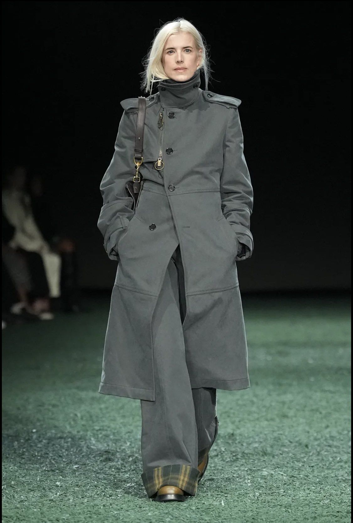 Il front row di Burberry, insieme a quello di JW Anderson, è tra i più gettonati dalle star durante la London Fashion Week, ma non è l’unico motivo per cui gli addetti ai lavori della fashion industry tengono gli occhi ben puntati sul brand. Finalmente uno show in cui la direzione artistica di Daniel Lee sembra aver preso una rotta precisa, la maison iper-Brit ha fatto sfilate sulle note di un mash-up di Amy Winehouse trench modernizzati da stampe, tagli geometrici, colli alti e spalle larghe, più “stretti” e ordinati rispetto alle collezioni precedenti. Tramite l’utilizzo di asimmetrie, zip e scolli profondi, la maglieria e i pantaloni cargo sono stati investiti di sensualità, mentre gli stivali e le borse si sono allargati a dismisura. Il verde muschio è andato a formare cappotti e giacche, hanno fatto il loro debutto afghan coat e stampe anni ’70 degne della Londra dei primi Rolling Stones, intanto che il nero e il verde foresta hanno infuso i look di un sentito più contemporaneo.