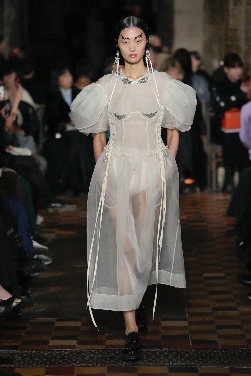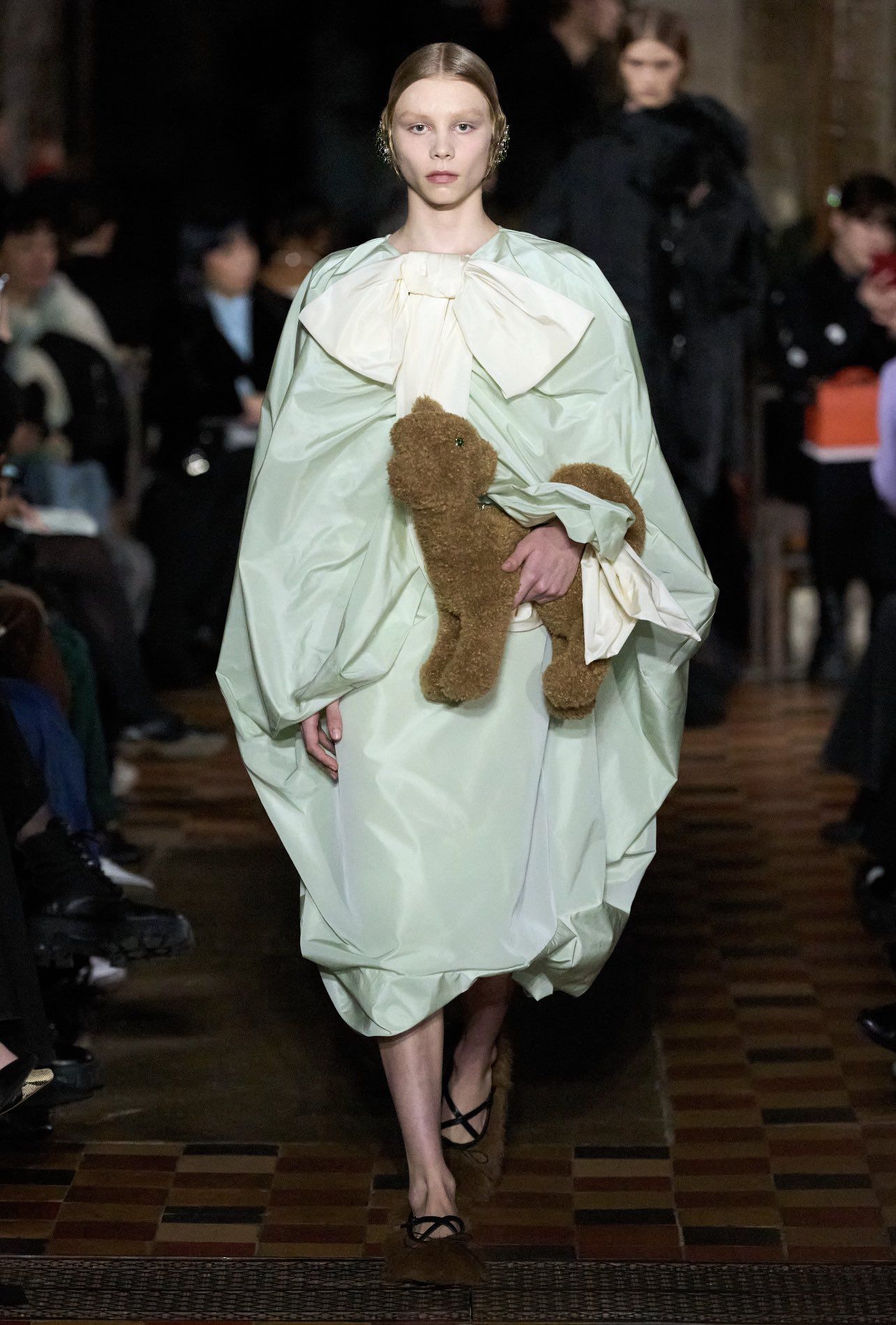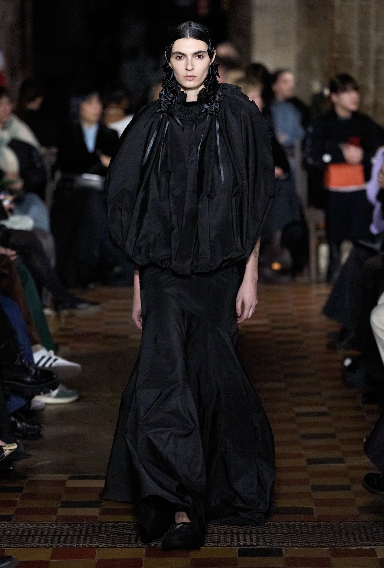 Dopo aver presenziato come guest designer per un titano come Jean Paul Gaultier alla Paris Couture Week, è difficile sbagliare. Sarà che lavorare per l’enfant terrible le avrà lasciato nuovi insegnamenti, sarà che le sue ultime collezioni sono sempre costellate di elementi affascinanti, ma anche la FW24 di Simone Rocha ha presentato una collezione a prova d’urto. Questa volta con un leggero sentito dark, lo show ha sfilato nella chiesa anglicana di San Bartolomeo a Londra e ha esplorato i codici stilistici dell’abito da lutto della Regina Vittoria. Uniti a trasparenze e comodità della nostra epoca, pellicce, strass di diamanti e rouche di taffetà nero hanno riportato alla luce mode pluri-centenarie. Abbiamo visto una nuova Simone Rocha, pur riconoscendo nei fiocchi, negli appliqué a fiore e nelle ballerine la stessa delicatezza che ha fatto innamorare la fashion industry. Come se non bastasse, alla nuova collezione la designer ha affiancato il lancio inedito della sua nuova collaborazione con Crocs, una Platform Clog sommersi da perle r diamanti.