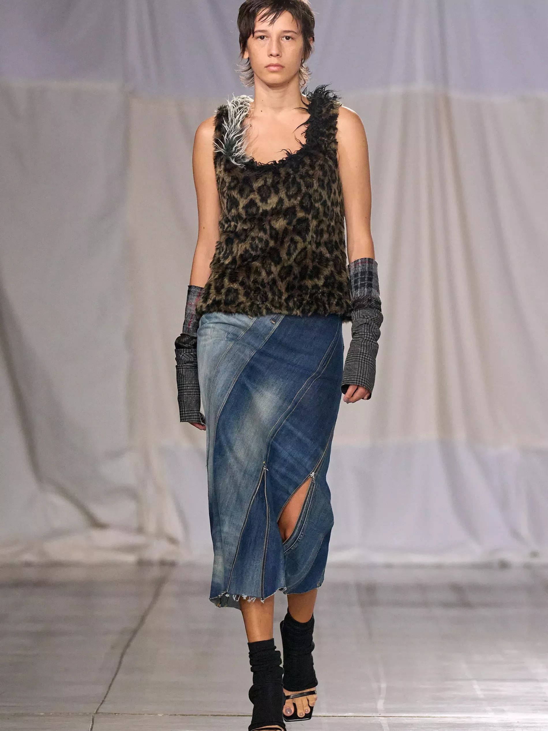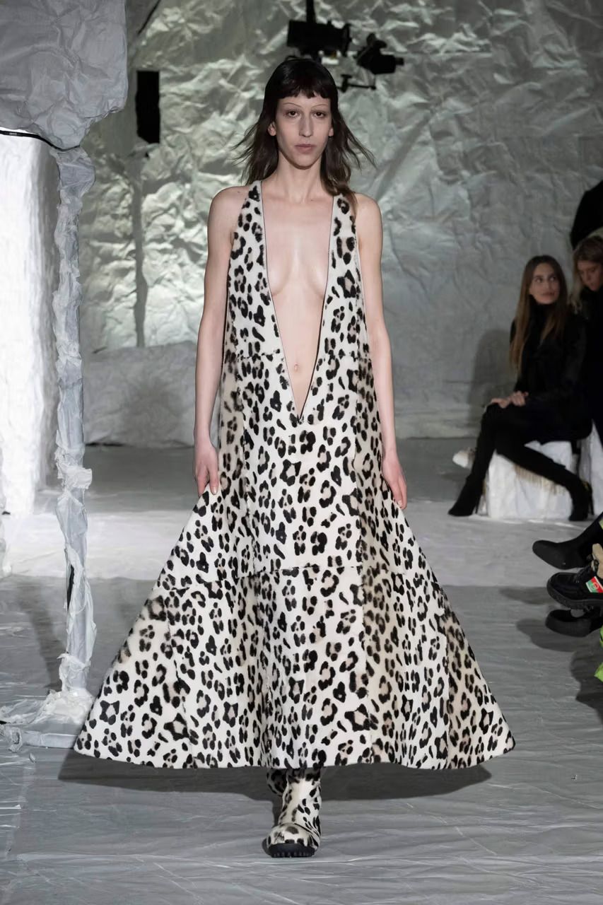 Tra chi ha preso il termine “reinterpretazione del trend” alla lettera spicca sicuramente Glenn Martens, che per Diesel ha brandellizzato la stampa animalier per aggiungerla su cappotti e camicie in seta a fiori. Dolce&Gabbana, che per la FW24 “Tuxedo” ha esplorato gli archetipi del guardaroba maschile e femminile rivestendoli di sensualità, ha portato all’Interpol una femme fatale in una mise leopardata dalla testa ai piedi e il volto coperto da una maglia a rete, mentre Francesco Risso, di Marni, ha presentato look neolitici all’interno di una grotta bianca. Finora, il fashion month corrente si sta distinguendo per la forza instancabile con cui ruggisce di fronte alle difficoltà, chissà se anche Parigi avrà la stessa voglia di mostrare i canini.