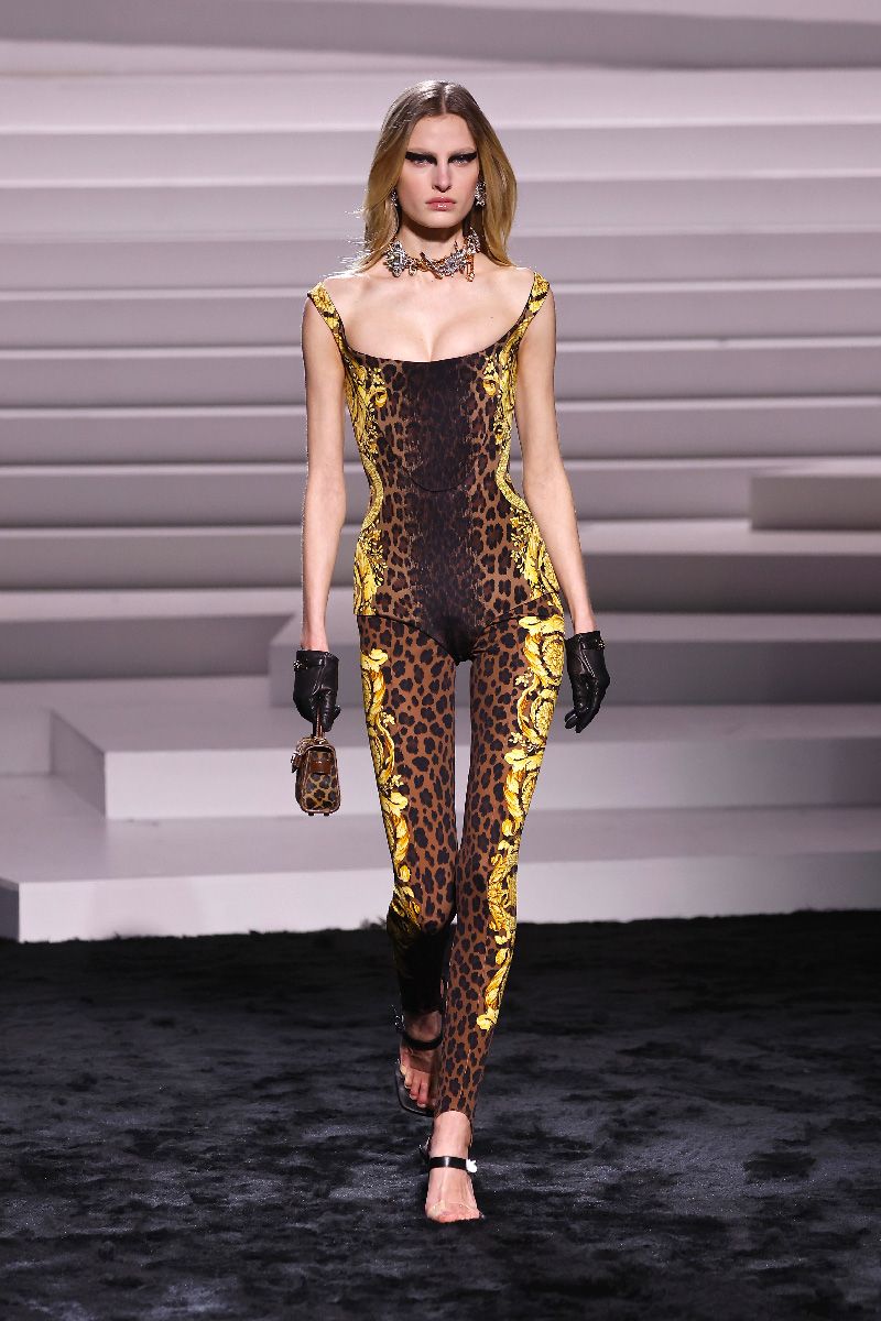 Non è dato sapere se sia stata l’ascesa dell’estetica mob wife ad influenzare la presenza della fantasia leopardata nelle nuove collezioni, anche se i dati Google dimostrano che le ricerche per animal print hanno raggiunto un picco di ricerche del +263% proprio a fine gennaio 2024, in concomitanza con il momento in cui le pellicce in stile The Sopranos hanno raggiunto la massima popolarità su TikTok. Da Alaïa, il direttore artistico Pieter Mulier ha optato per i classici, tra cappotti morbidi in maculato grigio e abiti body-con in leopardato arancione, mentre da Blumarine è apparsa tutta la nostalgia di un paio di collant stampate in pieno stile indie sleaze. Il nuovo designer a capo del brand, Walter Chiapponi, ha inoltre rivisitato la stampa in versione rosso fuoco come Versace, dove abbiamo trovato la fantasia mischiata alla celebre stampa Barocco.