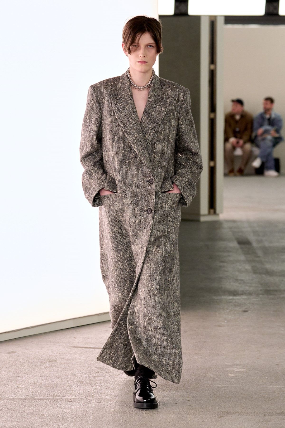 Il concetto di 'Confidential Club' è una testimonianza della capacità di Choi Jung In di fondere lo spettacolare con l'intimo, accogliendo sia i famosi che gli anonimi. La collezione FW24 di TIME ridefinisce il concetto di lusso con una femminilità misteriosa, strana e sensuale. La giustapposizione di vestiti aderenti e cappotti imponenti e oversize mescola l'eredità borghese con un'audacia sperimentale, trasformando ogni pezzo in un'affermazione di eleganza disruptiva.