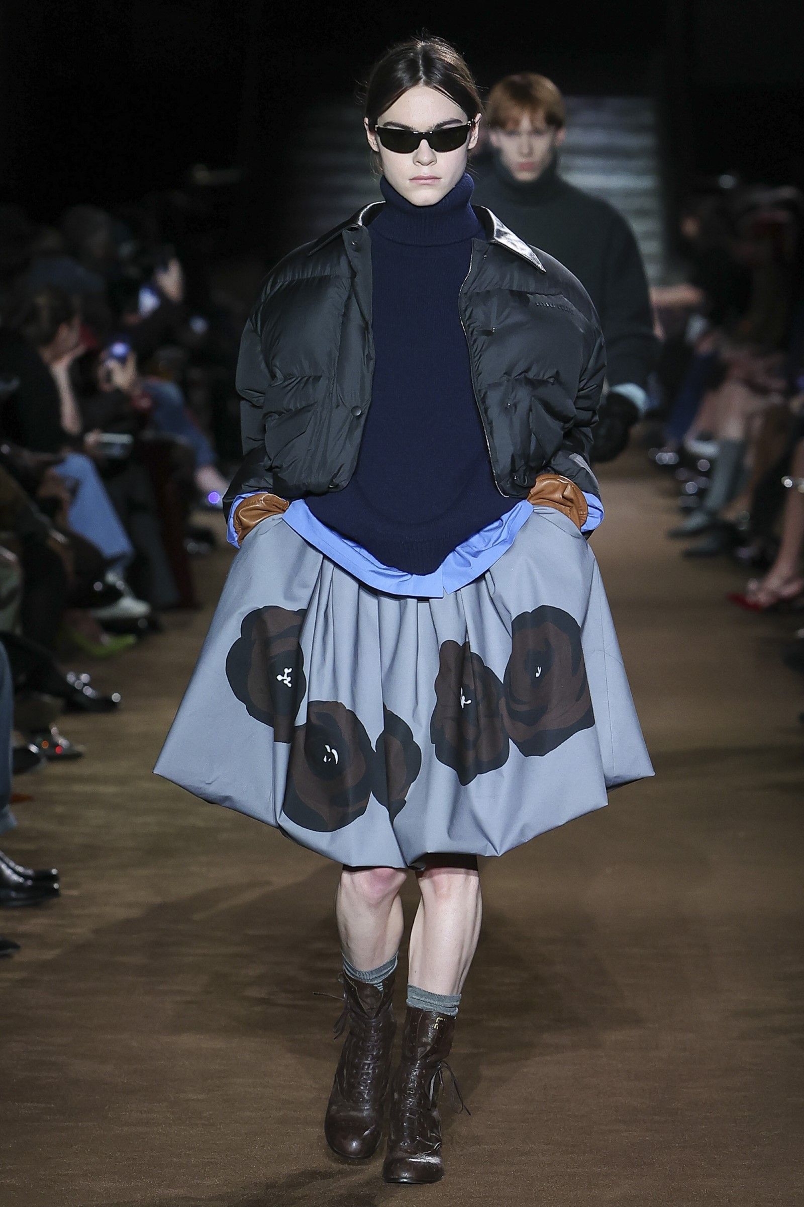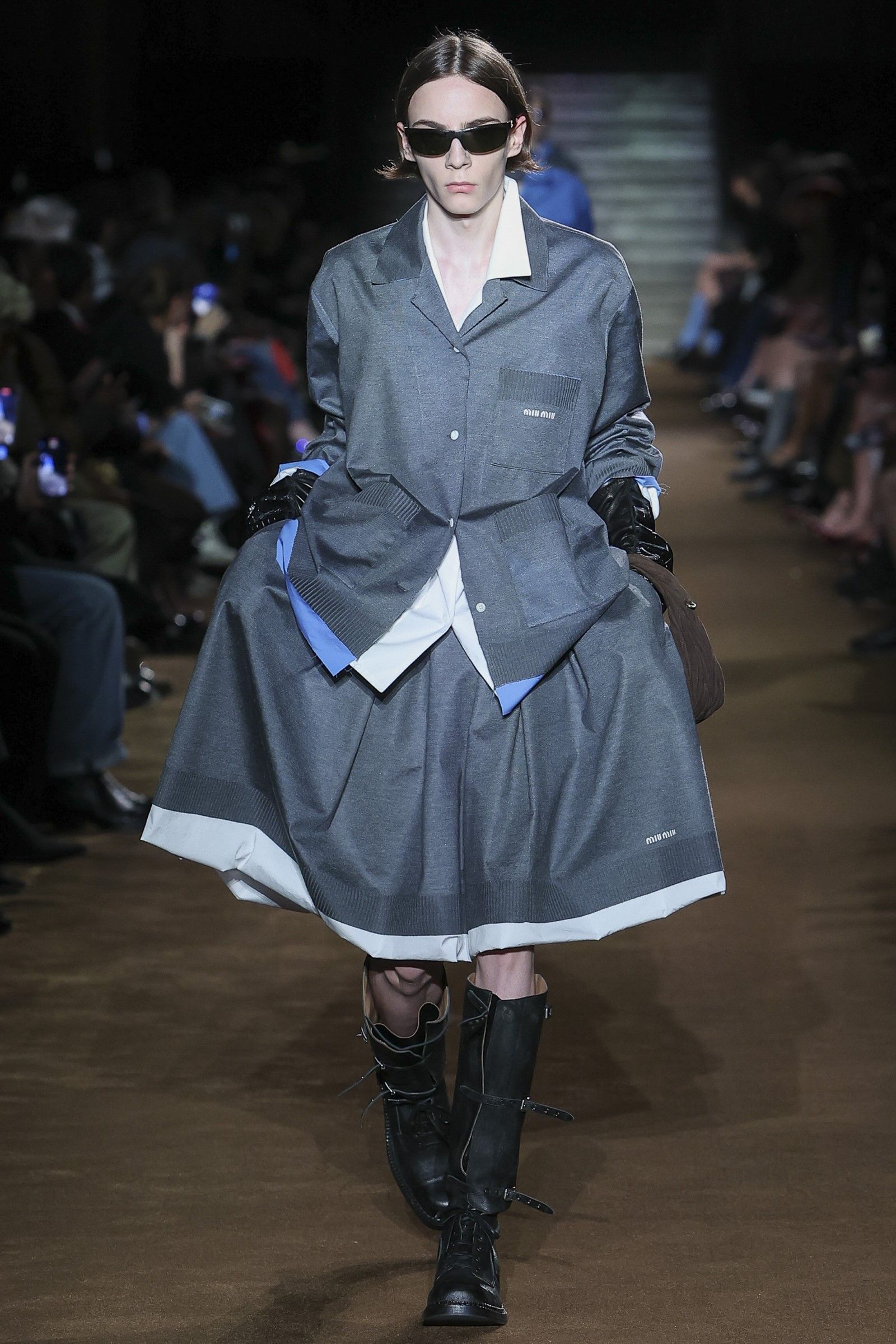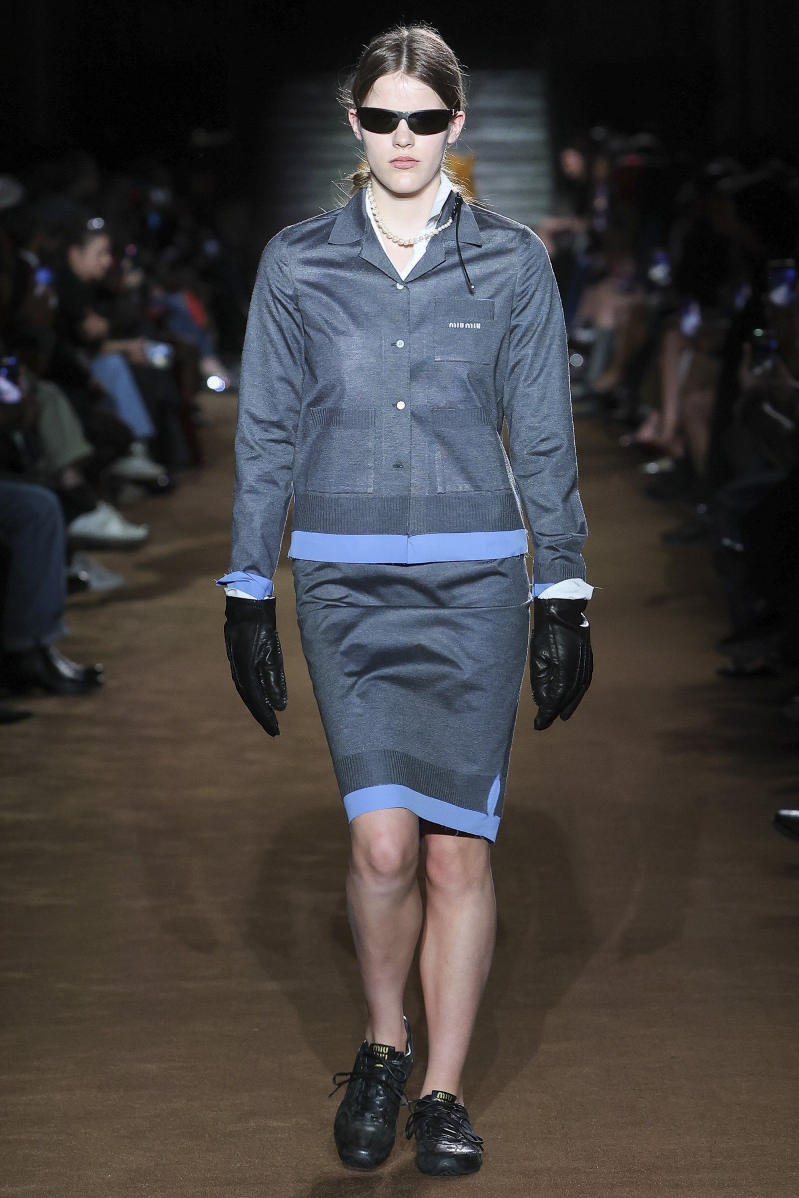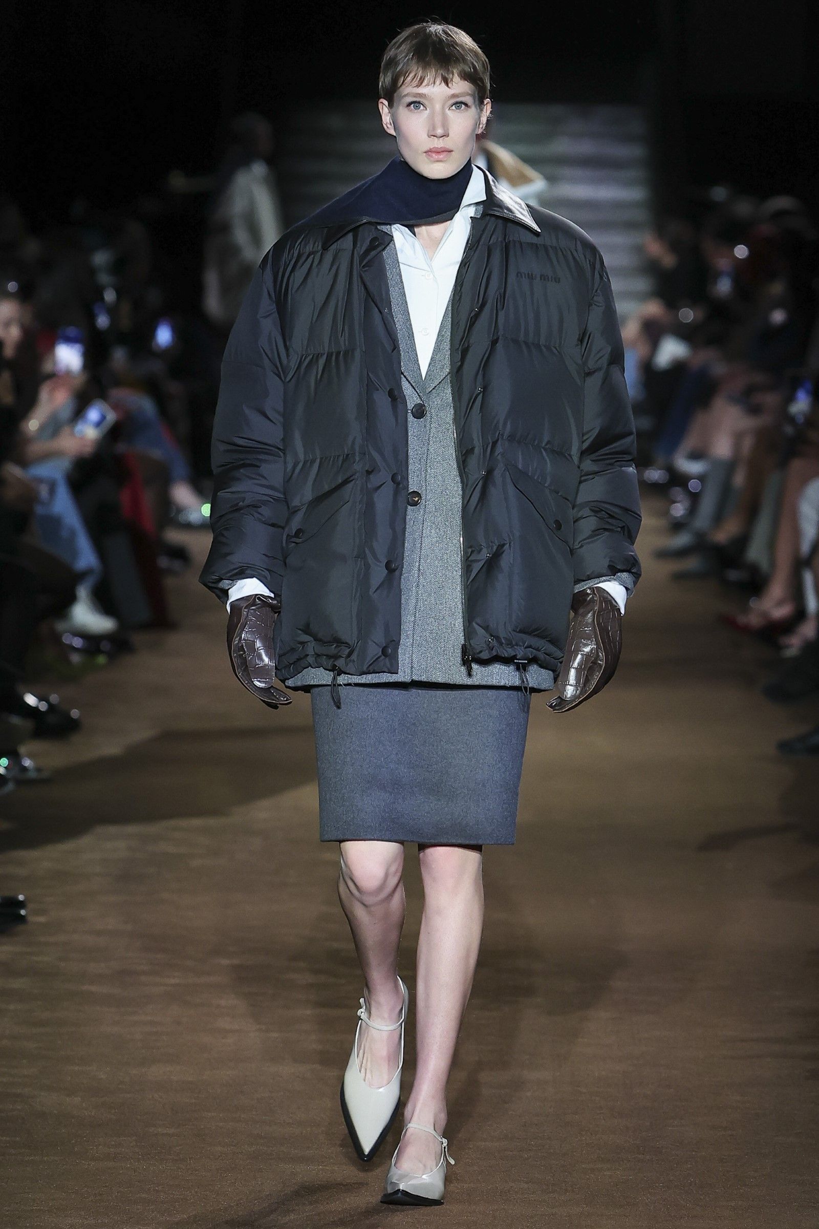 Miu Miu è lo show più atteso della Paris Fashion Week e il brand più hot dell’anno per un motivo: a partire dallo show SS22 durante il quale un’intera generazione ha visto Dio nella forma di un set croppato, il brand di Miuccia Prada è riuscito come nessun altro a raccontare il presente. E non raccontarlo nei suoi problemi, nei suoi dubbi o nei suoi conflitti, ma nei suoi gusti, nei suoi interessi, nel suo zeitgeist – il che è ironico considerato come lo show FW24 del brand appena svoltosi a Parigi paia rievocare gli anni ‘60 nei cappotti, nelle perle, negli abiti chemisier, negli scolli a barca, nelle gonne a palloncino che, in effetti, vennero concepite per la prima volta da Balenciaga nel ’58. L'idea è quella di creare un guardaroba "ideale" che ricostruisca la vita di una persona nelle sue varie fasi dagli abiti d'infanzia, che si richiamano al passato per costruzione e vestibilità ristretta, fino a quelli dell'età adulta che sembrano rifarsi ai decenni successivi. E se la passione della signora Prada per certi modelli d’antan è ben nota e ancora meglio documentata, non bisogna credere che questo show sia stato un’ode al vintage, al contrario. Contemporaneo e démodé si sono trovati gomito a gomito più di una volta in passerella: uno dei look miscela la gonna a un giacca di pile grigio indossata sotto un piumino tagliato come una aviator jacket; le giacche cortissime in alcuni casi lasciano cadere una blusa fino all’altezza delle cosce creando quell’effetto dei peplum top dei primi 2000, riecheggiato in un set di denim molto aderenti e a vita bassa che è un richiamo alquanto garbato all’epoca Indie Sleaze.