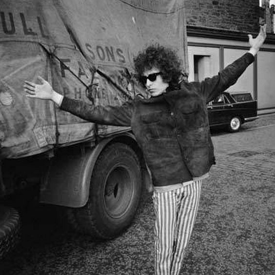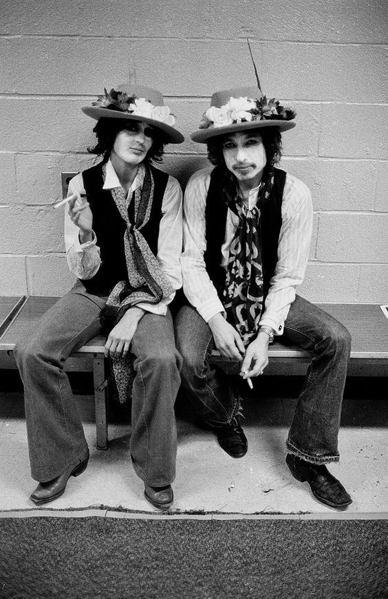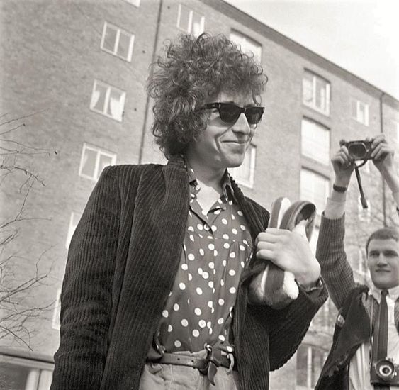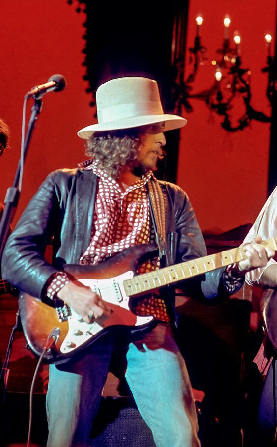 Quando Bob Dylan diventa una rock star il suo stile si trasforma completamente. L’uscita di Bringing it All Back Home, nel 1965, rappresenta il primo progetto realizzato da Dylan con strumenti elettrici, nonché uno degli album più innovativi del ventesimo secolo. Al Newport Folk Festival, Dylan impugna per la prima volta una chitarra elettrica facendo imbestialire il pubblico che lo fischia tanto da obbligarlo ad abbandonare il palco. Ha la fisarmonica appoggiata sulle spalle ma indossa una giacca di pelle dal fit aderente, la prima di tante che avrebbero ispirato, ben più tardi, la direzione artistica del direttore creativo di Saint Laurent e Celine, Hedi Slimane. Il Bob Dylan degli anni elettrici porta skinny jeans, chelsea boots e un paio di Ray-Ban Wayfarer scuri di cui non può fare a meno. Le camicie diventano più estrose, a pois e zebrate, infilate nei pantaloni ben stretti in vita; porta l’eyeliner e un paio di bandane legate alle tempie, ma anche i resti delle sue radici folk in dettagli appartenenti all’estetica western. Aggiunge un leggero tacco agli stivali e più colori agli outfit, con l’uso occasionale di un cappotto afgano rosso e blu. Come le sue chitarre, Dylan passa da palette accoglienti marroni e beige all’asprezza del nero, catturato perfettamente nel film Io Non Sono Qui (2007) in cui l'artista viene interpretato da sei attori diversi, tra cui la splendida Cate Blanchett.