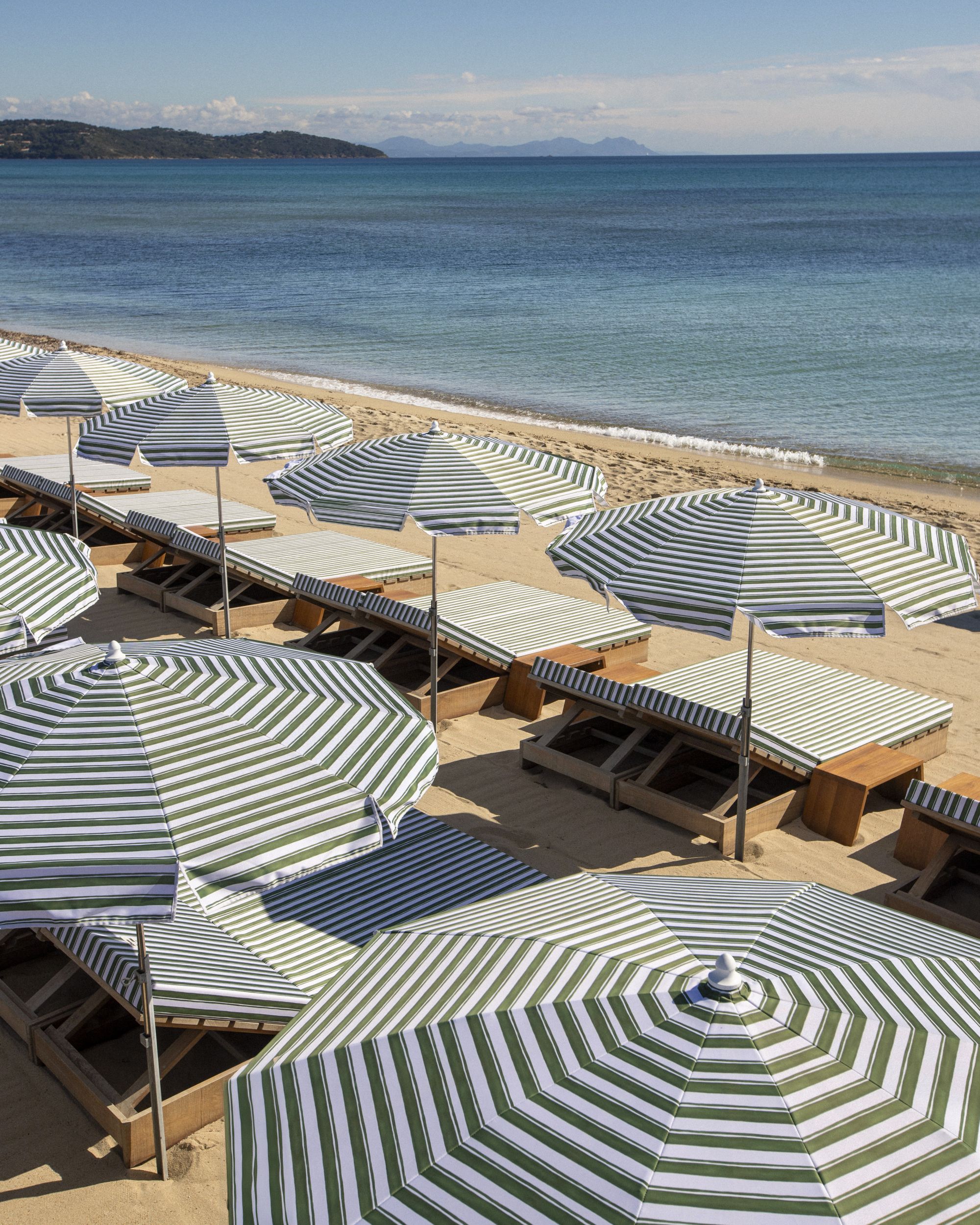 The indie beach takeover is a renewal of last spring 2023 concept, redecorated all over in GREEN stripes. A mini boutique is also located inside indie beach, with the latest spring pieces developped for the opening.