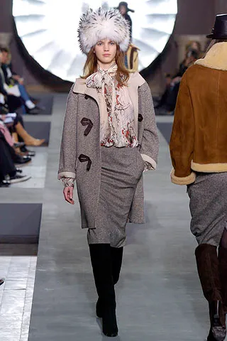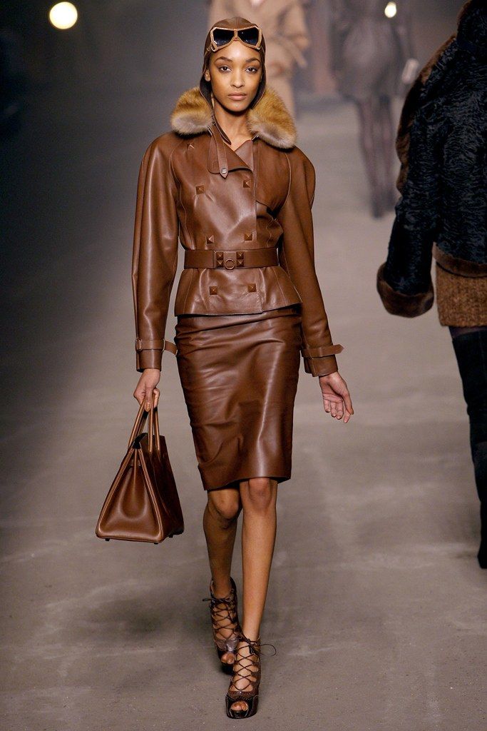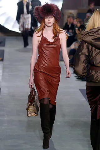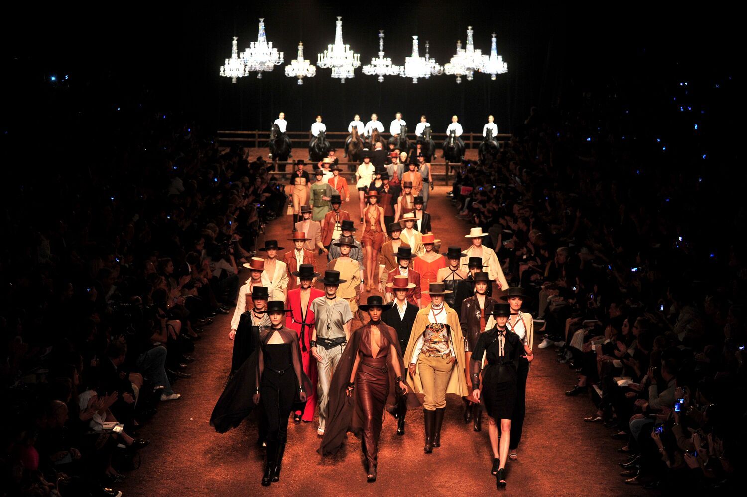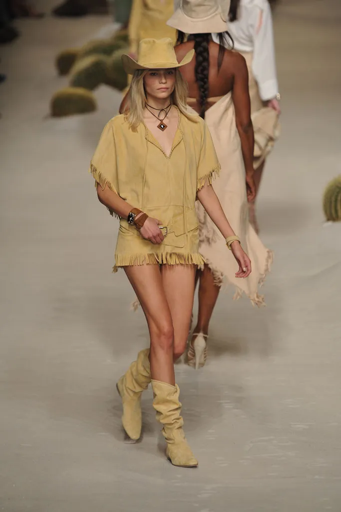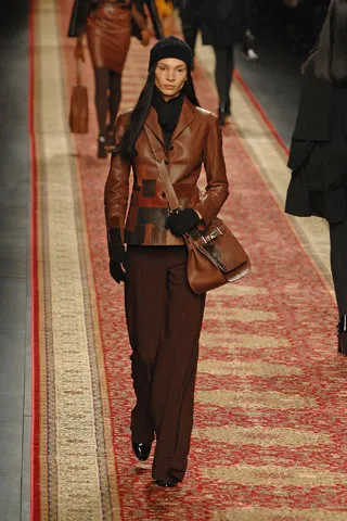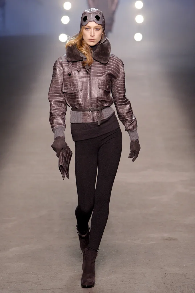 Lou Doillon con una giacca di pelle, abbigliamento da cavallerizza contornato da una chioma voluminosa portata al naturale e un frustino alla mano: la FW04 di Hermès fotografava l’indole caotica e indisciplinata di un creativo largamente acclamato dalla critica alle prese con la dimensione granitica del lusso di Hermès. Su balle di fieno disposte lungo il campo di addestramento equestre dell'Ècole Militaire il pubblico interagiva con cappelli a cilindro, frustini, tenute da cavallerizze, gonne in pelle scamosciate fino al ginocchio, cardigan con colletti di pelliccia rimovibili e sciarpe con frange così lunghe da diventare cappotti lussuosi. L’arancio, il colore distintivo del marchio, era stato sconsacrato su giacche sportive o outerwear più dismesso. Il match Gaultier-Hermés gioca su un precario equilibrio tra opposti che cerca un’area di convergenza tra la verve calda e massimalista del primo e la palette neutrale del secondo. Intersezione che, con la collezione FW07, raggiunge una piena maturità sotto forma di bomber e giacche nere in pelle di coccodrillo, gonne a matita con rouches, berretti da motociclista, completi in tweed marroni, abiti in maglia in tonalità autunnali e persino smoking da uomo prestati ad una dandy declinata al femminile - il tono più teatrale e drammatico di Gaultier convive con la meticolosità che richiede la confezione di un prodotto di lusso. L’immaginario di Hermès, già precedentemente segnato dalla visione e dai layering privi di logo di Martin Margiela, si carica di una sensualità e una velata dose di ironia estranea alla narrativa del brand che Gaultier porterà in passerella fino all’ultima collezione per Hermès, la SS11. «Gaultier saluta Hermès con la cavallerizza andalusa» titola uno degli articoli che il web restituisce cercando testimonianze sull’operato del designer nel territorio della maison del lusso per antonomasia. Tute di pelle nera, pantaloni stretti e avvitati, una parata di stivali da cavallo color burro e abiti in maglia stretti da bustini di lucertola verniciata portate in un vero maneggio: con veri cavalli e cavalieri da sfondo, lo show ha chiuso in pompa magna la saga di Gaultier da Hermès.