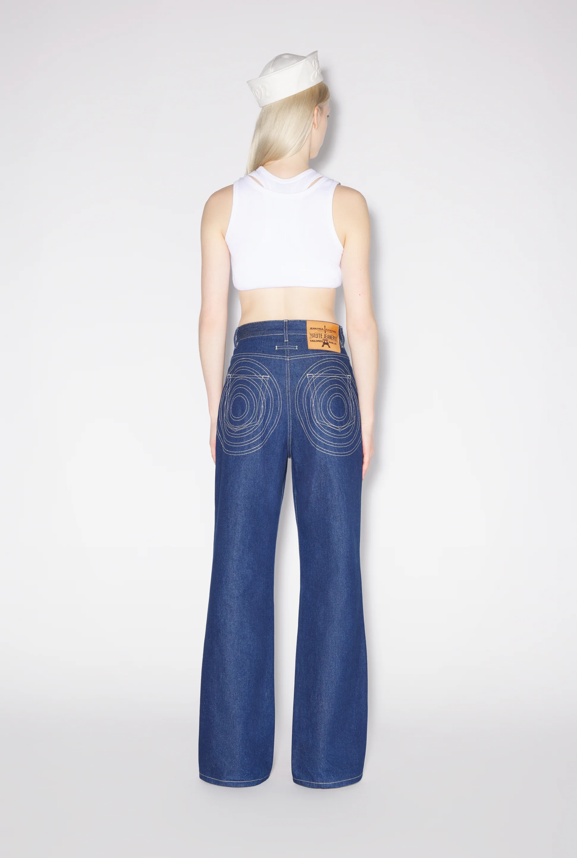 I ricami sulle tasche posteriori dei jeans sono sempre stati una ragione di vanto, una sorta di distintivo. Chi è cresciuto negli anni 2000 ricorderà il boom dei denim scintillanti, come i Chloé con il ricamo di un cavallo firmati Stella McCartney, o i Gucci con le piume colorate dell'era di Tom Ford. Per non parlare dei ricami floreali fai da te, un trend nato da un sentimento di nostalgia per l’estetica Y2K esploso nuovamente durante la pandemia, quando ricamare tornò ad essere un hobby diffuso in tutto il mondo grazie a tutorial su Youtube e TikTok (ad oggi l'hashtag embroidery conta 1.3 milioni di post). Negli ultimi anni, il mercato del denim ha subito una fortissima espansione. A contribuire è stato il ritorno del workwear, con l’attenzione a capi che risaltassero per durabilità e utilità, sperimentando con forme più morbide e abbracciando uno stile più androgino; ma anche l’interesse per il vintage e la moda dell'upcycling, un’industria in cui il denim diventa materiale protagonista proprio per la sua durabilità. Nonostante i ricami sulle tasche posteriori siano andati via via scomparendo, sembra che stiano finalmente facendo il loro ritorno: in prima linea a riportarle in passerella ci sono Balenciaga, che ha incluso nella collezione FW24 l'iniziale "B" disegnata con lustrini sulla tasca posteriore dei denim, e poi Jean Paul Gaultier con ricami di forme concentriche su entrambe le tasche, per un riferimento al reggiseno conico, icona del brand.
