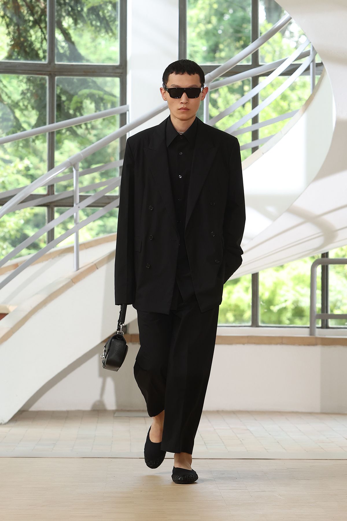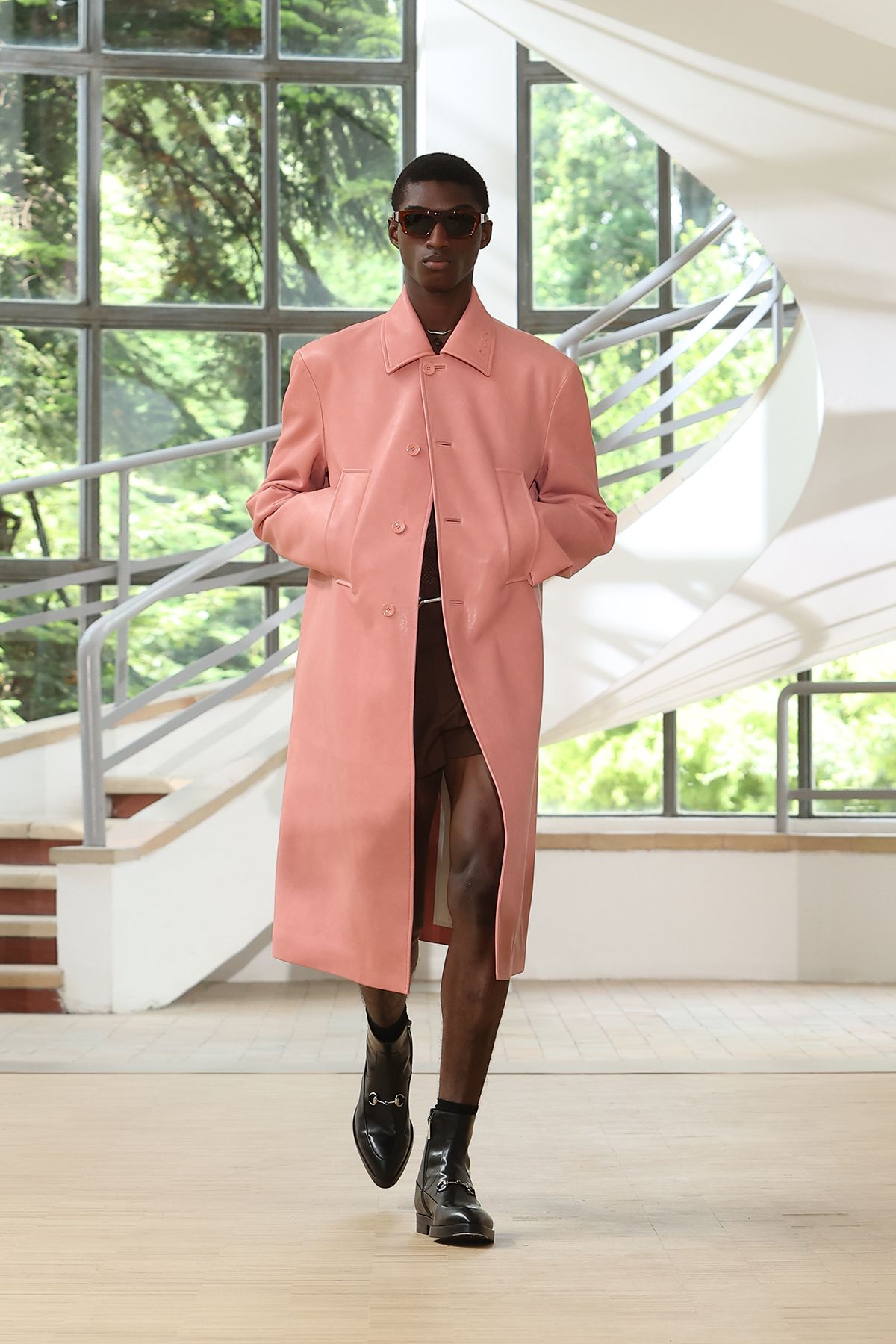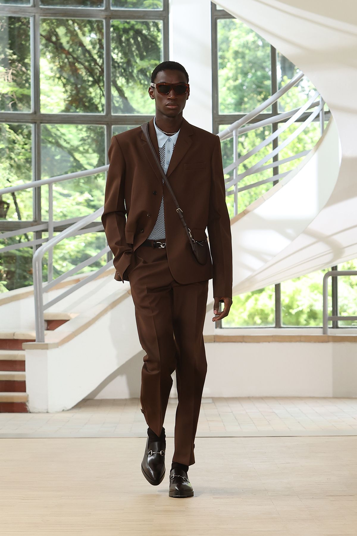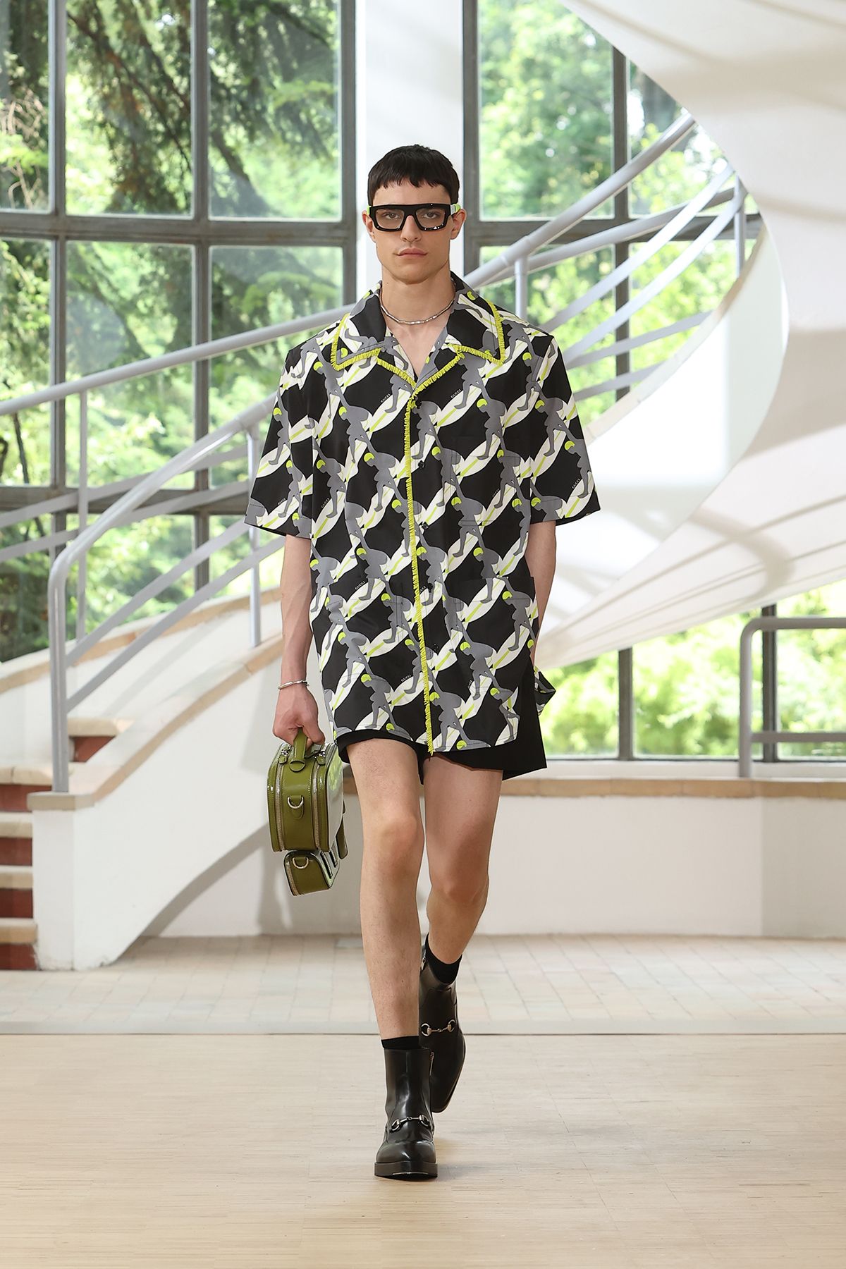 Calzature e accessori hanno continuato la narrazione di innovazione e stile. Stivaletti a punta e sneaker Gucci Cub3d con il motivo G intrecciato hanno proseguito la ricerca di Gucci sul doppio binario di tradizione e innovazione. Le borse, ispirate ai bagagli d’archivio di Gucci, presentavano elementi staccabili e morbide texture in pelle imbottita, con un’enfasi sulla funzionalità contemporanea. Il resto degli accessori ha invece svolto un ruolo centrale nel sottolineare la continuità dei codici del brand: le cinture con chiusura a doppio gancio riprendevano il leggendario Horsebit, mentre braccialetti e collane segmentate in link simili al bambù hanno aggiunto un tocco di eleganza naturale. Occhiali da sole, con montature robuste e cinghie Gucci vivacemente colorate, completavano il look fornendo un tocco di carattere. Nel complesso, la collezione SS25 di Gucci, la seconda maschile creata sotto la direzione creativa di Sabato De Sarno, è stata una testimonianza dell'evoluzione e della visione del marchio. Una filosofia di design che celebra l’idea degli incontri, che fossero tra città e spiaggia, precisione e colore, o tradizione e innovazione, catturando l'essenza della libertà e dell'inclusività nella moda.