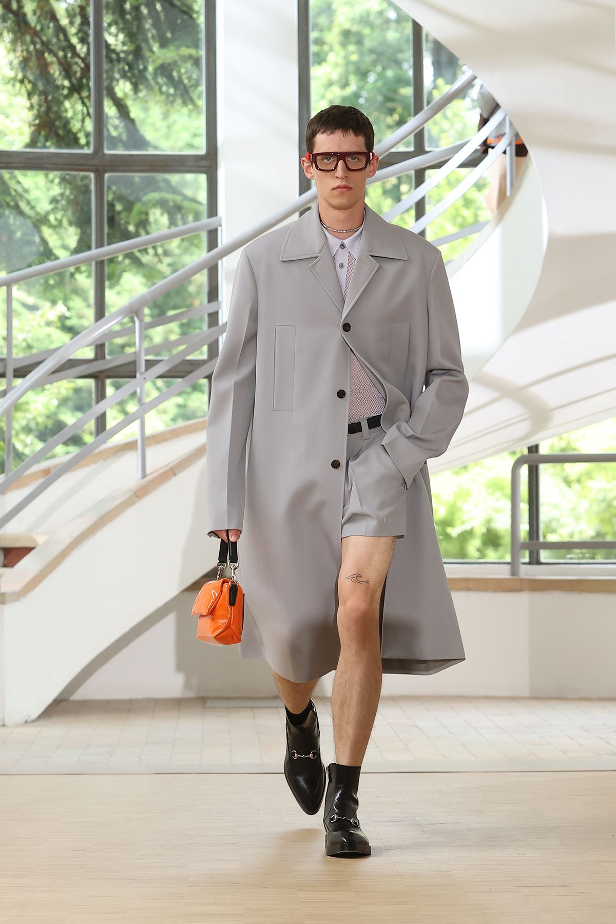 La sfilata SS25 di Gucci tenutasi ieri presso la Triennale di Milano è stata una celebrazione di incontri e libertà, che ha intrecciato le influenze dalla città e dalla spiaggia in un tessuto di vibrante eleganza. Sotto la guida di Sabato De Sarno, la collezione ha segnato un passo deciso avanti per la maison, mescolando la sofisticazione urbana con la naturalezza degli scenari costieri. Lo show si è aperto con una serie di capi sartoriali dal taglio pulito, strutturati ma morbidi e leggeri, la cui freschezza era sottolineata dai cortissimi short onnipresenti praticamente in tutta la collezione. Sul lato sartoriale, giacche monopetto con linee alte e maniche pressate hanno mostrato l'impeccabile artigianalità di Gucci. A completare il quadro, c’erano anche modelli doppiopetto in popeline leggero che hanno offerto un'alternativa fresca e destrutturata per quel tipo di eleganza minimalistica che De Sarno coltiva.