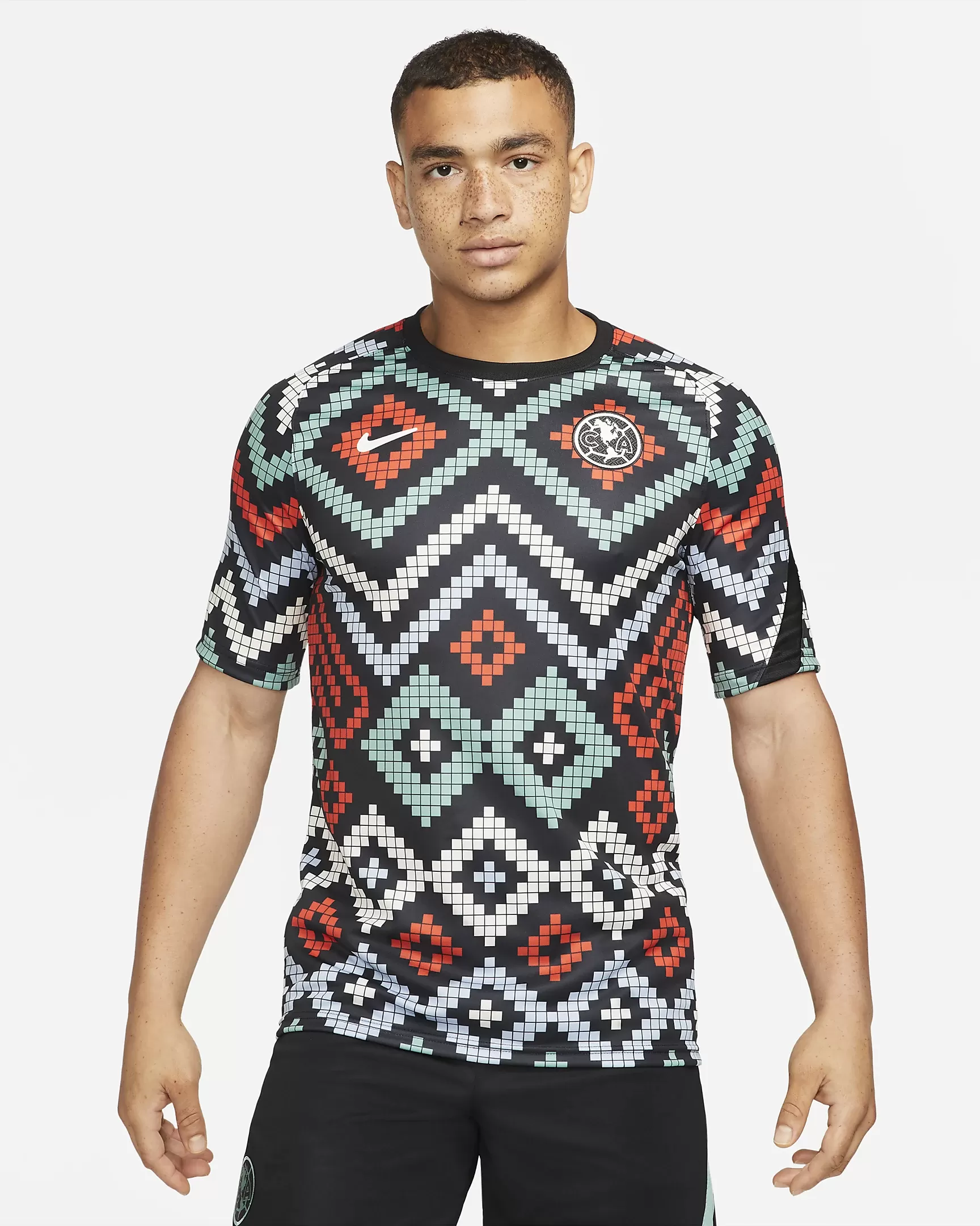 Non è un caso se all'interno della nostra selezione di articoli Nike siano presenti più jersey pre-match che Home, Away o Third. I club si riescono a sbizzarrire in particolar modo con queste, sperimentando pattern e grafiche decisamente fuori dagli schemi. Ne è un esempio questa versione qui del Club América, un esplosione di colori che strizza l'occhio alla tradizione sudamericana.