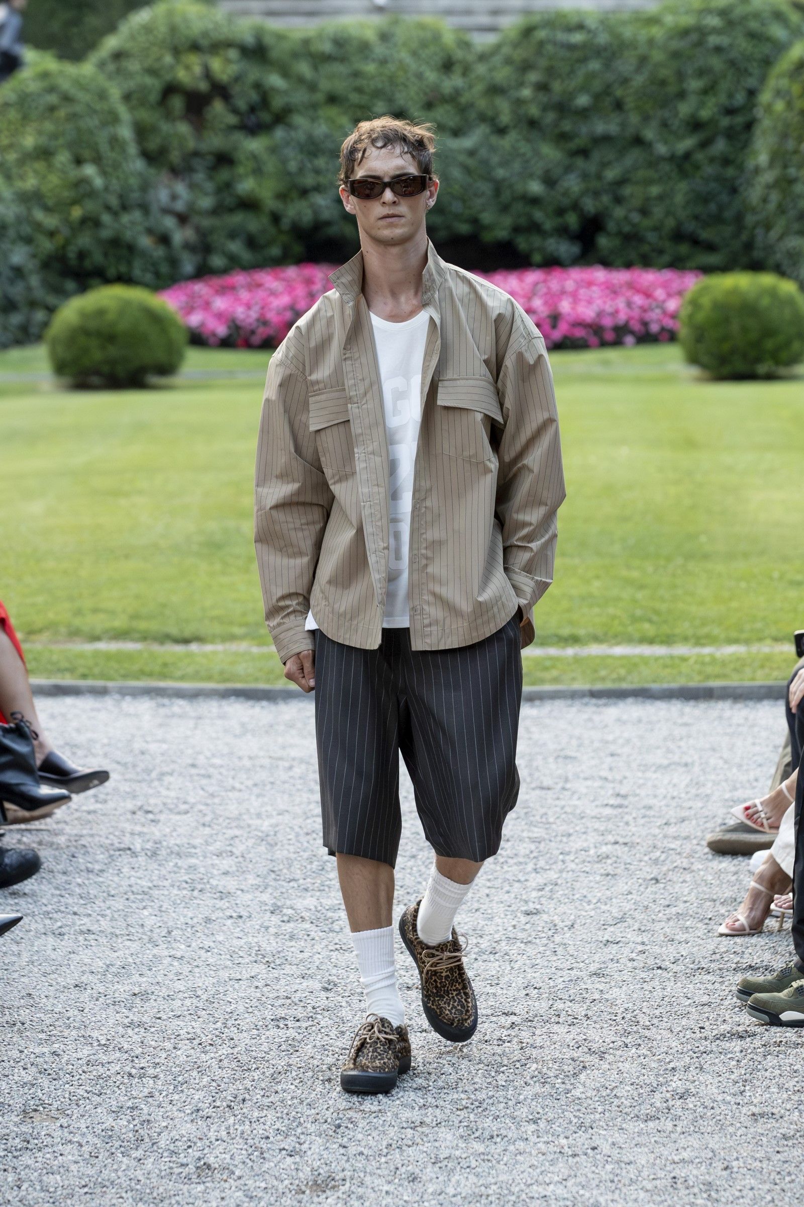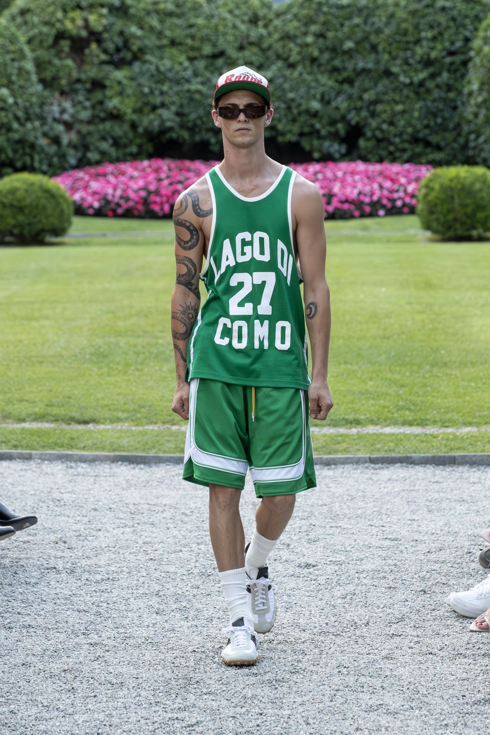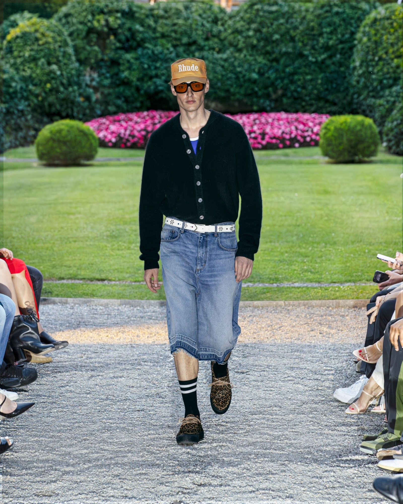 «Riguardando la collezione, non l’ho vista come un passaggio dai look da giorno a quelli da sera, ma come un passaggio dai nostri inizi fino a dove siamo ora. E si poteva vedere la maturità: dalle maglie Swarowski dei vecchi tempi fino alle formalità della sartoria. È l’evoluzione della nostra maturità», ha detto Rhuigi Villaseñor alla fine dello show SS25 di Rhude, andato in scena a Villa d’Este, sulle rive del lago di Como. Il brand di Villaseñor, in effetti, ne ha fatta di strada, e questa collezione segnava la sua definitiva maturazione, a quasi dieci anni dalla fondazione. «Siamo stati otto, nove anni in affari. Ora devo pensare ai prossimi trent’anni, ai prossimi cento. Perché sono qui per costruire un’azienda vera, longeva, che potrò passare alle prossime generazioni», ha proseguito Villaseñor. La collezione, in questo senso, è stata sia un ritorno alle radici che la fotografia di un’evoluzione in cui si è visto, come in un diorama, l’estetica del brand passare dall’informalità delle longsleeve incrostate di cristalli alla compiaciuta signorilità dei completi.
