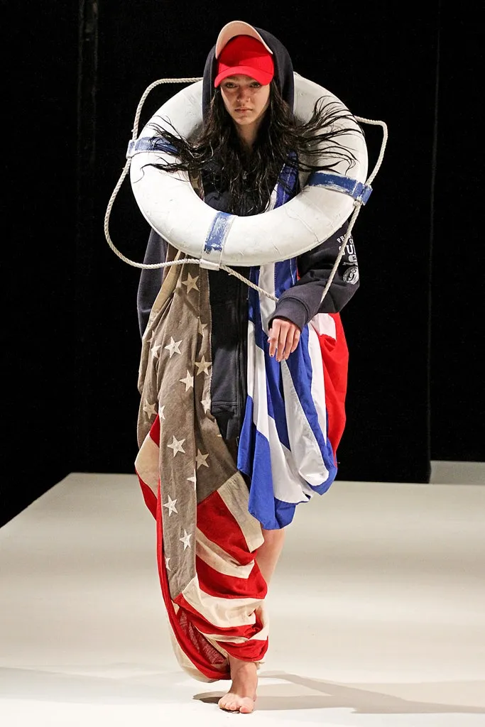 Una bandiera non è solo un pezzo di stoffa, ma un’icona che, in quanto tale, porta con sé tutta una serie di significati culturali che possono venire rispettati o meno. Mentre agli inizi dello scorso autunno si annunciava il ritorno del fantastico indie sleaze, il movimento a cavallo tra il 2000 e il 2010, tra i più appassionati dell’estetica sorgeva la domanda: ma quindi torneremo a indossare vestiti con le bandiere inglesi e americane? Lo stile prende il nome dalla musica indie, un genere che in quegli anni aveva trovato ampio spazio di crescita nel Regno Unito e negli Stati Uniti grazie a band come gli Strokes, gli Arctic Monkeys e i Libertines. I fan delle tre band si ritrovavano con indosso magliette, cappellini e borse con una riproduzione della Union Jack o della bandiera a stelle e strisce non tanto per patriottismo, quanto per ribellione. Così come negli ultimi anni le community solitamente emarginate dal mondo dello sport si sono appropriate di estetiche come il balletcore o il blokecore, l’indie sleaze indossa i colori della sua nazione per richiamare l’attenzione dei vertici al governo. Del resto erano gli anni della Recessione: quale altro modo per affrontare un periodo buio se non ridendoci su?