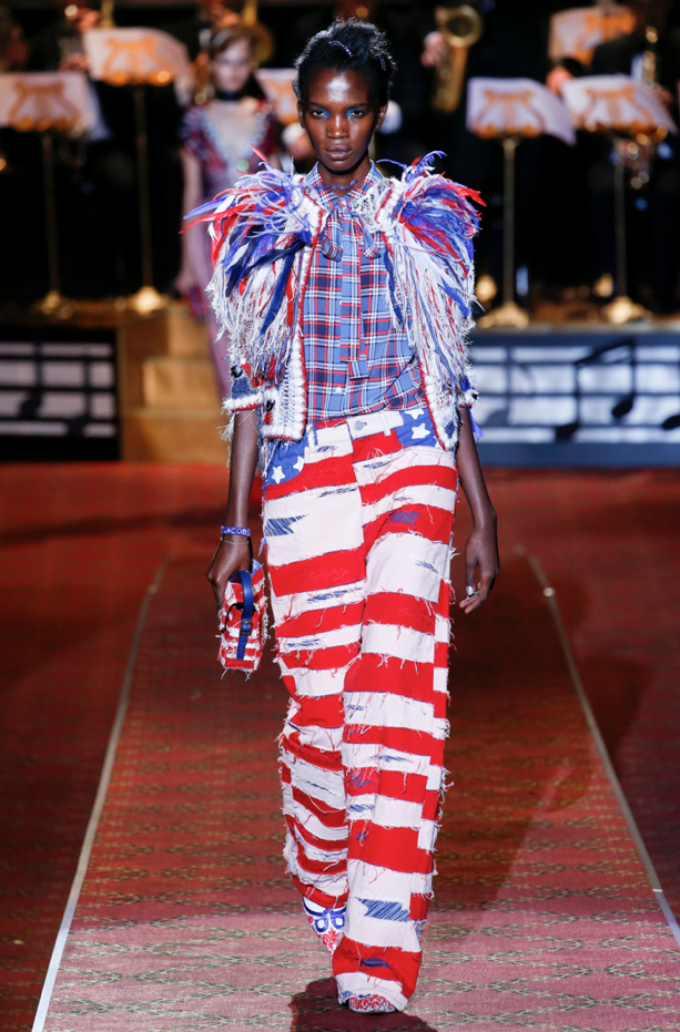 Dopo aver raccontato le ragioni che hanno spinto le community più anti-nazionaliste del Regno Unito a indossare abiti e accessori con l’Union Jack, diventa facile spiegare come è successo lo stesso negli Stati Uniti, forse il paese più patriottico al mondo. Dopo che stilisti come Ralph Lauren l'hanno riportata nelle loro collezioni old money, tra pullover blu, t-shirt bianche e blue jeans, è arrivato il turno di creativi sovvertitori. Nel corso della storia, la bandiera americana è stata presa come esempio di stile dai repubblicani più conservatori, che la indossano stampata su maglie camouflage con l’aquila, altro simbolo del Paese, ma anche dai liberali che per prenderli in giro copiano il look con un taglio un po’ più queer. È stata indossata dagli hippie per protestare contro la guerra in Vietnam, mentre in passerella è stata ripresa da designer come Miguel Androver, Jeremy Scott e Marc Jacobs per lanciare una critica. Per diversi anni, a partire dall’attentato alle Torri Gemelle del 2001, è successo l'opposto, e anche le star meno schierate della pop culture sono apparse in pubblico indossando la bandiera americana, un fenomeno che anni dopo ha dato vita alla trasformazione ideologica della bandiera in quanto grafica “hot”, sotto la guida in primis di Lana del Rey. In quel caso, i micro shorts di jeans con le tasche a stelle e strisce non se li scorda nessuno.