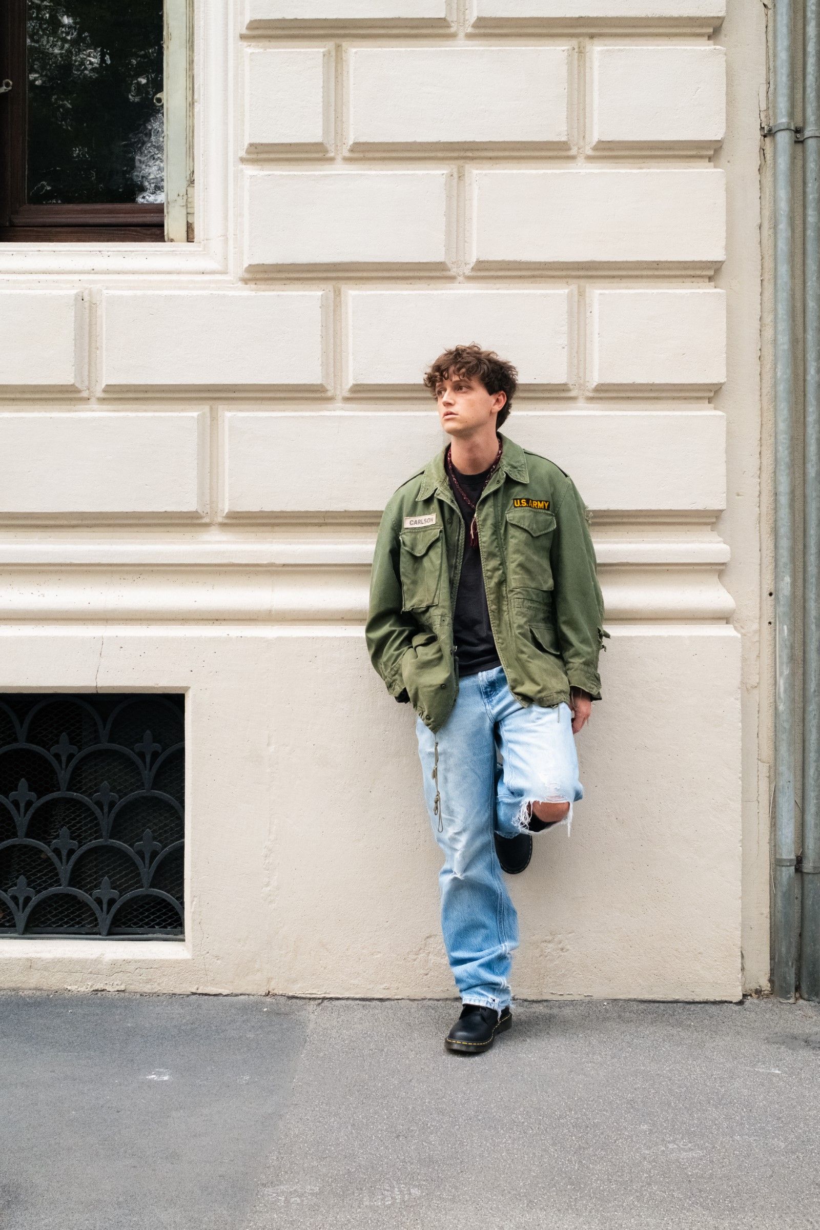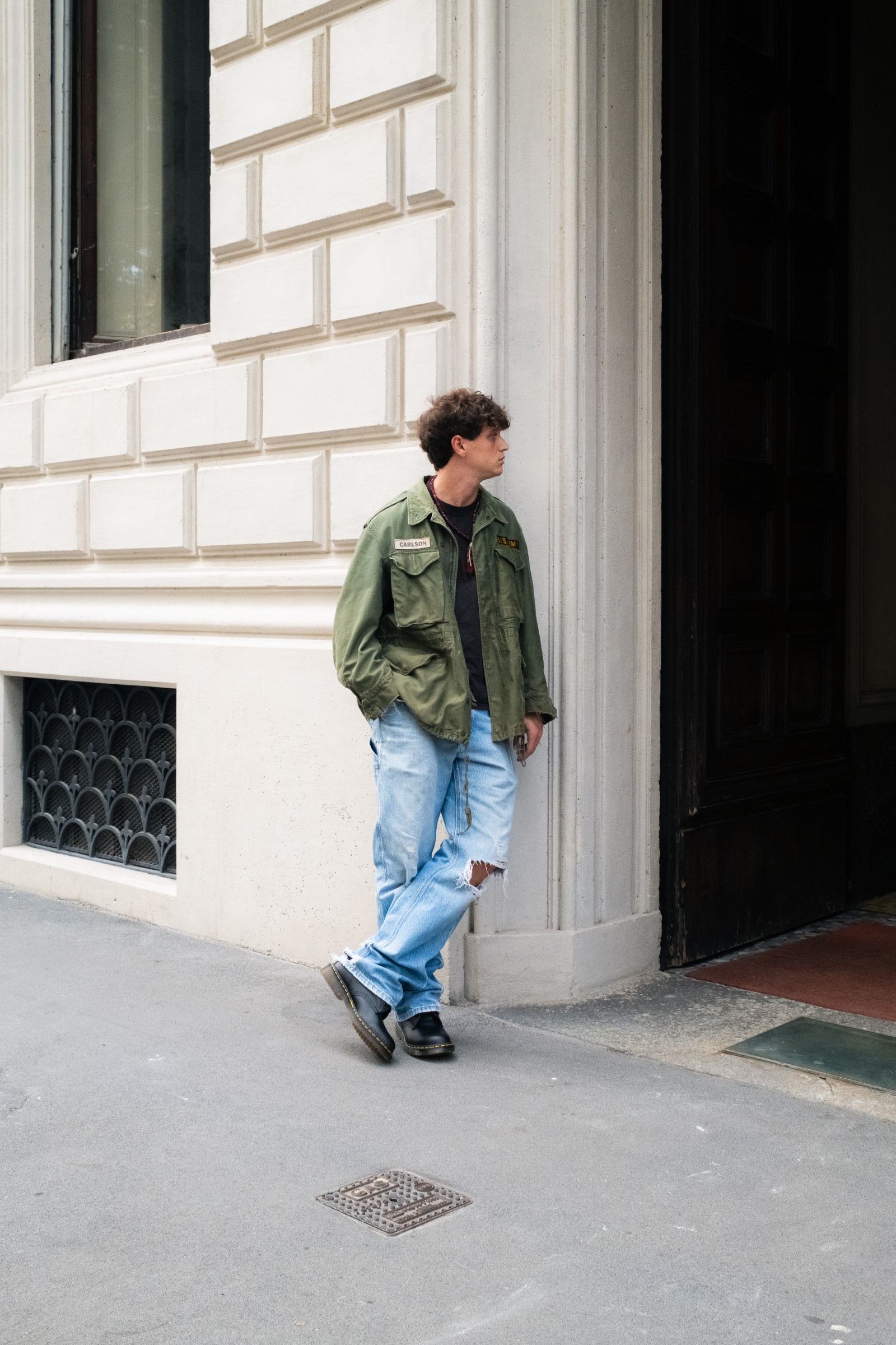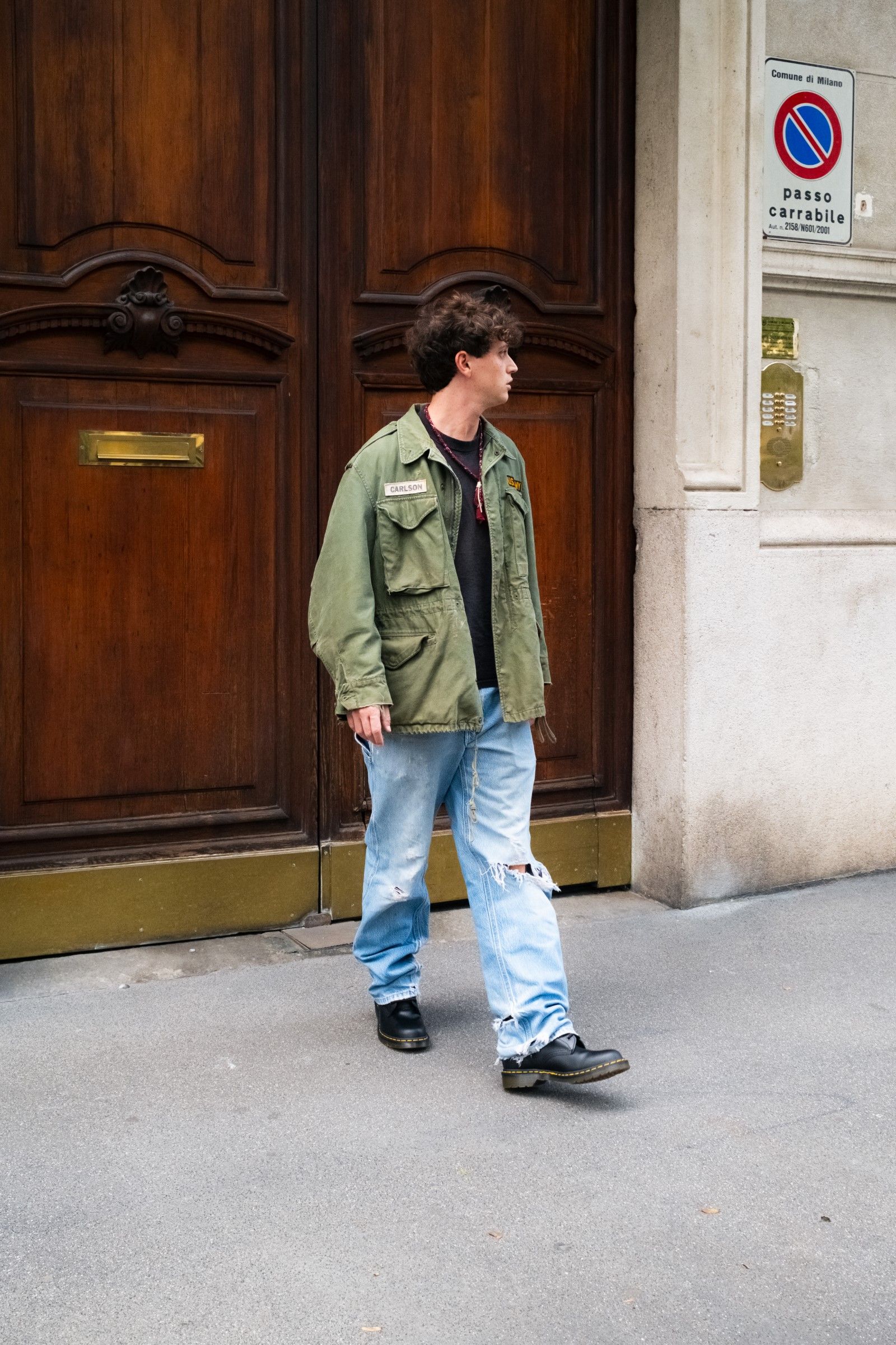 Come collezionista di vintage, Giulio Marchioni ha voluto combinare il boot con alcuni classici: «Una semplice maglietta nera, un carpenter da lavoro anni ’90 e un M51 dell’U.S. Army» per il primo look più classico e invece «un denim nero, una camicia e uno shell» per un outfit più contemporaneo “like no other”.