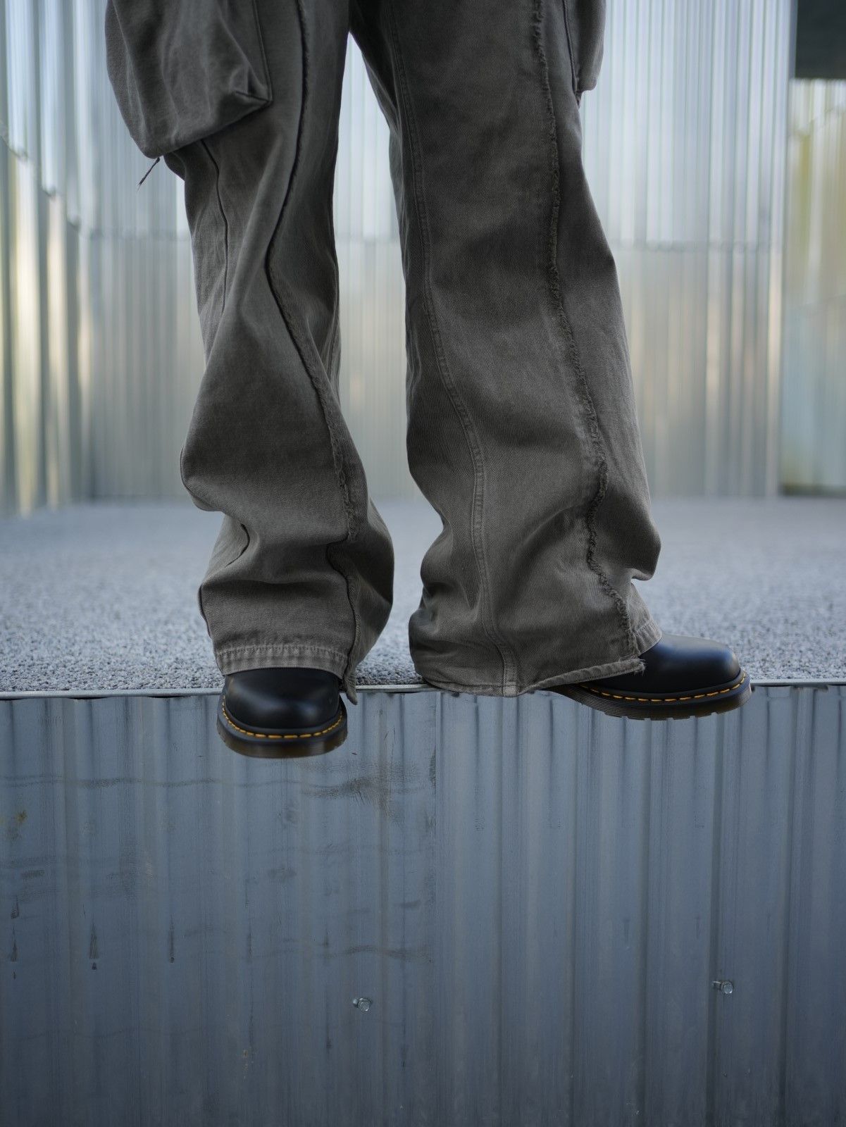 Per dimostrare la costante contemporaneità del modello, la sua capacità di dialogare trasversalmente con i gusti estetici di generazioni diversissime tra loro, abbiamo domandato allo youtuber Alessio Clementi e allo specialista di moda d’archivio Giulio Marchioni di mostrarci due diverse interpretazioni sullo styling contemporaneo del modello che è indossabile “like no other”. Entrambi hanno proposto variazioni molto interessanti: “Come primo fit ho optato per un’ispirazione American Japanese” ci ha spiegato Alessio Clementi, che ha mostrato come abbinare il boot a una silhouette molto baggy. Come secondo outfit, ha invece scelto un cargo “che a contrasto col boot ricorda un po’ il mondo militare e per rendere il fit leggermente più particolare ho inserito il pantalone all’interno della scarpa”. Infine, per il terzo fit Alessio ha mischiato “il mondo nordico con un po’ di asiatico” creando un look minimale black con pantaloni sartoriali neri a gamba ampia e un lungo trench nero che crea una silhouette fluida ma semi-formale.