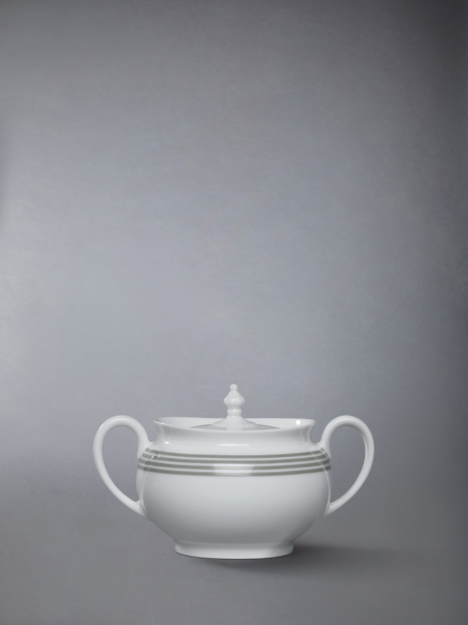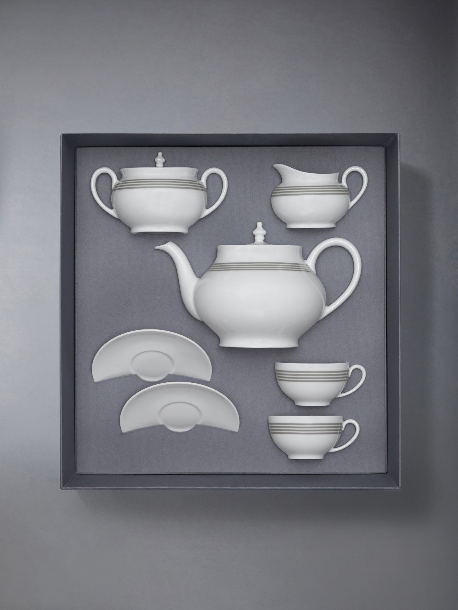 Infine, nella campagna è stata anche presentata la nuova collezione in collaborazione tra Thom Browne e Haviland che esprime l'eleganza minimalista di Browne attraverso l’eccezionale maestria artigianale della maison francese. Con oltre due secoli di storia, Haviland si è rivelato il partner ideale per concretizzare la visione di Thom, dando vita a una collezione di porcellane di Limoges, realizzate in Francia con un'eleganza scolpita che richiama gli amati oggetti d’antiquariato collezionati da Browne, impreziositi da un tocco di heritage sportivo. Ogni pezzo, dal set da tè ai singoli elementi come tazze, piattini, teiere e zuccheriere, è impreziosito dall'iconica 4-bar del brand, combinando un savoir-faire radicato e una modernità discreta, perfetta per chi ama l’arte e il lusso.