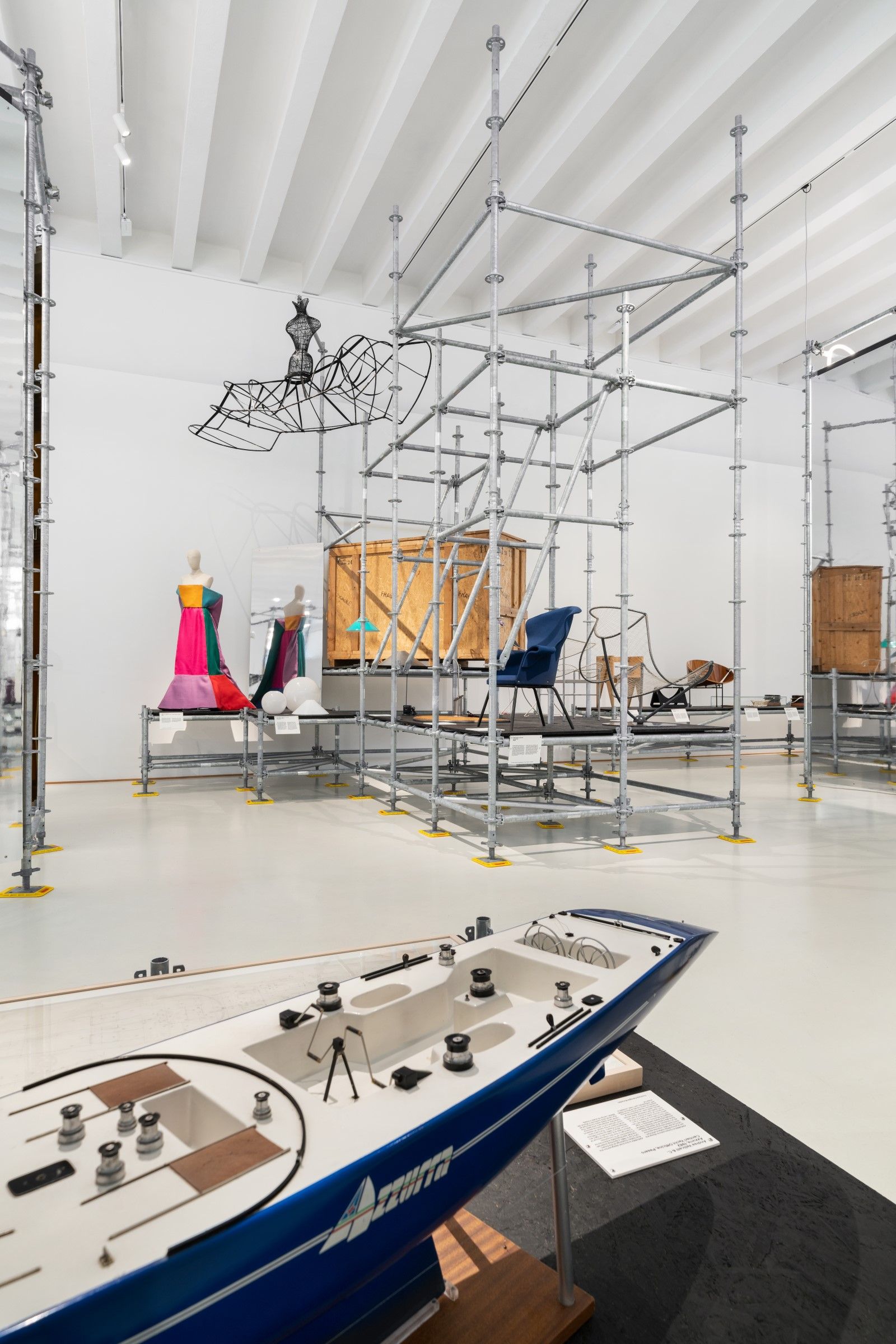 La chiave di volta dell’esposizione è dimostrare la multidisciplinarietà e permeabilità delle diverse discipline: «Il movimento è quello di un abito addosso al corpo, e allo stesso tempo quello di un abitacolo, di un veicolo, ma anche di un'abitudine sociale che si trasforma», spiega Sammicheli, per cui il dinamismo è il filo conduttore di questa narrazione. Nella mostra la moda ha comunque un ruolo da vera protagonista con abiti di Versace, Alaïa e Comme des Garçons accanto a oggetti che incarnano il genio del design italiano, creando un dialogo visivo e concettuale che vuole esplorare la fondamentale sinergia tra settori grazie alla quale «il design dialoga con tre nuovi ambiti di ricerca e divulgazione: la moda sulla base di assonanze compositive tra forme, materiali, periodi storici e idee progettuali; la nautica, rappresentata da disegni e modelli, e l’illustrazione, che include progetti legati alla satira, al disegno per riviste e giornali e alla grafica d’autore». Ma il lavoro del nuovo Dipartimento Moda non si limita alle esposizioni. Uno dei suoi obiettivi fondamentali è anche costruire un ponte tra l’istituzione e il mondo accademico, coinvolgendo scuole come NABA, Politecnico e Marangoni. «Il rapporto con le scuole sarà molto attivo. Lo è già con gli studenti che scelgono la nostra istituzione per convegni, giornate di studi o visite alle mostre. Il Dipartimento Moda rafforzerà questi rapporti e realizzerà progetti che intreccino la formazione sul campo con quella che avviene nelle aule universitarie», spiega Sammicheli, che ha sottolineato l’importanza di creare «un progetto di formazione integrata che includerà professionisti, aziende e studenti in percorsi dedicati alle professioni attive lungo le filiere del tessile, della confezione».