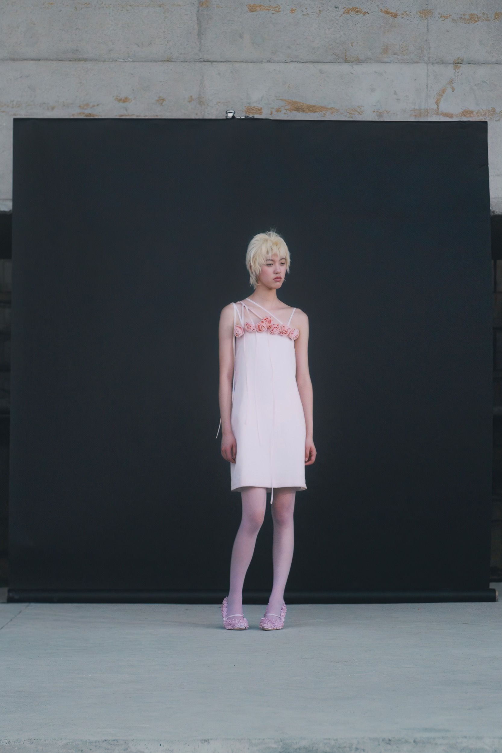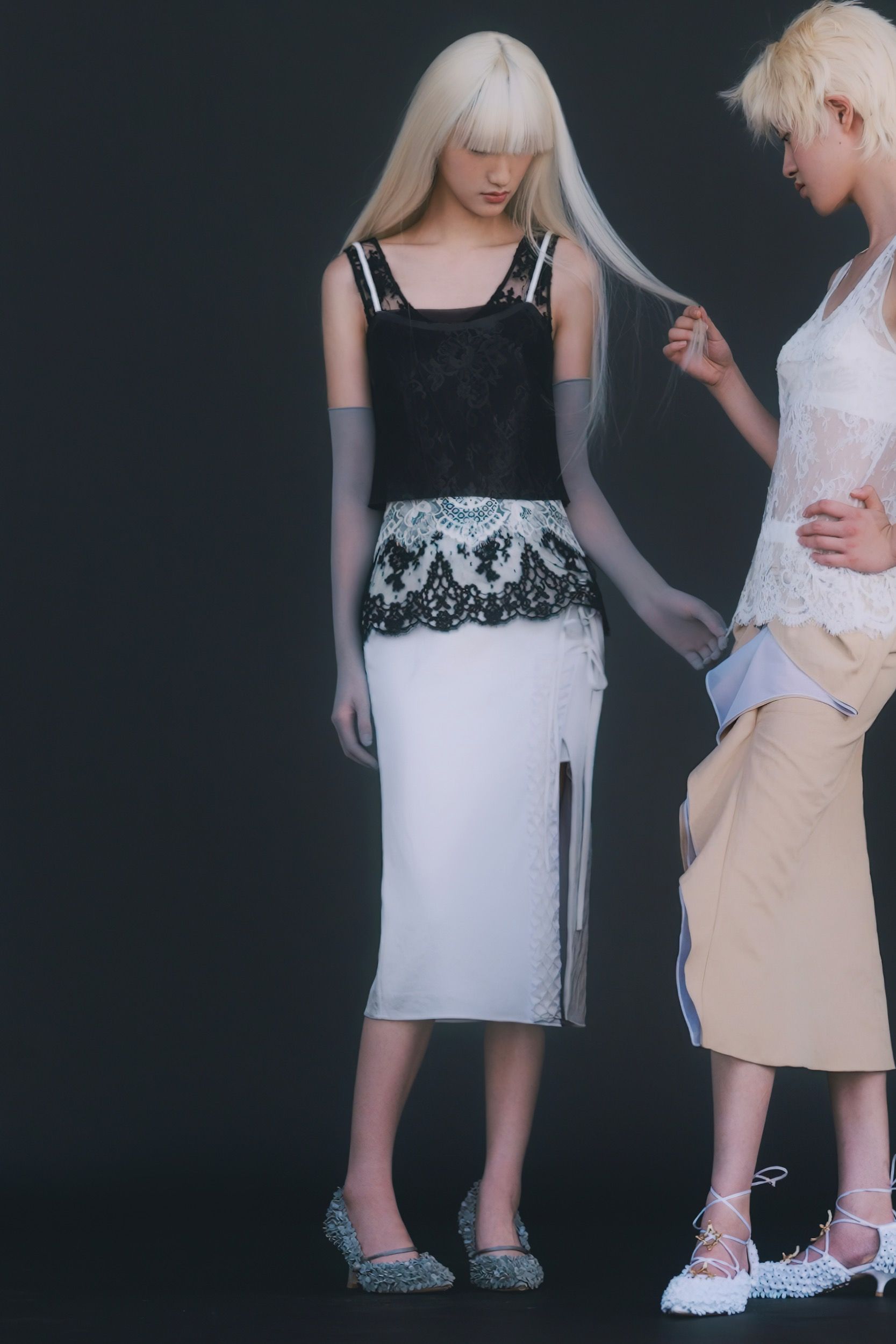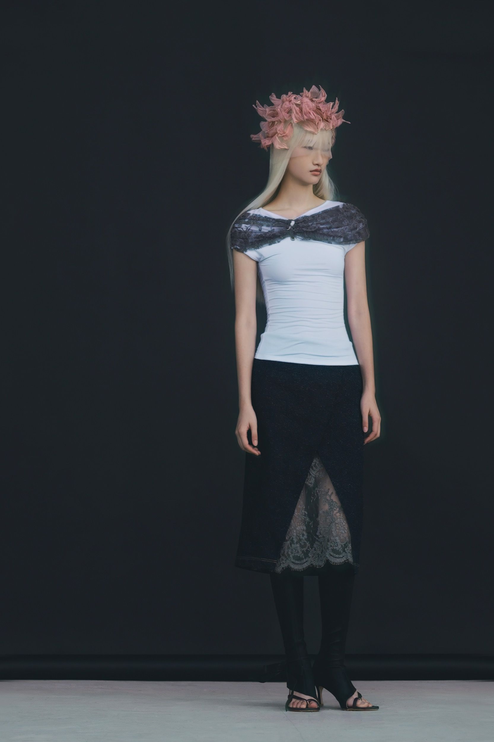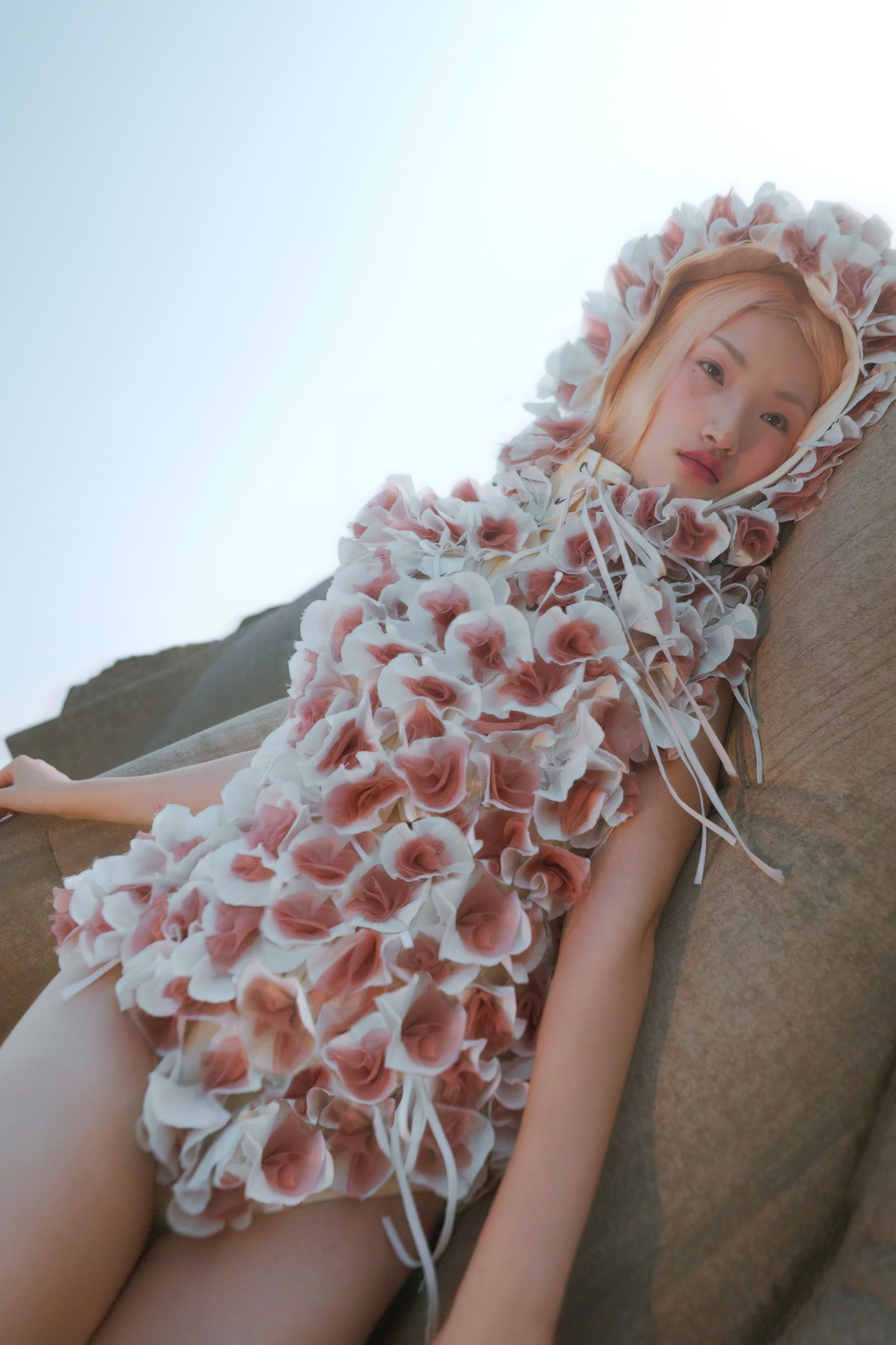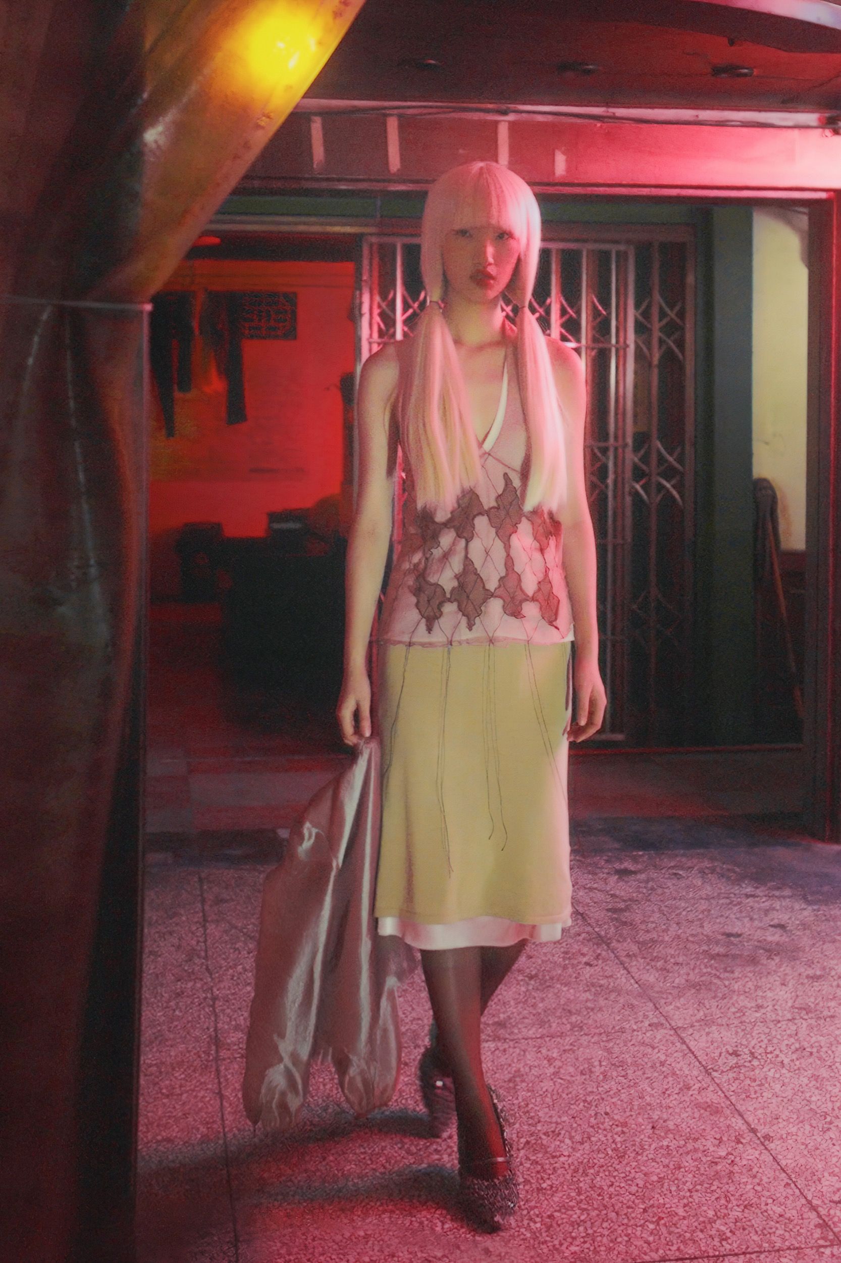 Nel panorama odierno dei reality show, come The Bachelor o Love Island, i fan attendono con impazienza i momenti in cui possono rivedere i loro protagonisti preferiti e rivivere i momenti salienti della stagione. Ma vi siete mai chiesti se le debuttanti di un tempo avrebbero potuto sfruttare questa tendenza? Entra in scena Louis Shengtao Chen, un fenomeno della moda che si presenta come una debuttante moderna. Il suo debutto avviene nel 2021 alla Shanghai Fashion Week, dove presenta la collezione intitolata The Debutante. Con un mix audace di eleganza sartoriale francese tradizionale e ispirazioni da ballo, Chen rompe gli schemi grazie all’uso di materiali non convenzionali come nastro adesivo, cravatte vintage e componenti meccaniche. La sua visione ridefinisce il concetto di debuttante nel XXI secolo: forte, sicura di sé e assolutamente moderna, quasi una "baddie" colta e sofisticata. Tre anni dopo, Chen continua a superare i confini della moda, spingendo la sua creatività verso nuove direzioni. Per la collezione Primavera/Estate 2025, presenta Echoes in the Fog, una rappresentazione poetica di una donna che affronta il paradosso tra bellezza e prigionia. Le sue creazioni raccontano questa dualità: silhouette morbide e fragili si contrappongono a vita drammaticamente strutturate e tessuti ricchi di texture. L’intera collezione è intrisa della sua cifra stilistica, che mescola ingenuità e maturità: pizzi che spuntano da gonne di jeans, abiti in organza che si sovrappongono a motivi argyle, e cappucci ispirati ai fiori che evocano un’aria di fantasia.