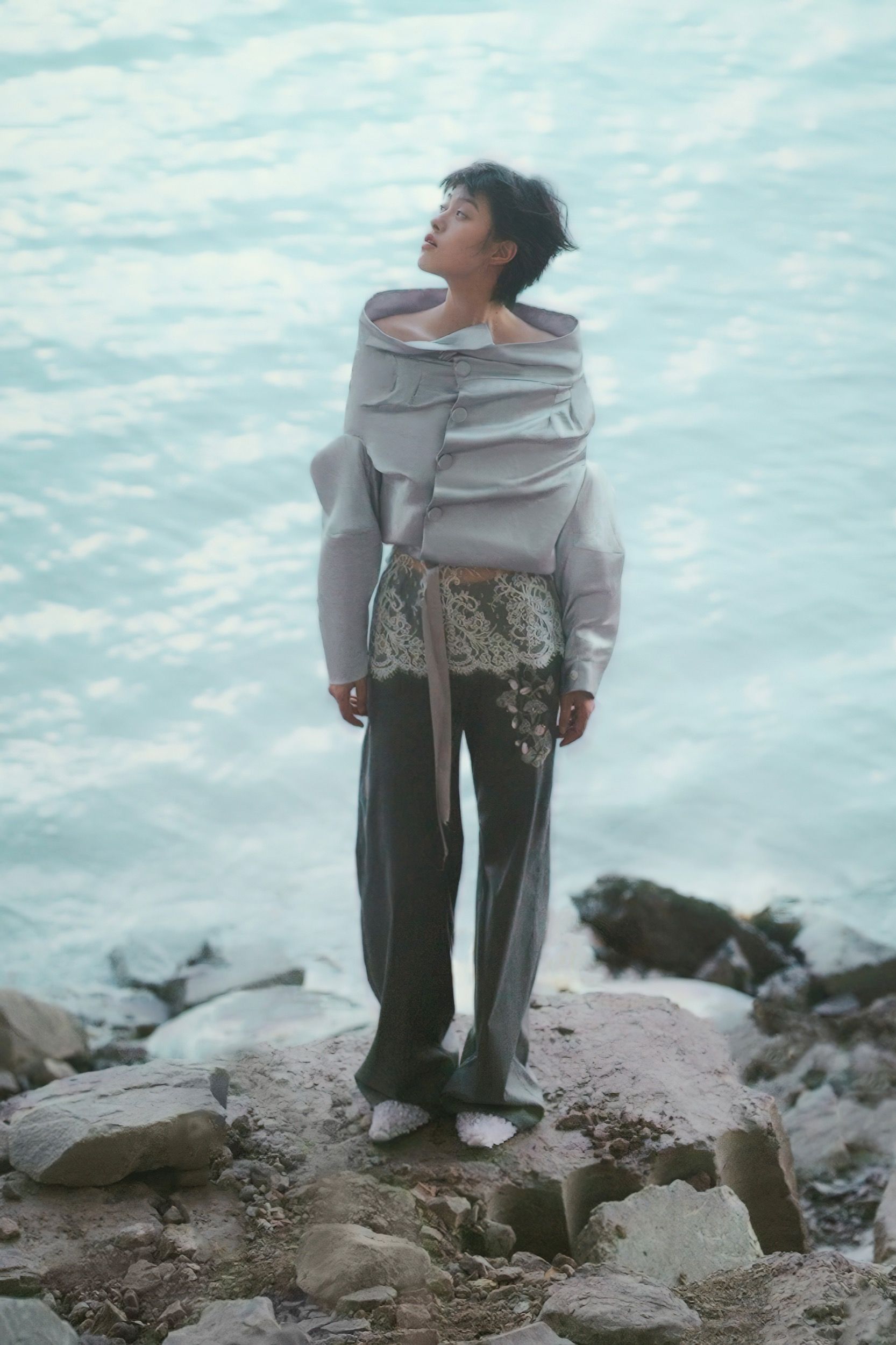 La cliente dell’universo Louis Shengtao Chen non è definibile da un solo nome o immagine. È presente nell’essenza delle nostre creazioni. Un tempo avrei potuto fare riferimenti a icone come Ni Ni o Faye Wong, ma ora vedo le nostre clienti davanti a me: donne che incarnano resilienza e sicurezza in sé stesse. Queste donne sono raffinate ma fluide, affrontano la vita con profondità emotiva e passione per la moda. Abbracciano i loro interessi e hobby con energia ed entusiasmo, riflettendo uno spirito vibrante. Il nostro marchio non è freddo o distaccato; è intriso di emozione, risuonando con coloro che, come me, apprezzano la bellezza negli abiti e nella vita stessa.
