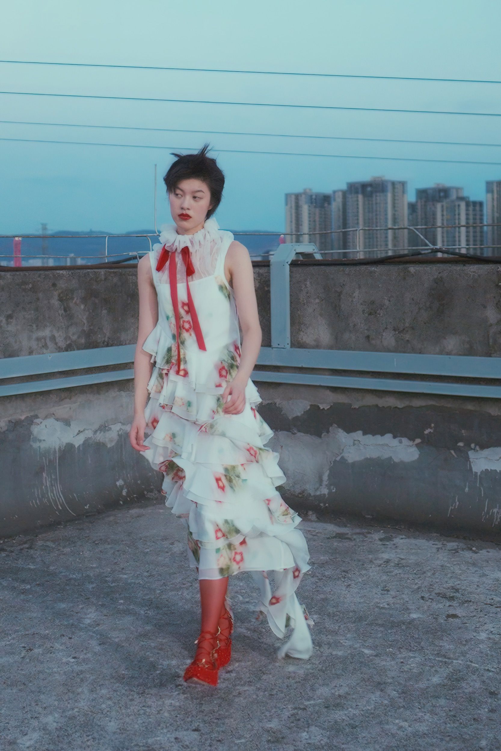 La pandemia è stata un periodo difficile per tutti, me compreso. Eppure, ho avuto la fortuna di lanciare il mio marchio in un momento in cui l’industria della moda in Cina continentale era particolarmente ricettiva e solidale. In un contesto globale quasi privo di sfilate fisiche, Shanghai è stata una delle prime città a tornare in passerella, e mi sono ritrovato nel posto giusto al momento giusto. È stato un mix di tempismo perfetto e del supporto delle persone che credevano nella mia visione. Vedere il mio lavoro in passerella per la prima volta è stato travolgente. Dopo essermi laureato senza una sfilata fisica a causa della pandemia, il debutto del 2021 è stato un’esperienza completamente nuova. Dalle prove abito al formato performativo della presentazione, ogni dettaglio è stato emozionante. Gli applausi e il riconoscimento ricevuti hanno ripagato tutti gli sforzi.