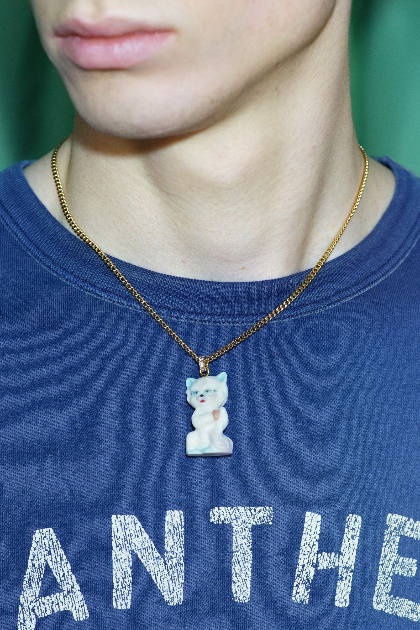 È curioso che un direttore creativo loquace e filosofo come Alessandro Michele non abbia accompagnato la sua ultima collezione FW25 di Valentino dalla minima nota o riga scritta. Dopo tutto, era lui che ci aveva abituato alla figura di un designer che ricama tanto su questioni di semiotica che sugli abiti che presenta. Eppure quest’ultima collezione, arrivata sotto forma di lookbook-fiume, non possedeva alcun messaggio – lasciandoci intendere che Michele abbia pensato che i look sappiano benissimo parlare da sé. In effetti lo fanno: è in qualche modo piacevole che il designer abbia abbandonato degli sforzi retorici la cui spesso intensa sostenutezza appesantisce look già in se stessi sovraccarichi di dettagli. In questa stagione, dunque, il vortice di barocchismo non si è interrotto ma se volessimo andare a cercare una nota di cambiamento rispetto alle due precedenti collezioni firmate da Michele potremmo forse trovare da un lato dei momenti di liberatoria eccentricità rappresentati dai molti accessori e maxi-ricami figuranti gatti; e dall’altro un occhio più acuto e sottile per la portabilità dei prodotti: scarpe, borse e occhiali principalmente, ma anche una buona dose di jeans e blazer, di t-shirt logate e stampe a tema vegetale abilmente dissimulati in un profluvio di bluse vittoriane, mantelli e giacche più ricamate di quelle del sultano del Brunei.
