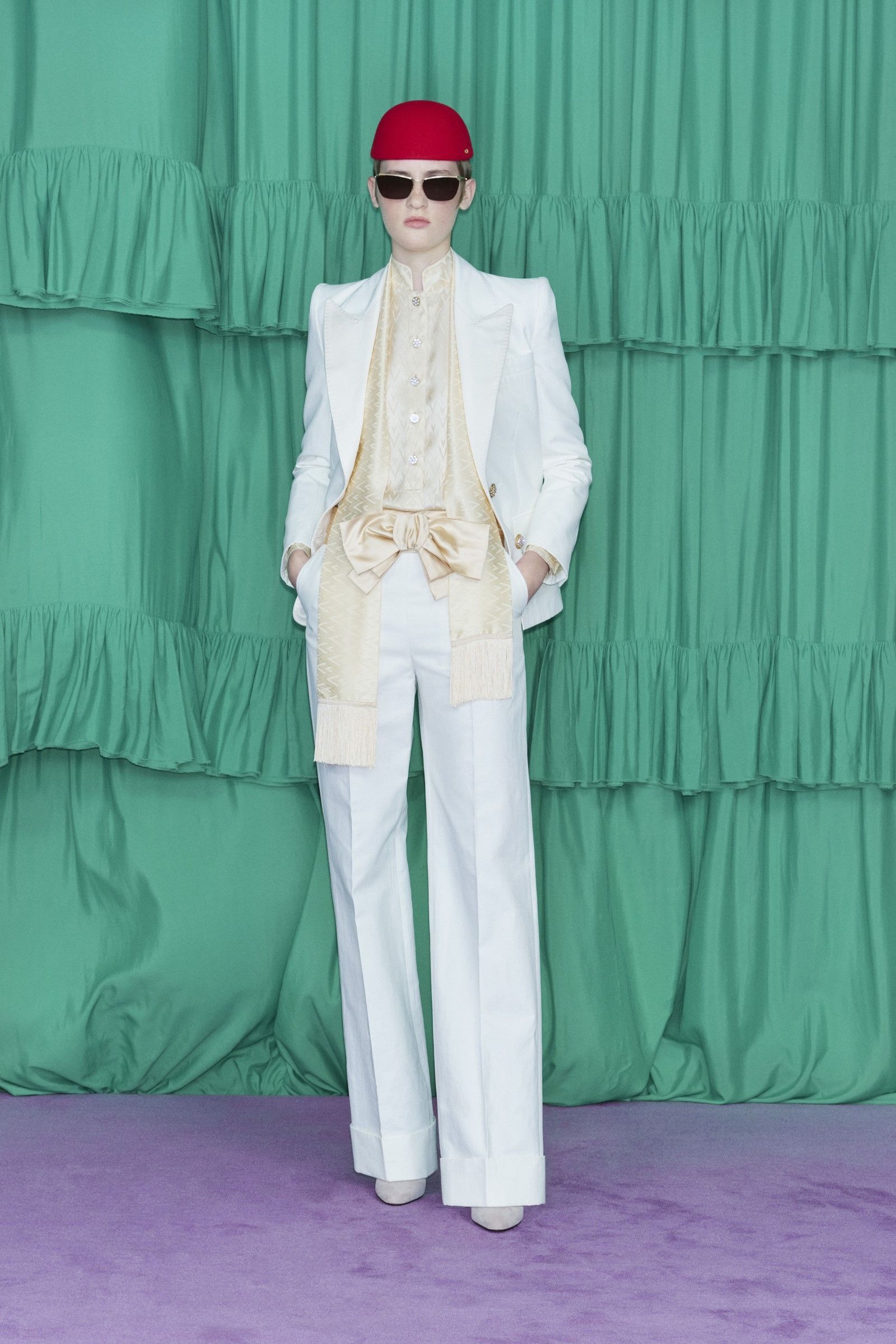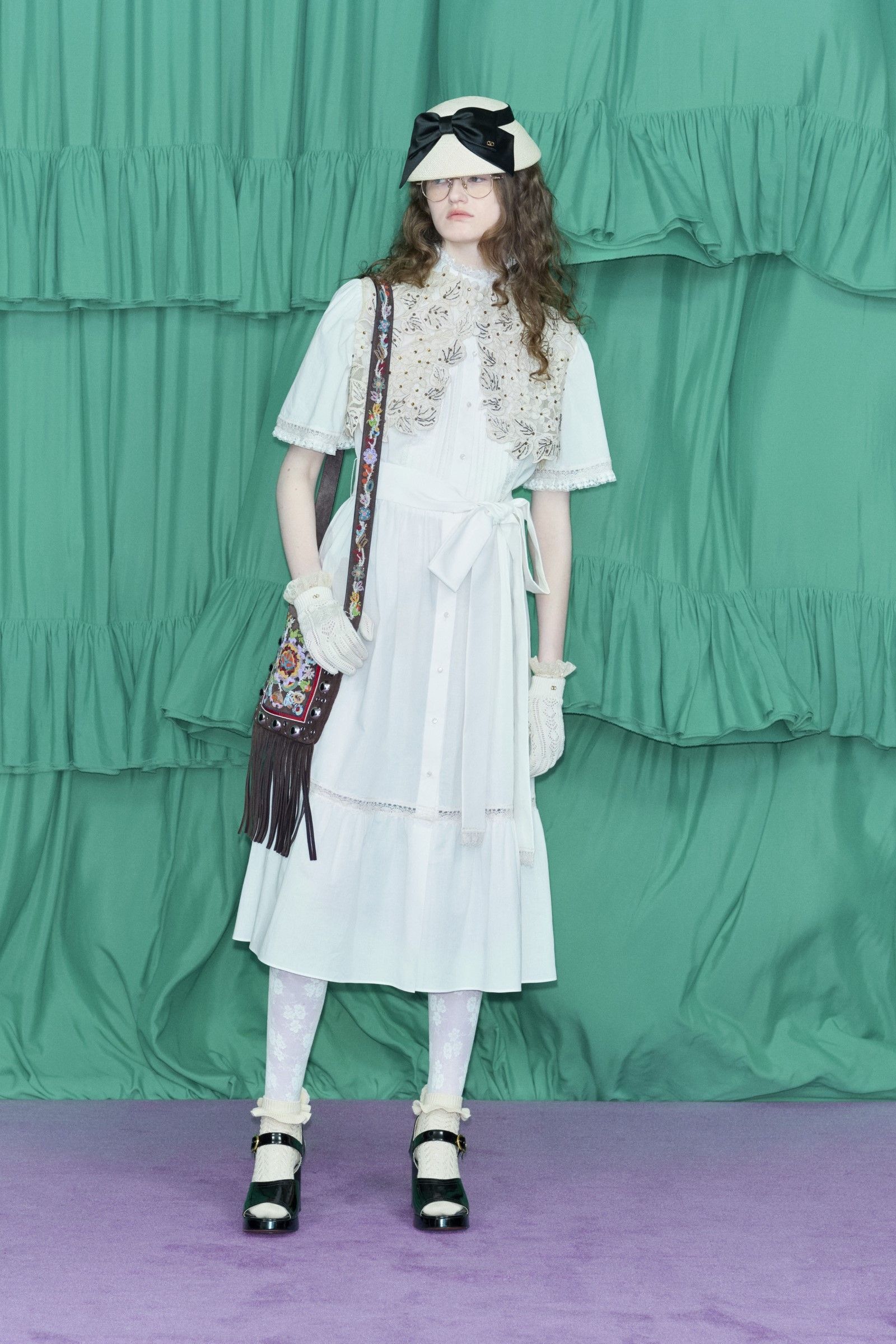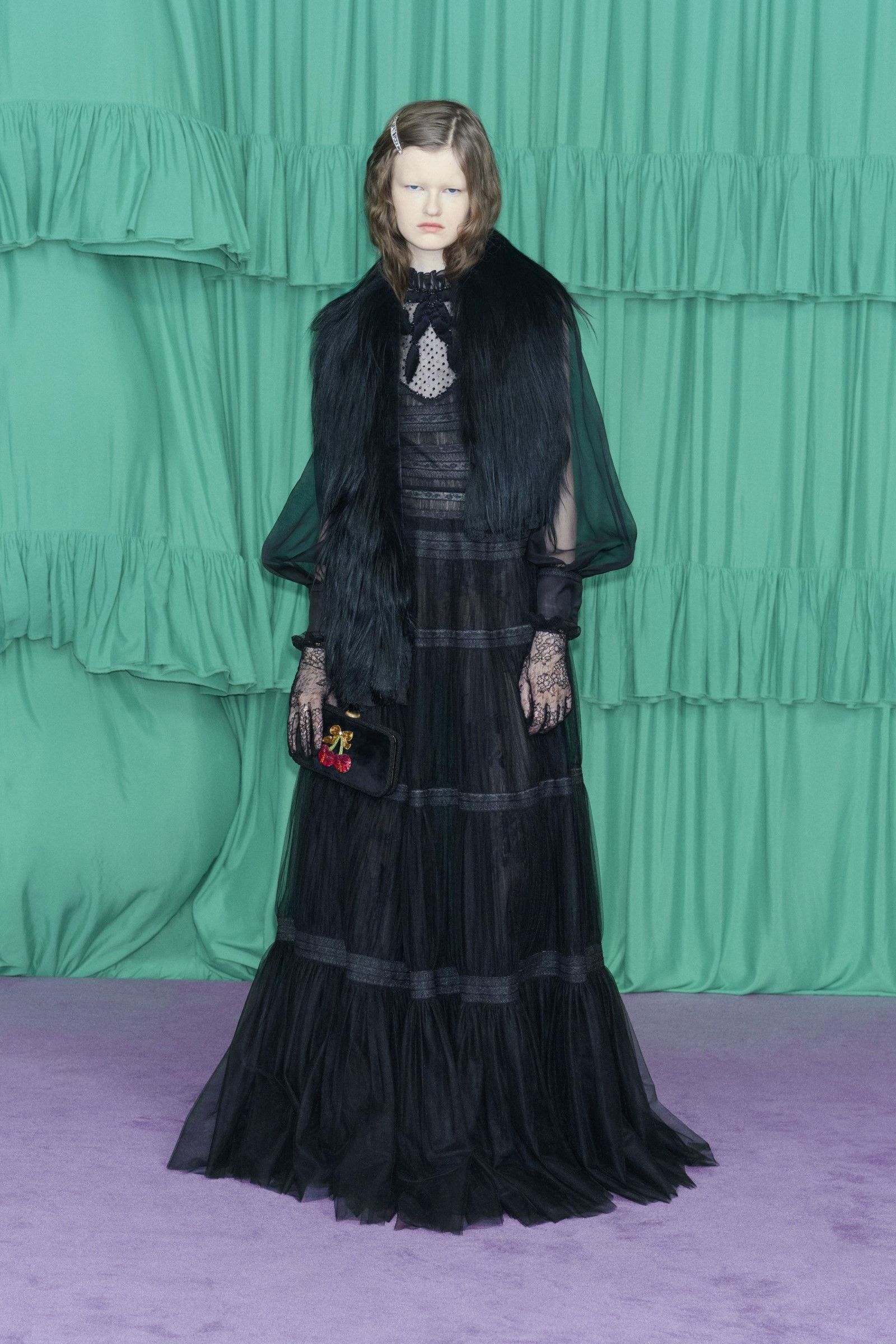 E avendo stabilito che Michele lavora in termini di espansione e accumulo piuttosto che di evoluzione lineare, scorrere i look di questa opulentissima collezione, grondante di minuziosi dettagli, straripante di preziosismi ci fa chiedere cosa bisognerà aspettarsi dal debutto di Michele nella Haute Couture. A ogni buon conto il direttore creativo sta lavorando a qualcosa di grandioso - ma come farà a superare in estro un ready-to-wear già così iperbolico? Rimaniamo in speranzosa attesa consapevoli che, dato il panorama della moda di oggi, un Alessandro Michele è meglio averlo che non averlo. Rimane però il dubbio di cosa voglia costruire il designer con il CEO Venturini e con il titanico apparato del brand stesso: un nuovo mondo o una cattedrale nel deserto?