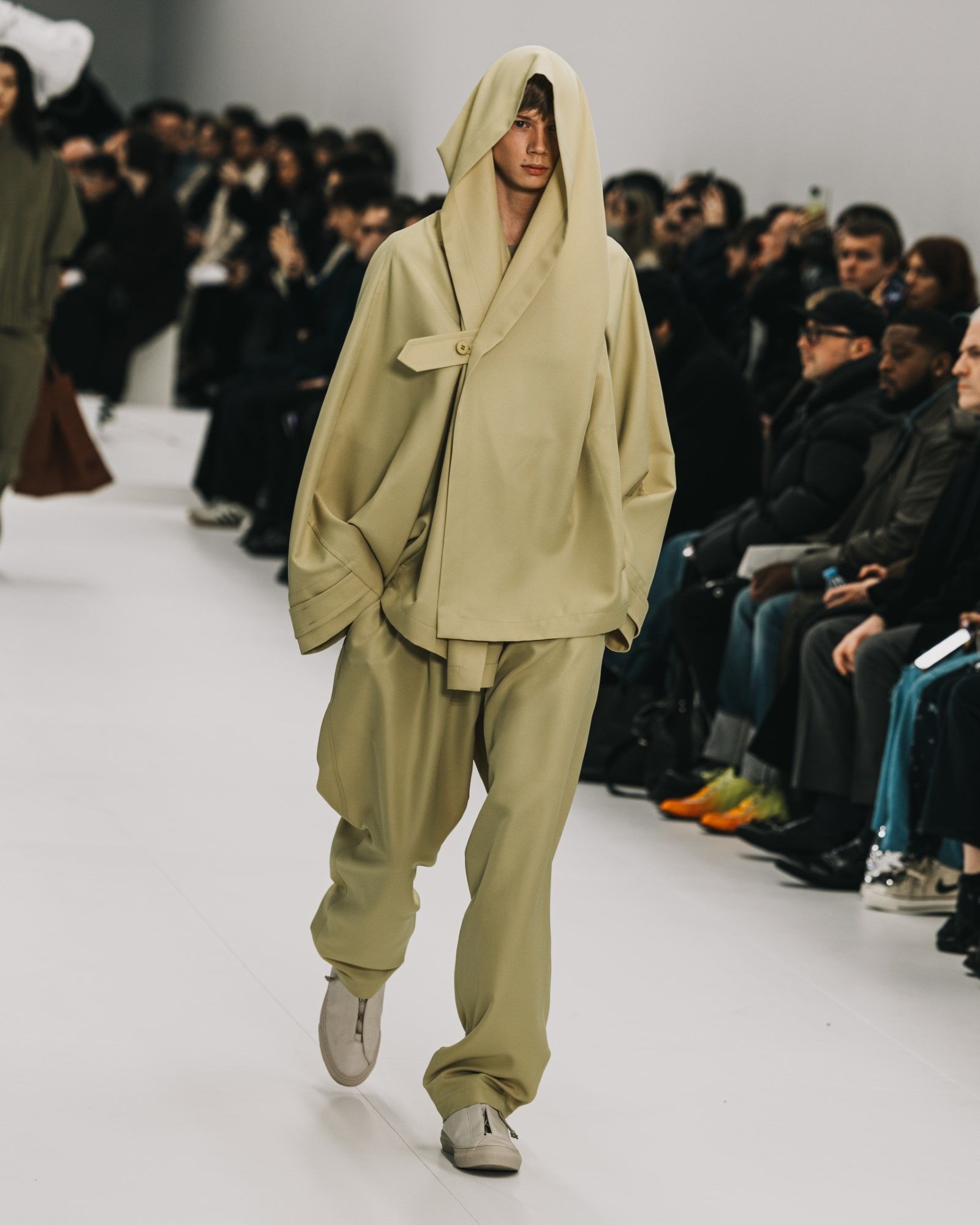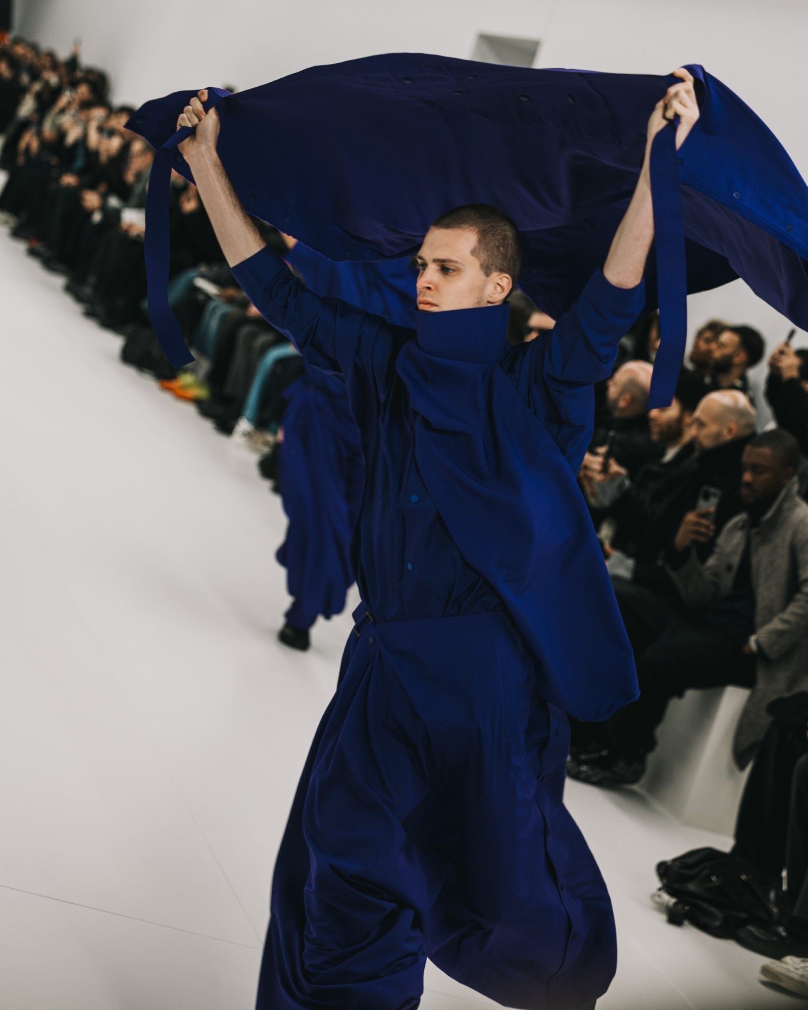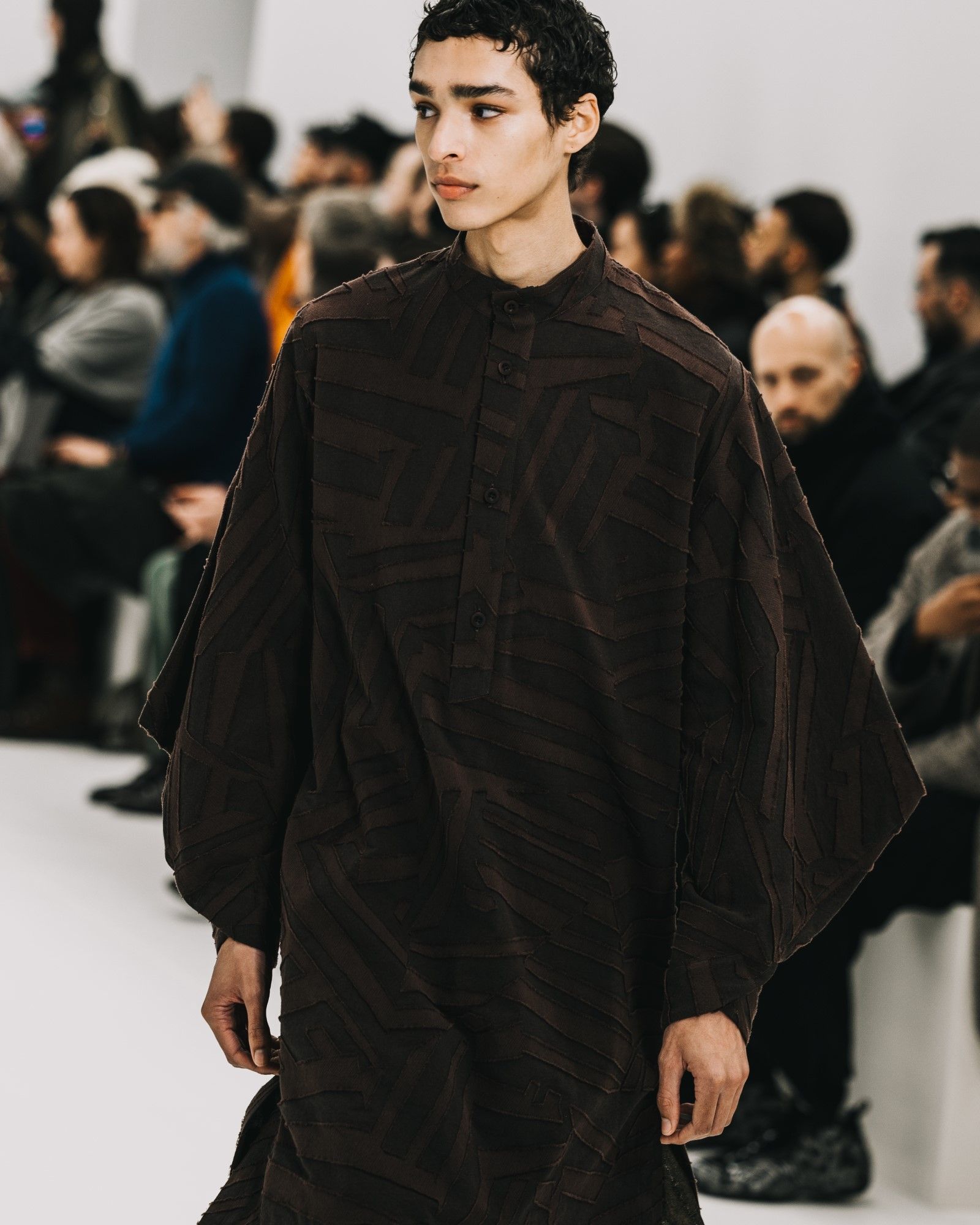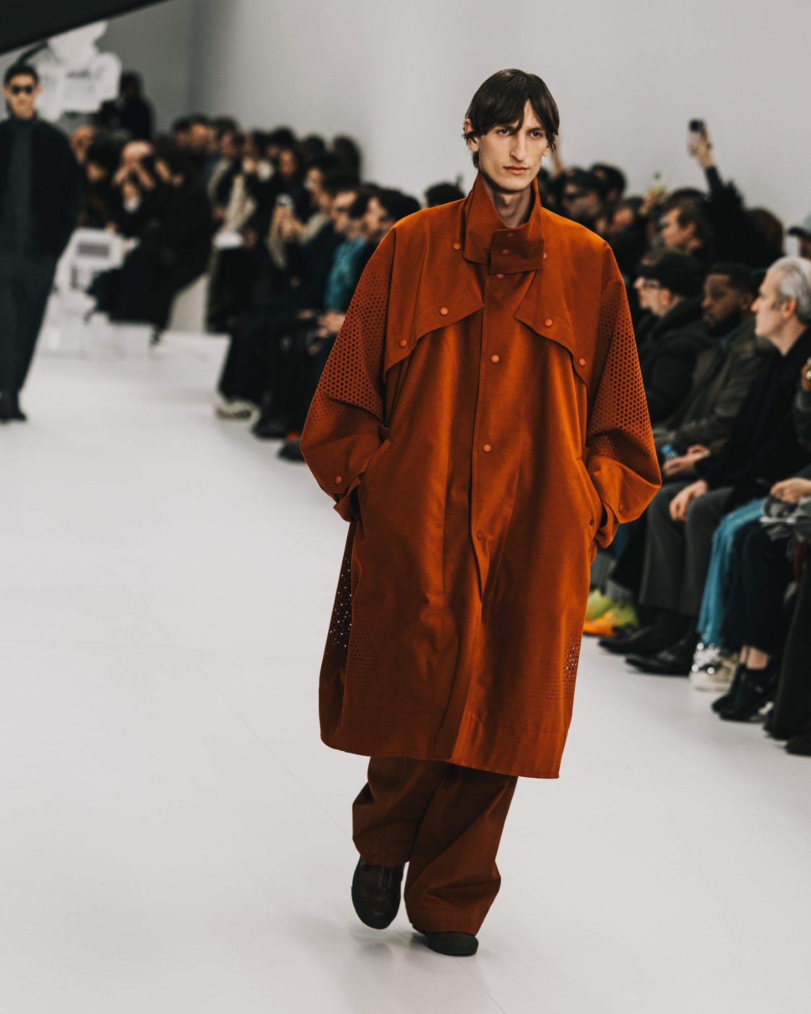 Ieri la collezione FW25 di IM MEN ha fatto il suo debutto ufficiale a Parigi, prendendo il posto che fu di Homme Plissé Issey Miyake sulle passerelle della moda – il che non significa che Homme Plissé Issey Miyake sia scomparso, semplicemente lo si troverà in presentazioni più intime mentre il posto sotto i riflettori sarà preso da questa linea dal sapore più avant-garde. Presentata nella suggestiva cornice del Réfectoire des Cordeliers, un ex monastero del XVI secolo, la sfilata ha segnato l’inizio di un nuovo capitolo per l'eredità del compianto maestro Issey Miyake che, possiamo dirlo, non potrebbe essere in mani migliori. IM MEN rappresenta l'ultima grande creazione del genio giapponese, avviata poco prima della sua scomparsa nel 2022. Il brand è nato dall’unione di tre designer: Sen Kawahara, Yuki Itakura e Nobutaka Kobayashi, che hanno collaborato con Miyake per sviluppare una nuova e più avanzata visione del menswear basata sul concetto cardine della sua filosofia: "A piece of cloth" che è la pietra angolare su cui il compianto designer, il suo vasto team e i suoi successori hanno costruito il complesso edificio di linee e proposte del brand e che spazia dalla moda fino al design d’interni. In questa collezione, il tessuto diventa il punto di partenza per una ridefinizione dell'abbigliamento, che unisce artigianalità, ingegneria e un senso di libertà creativa. Da sempre firma del brand, il libero movimento del corpo nei vestiti è stato protagonista anche della presentazione di ieri, che ha visto i modelli correre sulla passerella sciogliendo e riannodando i capi, mostrandone la leggera e ingengosa architettura. Sempre l’idea di movimento è stata esplorata dall’installazione del designer Tokujin Yoshioka, che ha decorato la venue con enormi braccia robotiche che sollevavano pannelli neri seguendo movimenti ipnotici.