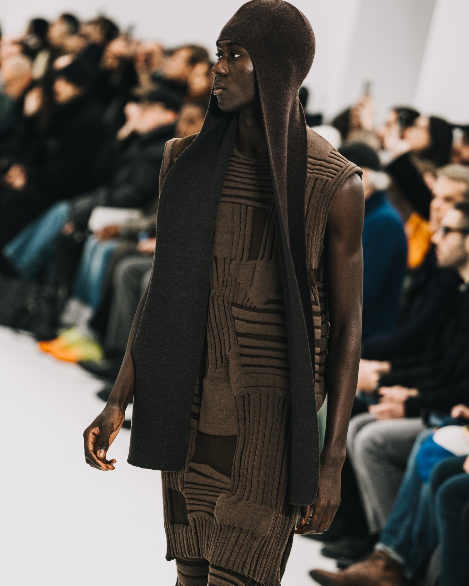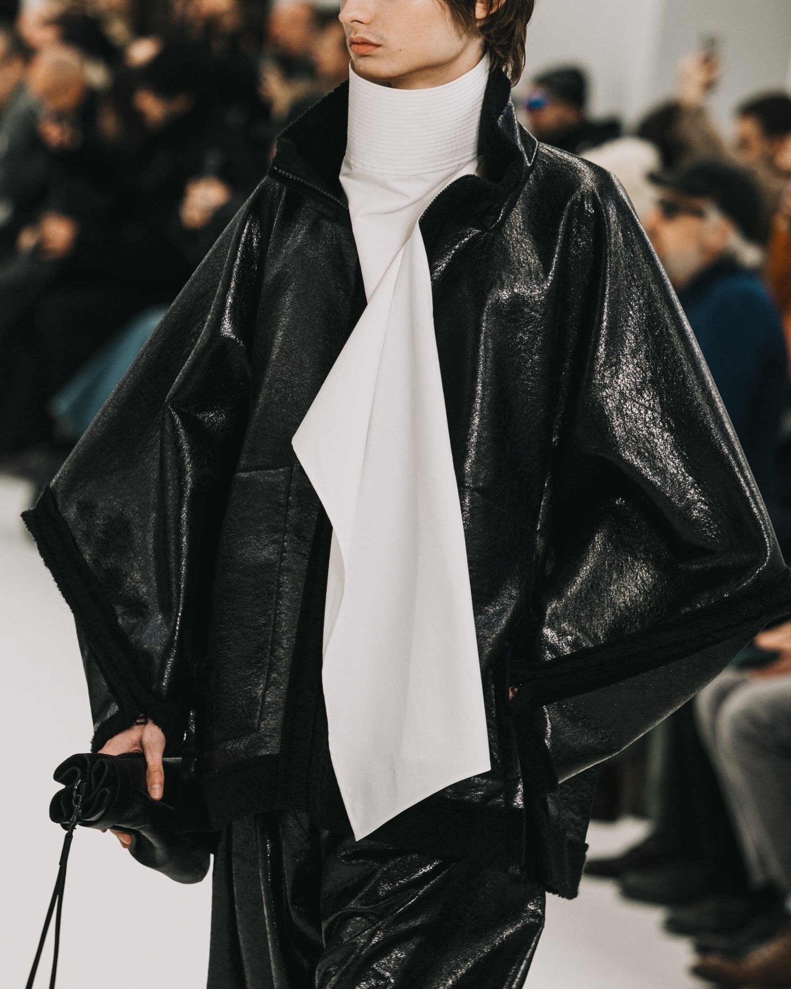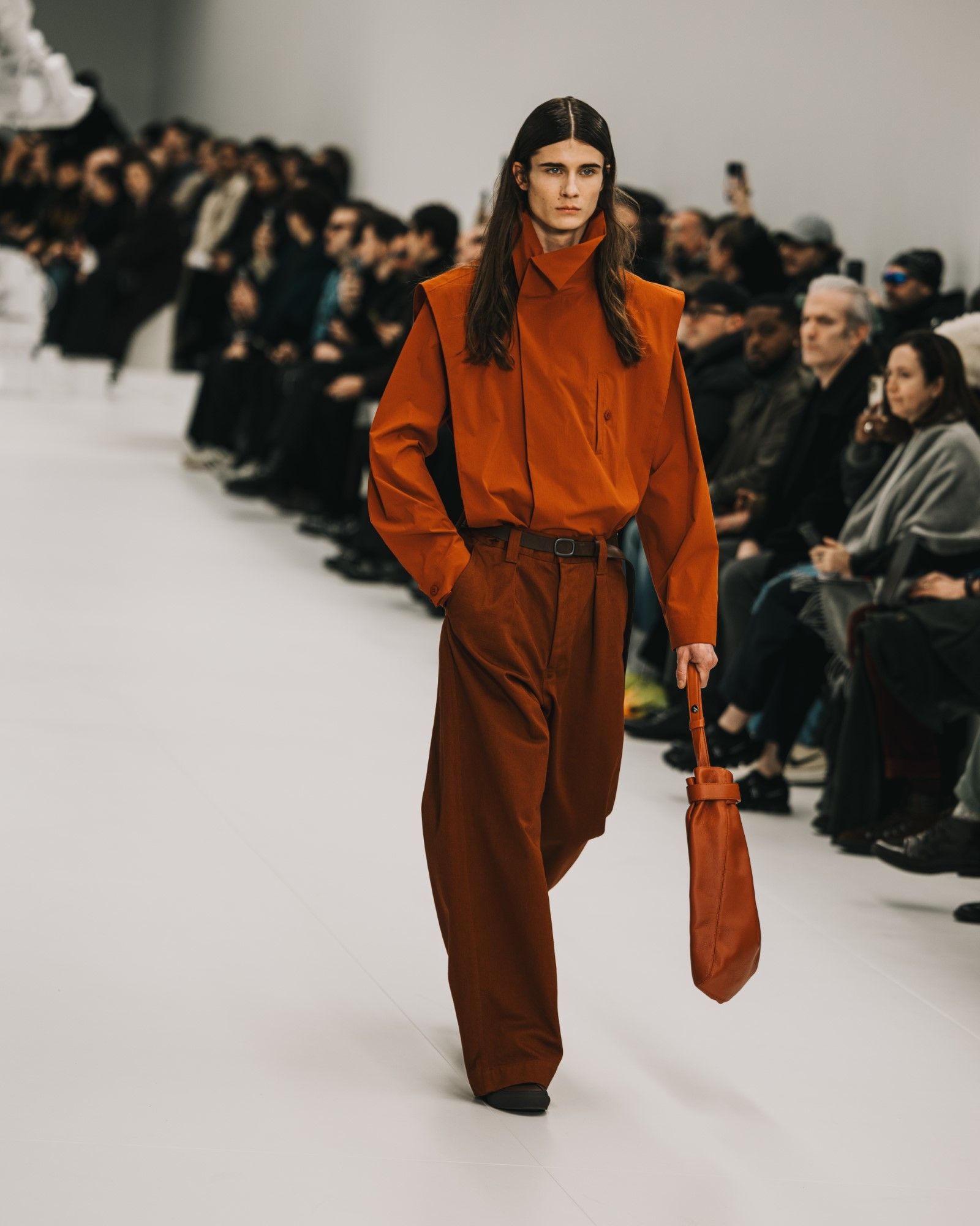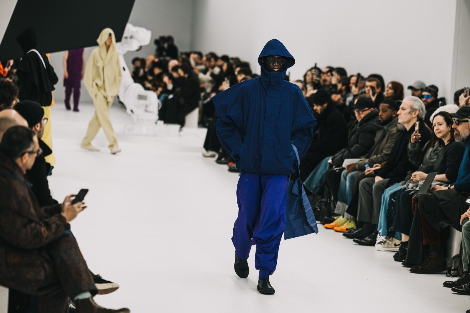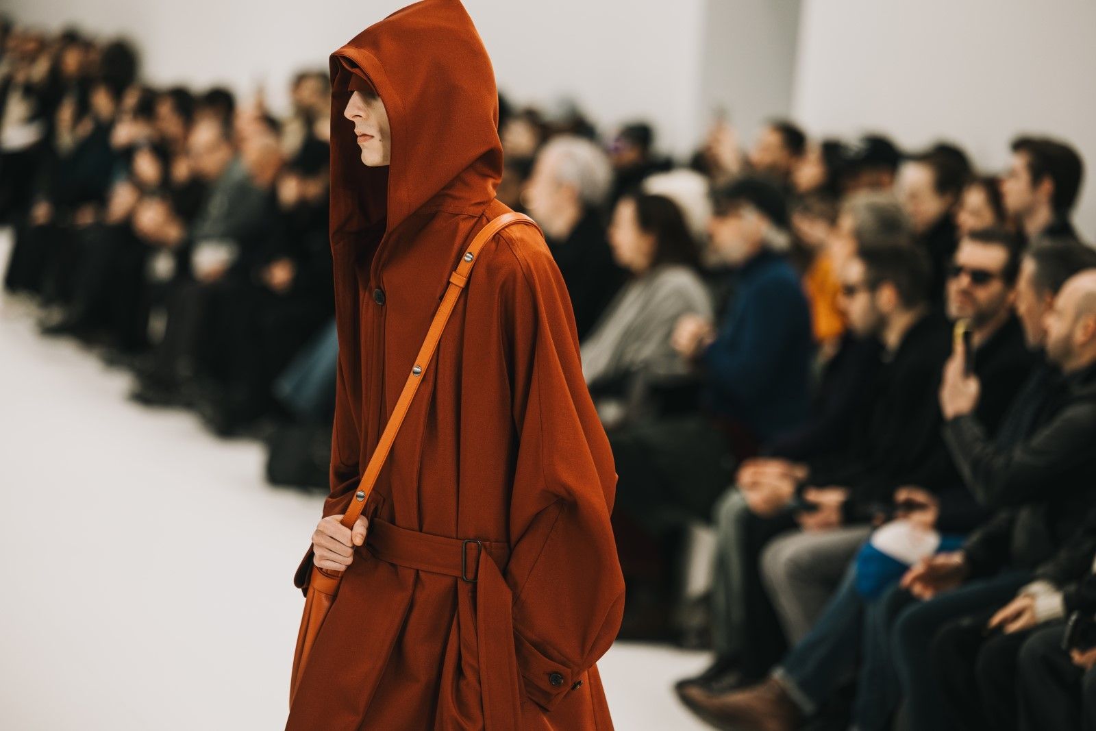 Ieri la collezione FW25 di IM MEN ha fatto il suo debutto ufficiale a Parigi, prendendo il posto che fu di Homme Plissé Issey Miyake sulle passerelle della moda – il che non significa che Homme Plissé Issey Miyake sia scomparso, semplicemente lo si troverà in presentazioni più intime mentre il posto sotto i riflettori sarà preso da questa linea dal sapore più avant-garde. Presentata nella suggestiva cornice del Réfectoire des Cordeliers, un ex monastero del XVI secolo, la sfilata ha segnato l’inizio di un nuovo capitolo per l'eredità del compianto maestro Issey Miyake che, possiamo dirlo, non potrebbe essere in mani migliori. IM MEN rappresenta l'ultima grande creazione del genio giapponese, avviata poco prima della sua scomparsa nel 2022. Il brand è nato dall’unione di tre designer: Sen Kawahara, Yuki Itakura e Nobutaka Kobayashi, che hanno collaborato con Miyake per sviluppare una nuova e più avanzata visione del menswear basata sul concetto cardine della sua filosofia: "A piece of cloth" che è la pietra angolare su cui il compianto designer, il suo vasto team e i suoi successori hanno costruito il complesso edificio di linee e proposte del brand e che spazia dalla moda fino al design d’interni. In questa collezione, il tessuto diventa il punto di partenza per una ridefinizione dell'abbigliamento, che unisce artigianalità, ingegneria e un senso di libertà creativa. Da sempre firma del brand, il libero movimento del corpo nei vestiti è stato protagonista anche della presentazione di ieri, che ha visto i modelli correre sulla passerella sciogliendo e riannodando i capi, mostrandone la leggera e ingengosa architettura. Sempre l’idea di movimento è stata esplorata dall’installazione del designer Tokujin Yoshioka, che ha decorato la venue con enormi braccia robotiche che sollevavano pannelli neri seguendo movimenti ipnotici.