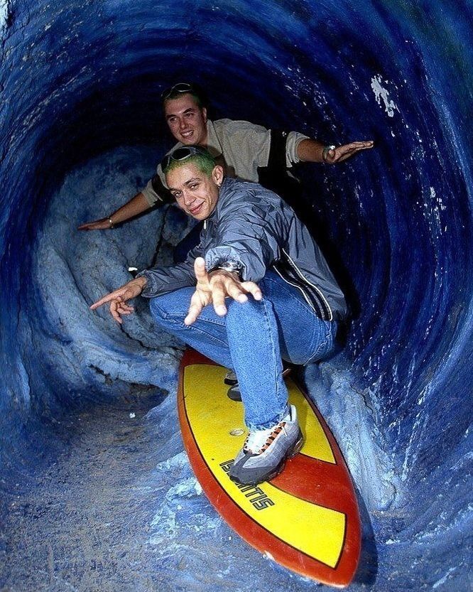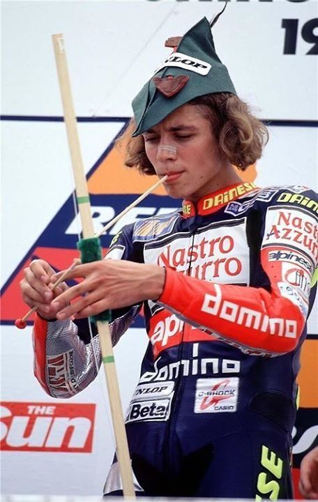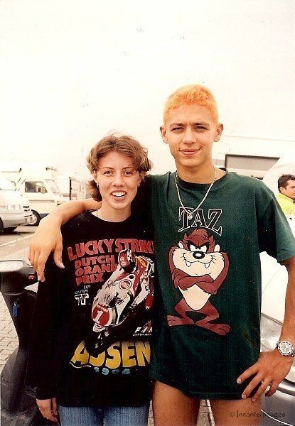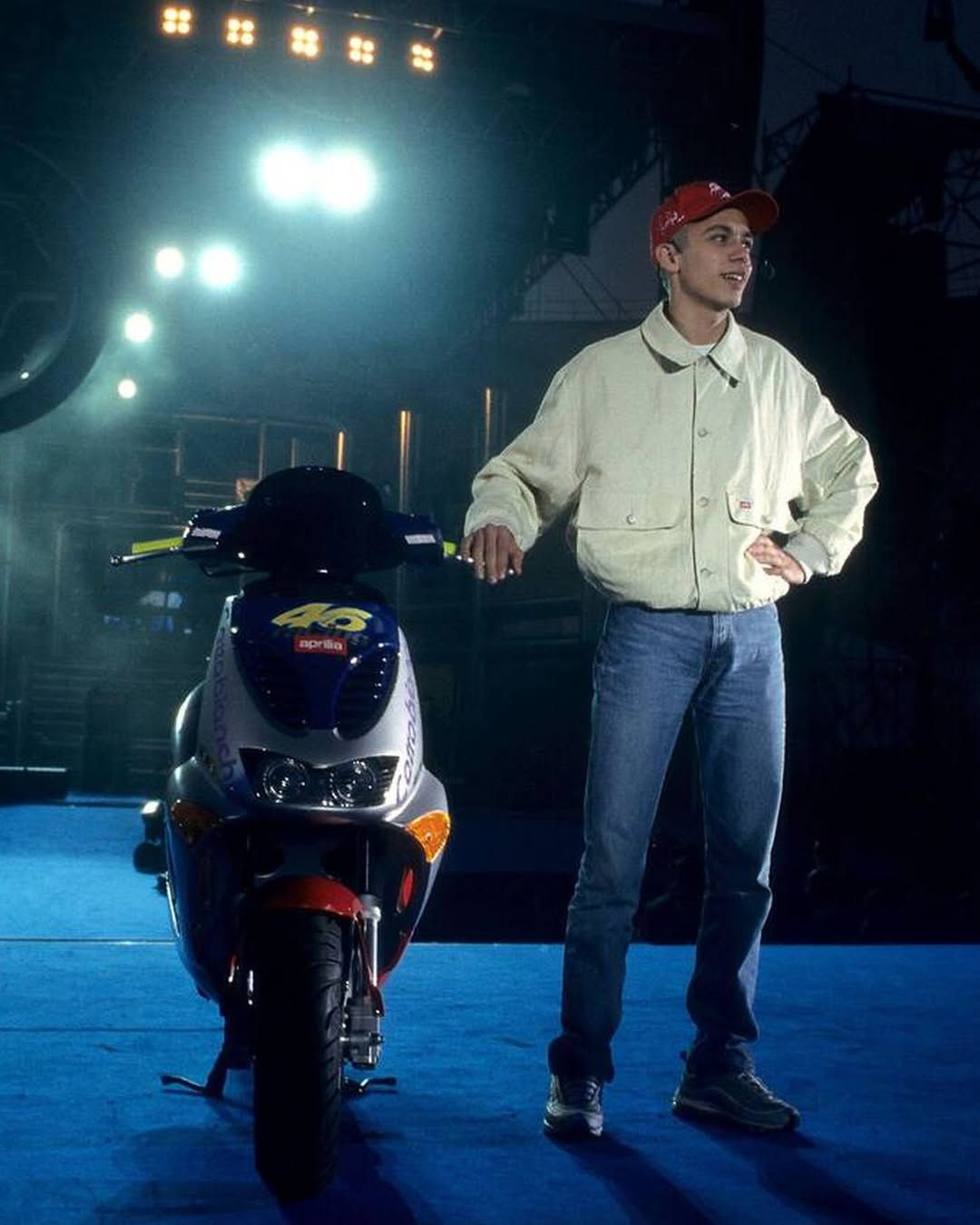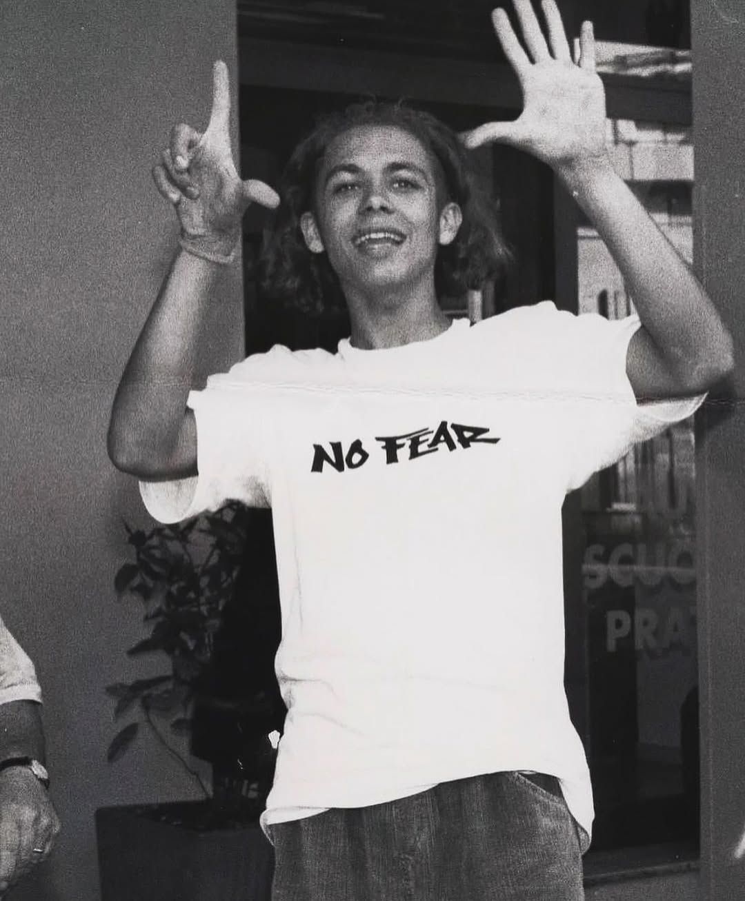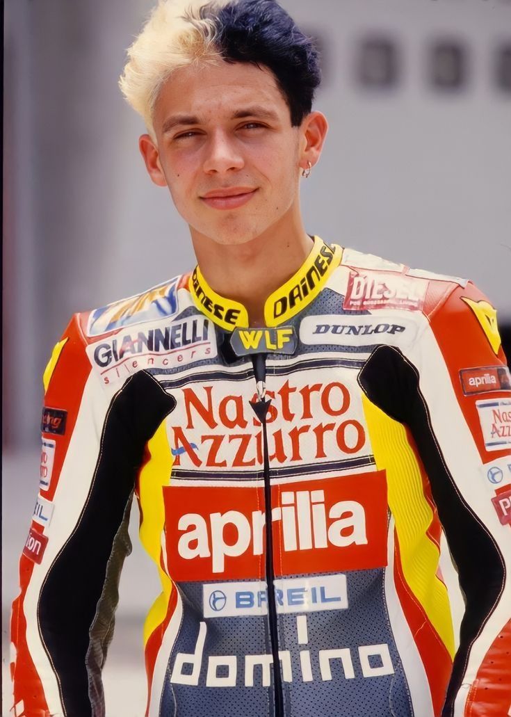 Come tutti i ragazzi cresciuti negli anni ’90 (Valentino Rossi è nato il 16 febbraio 1979), lo stile del Dottore seguiva la moda sportiva all'avanguardia dell’epoca, sebbene con una marcia in più. Al polso portava orologi G-Shock in tutti i colori, un grande classico dell’era della rivoluzione digitale; sul viso occhiali da sole sportivi in total black o argento della Oakley. Da piccolo poi, tantissime t-shirt oversize con le stampe dei Looney Tunes (del resto, il cult Space Jam con Michael Jordan e Bugs Bunny è uscito nel 1996) e scritte graffiti-style, tra cui la più significativa, “No Fear”. Sotto il casco, i capelli del giovane Valentino Rossi erano ribelli come lui, biondi e lunghissimi oppure rasati e tinti di tutti i colori, dal verde brillante al platino, passando per lo split-dye bianco e nero. Da vero fan dello streetwear, nell’armadio del Dottore c’era una collezione vastissima di Nike Air Max 95 ma anche Air Jordan 1 Retro High, Vans, Converse All Stars e Oakley Flesh Sandal.