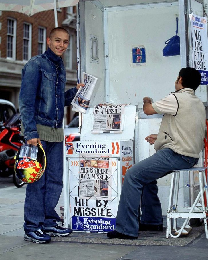 Se si cerca su Google lo stile di Valentino Rossi, centinaia di risultati raccontano dello “stacco” del pilota, di come ha imparato ad adattarsi ai cambiamenti della MotoGP, dei suoi avversari e di come è riuscito a diventare Campione del Mondo per ben nove volte nel corso della sua carriera. Se invece si cerca sui motori di ricerca online la moda di Valentino Rossi, sbucano un’infinità di cappellini, t-shirt, tute sportive e adesivi per la moto VR46 nei colori preferiti del Dottore: blu elettrico, verde e giallo fluo. Un paio di ricerche online e si capisce subito l’impatto che Valentino Rossi ha avuto sul mondo della MotoGP e dello streetstyle; non molti, però, sanno che il pilota è stato anche una star dello streetwear anni ’90, tra Air Max 95, full look in denim, bucket hat in tessuto tecnico e tinta verde (anni prima che lo facesse Frank Ocean). Insomma, il Doc è un fuoriclasse sia in pista che fuori.
