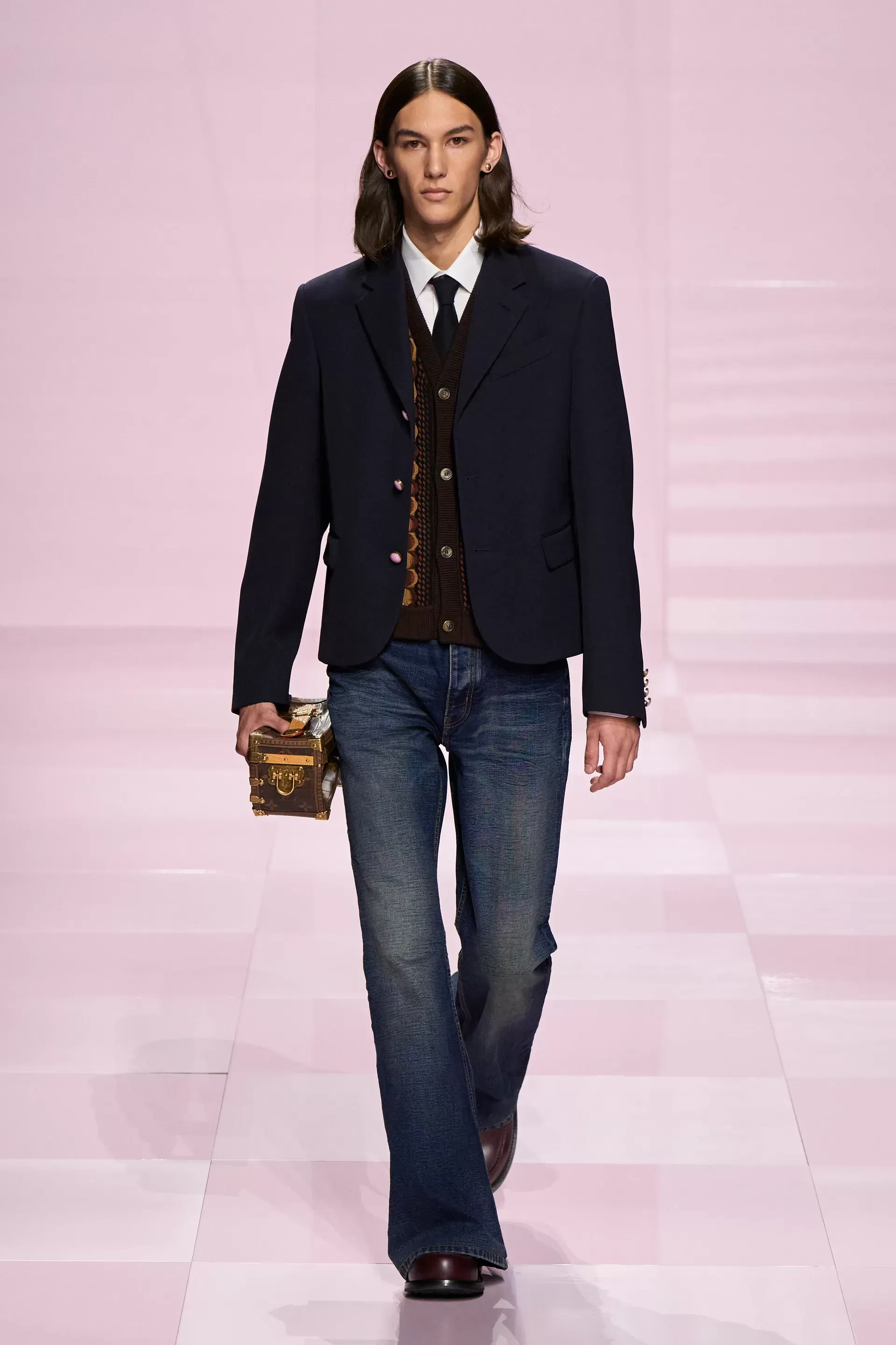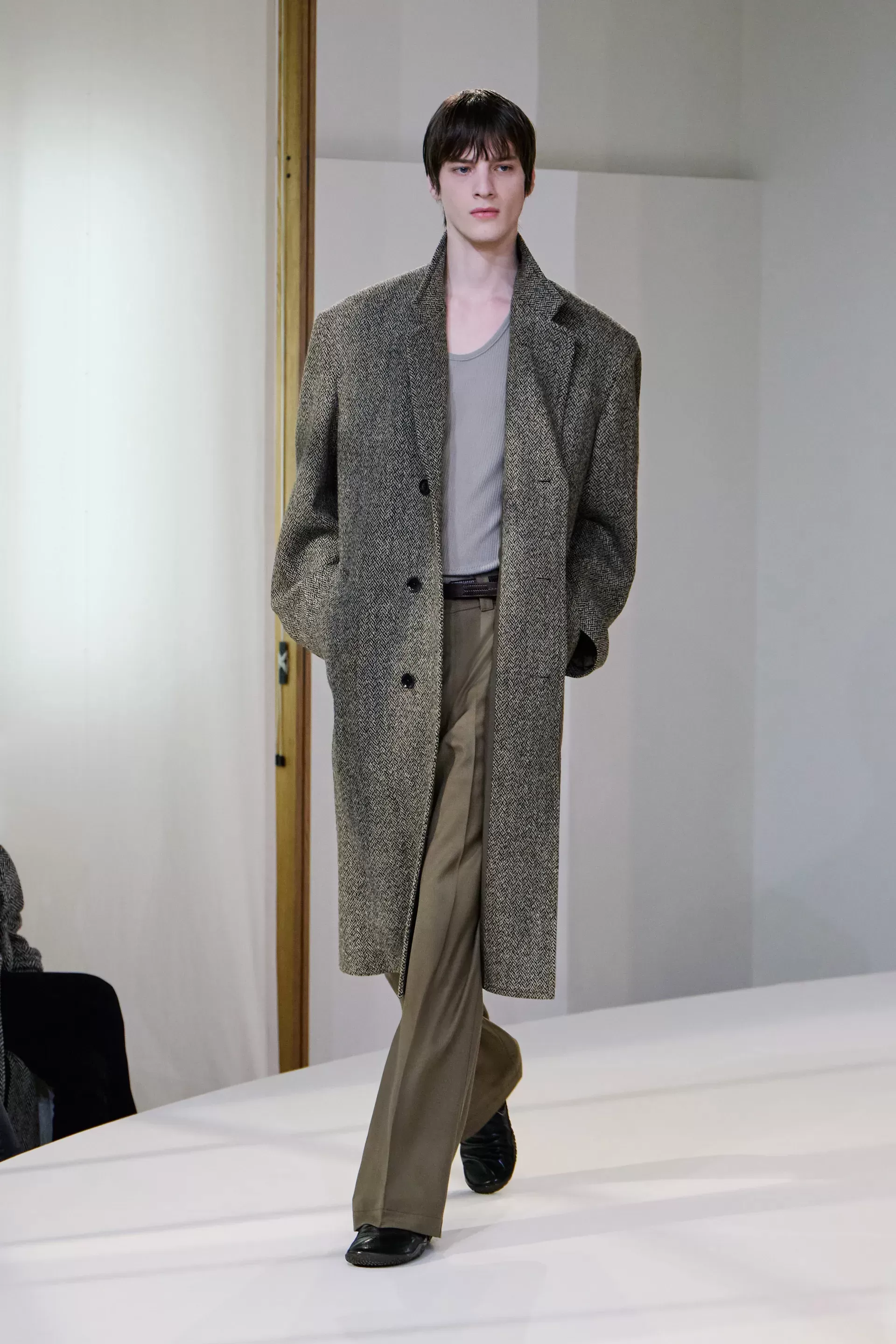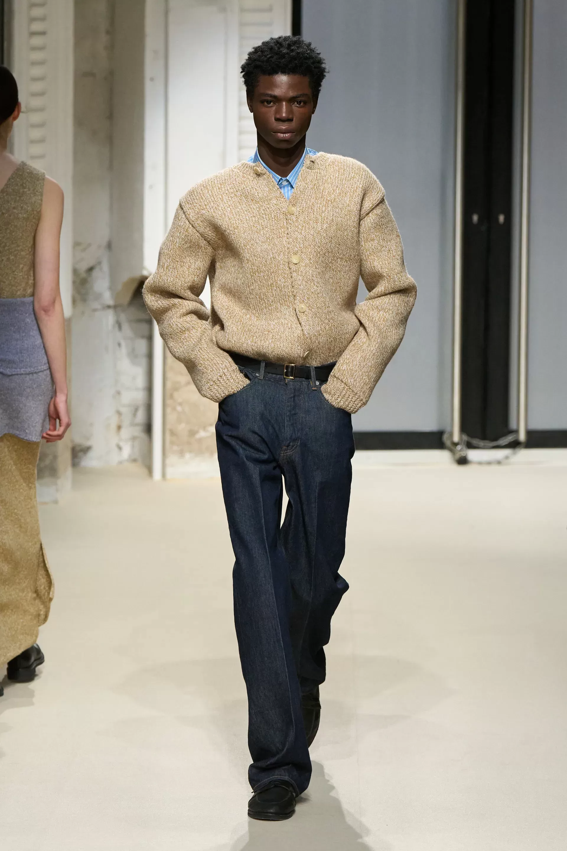 È stata però la collezione FW25 a consolidare il ritorno del bootcut. C’è chi ha preferito declinarlo in maniera casual, adatta a tutti i giorni – come Louis Vuitton, Acne, Courrèges e Berner Kühl, che si sono buttati sul denim a campana – e chi invece ha voluto fondere la forma del pantalone con la tradizione sartoriale del proprio DNA. In primis Zegna, che per la sfilata dedicata alla ricerca del Vello d’Oro ha deciso di riprendere il “vecchio” del bootcut e della sartoria italiana, modernizzandolo in chiave 2025. Sulla stessa scia troviamo Amiri e Aura Lee che, per restare fedeli agli anni della disco, hanno volutamente marcato la piega, così da rendere il pantalone elegante ma senza prendersi troppo sul serio, grazie ai tessuti morbidi. Lemaire, invece, ha reinterpretato il bootcut secondo i propri codici visivi e stilistici, rimanendo fedele a quella sensualità minimalista che lo contraddistingue.