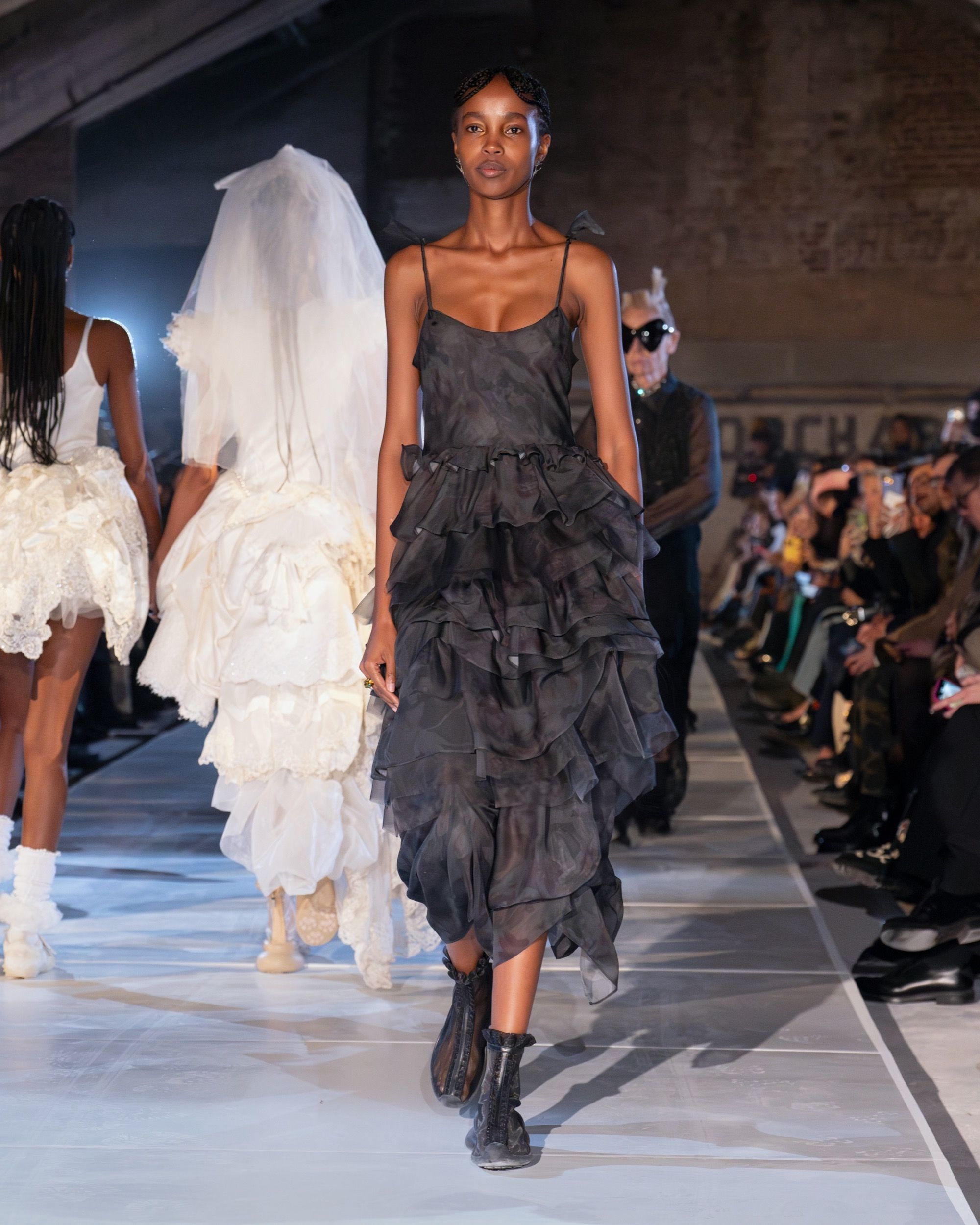Tra i debutti più attesi del 2025 c’era senza dubbio quello di Frances Howie, che dopo oltre dieci anni come design director di Stella McCartney è approdata alla direzione creativa di FForme. Una prima collezione che non ha disatteso le aspettative - a differenza di una collega di New York - fondendo una sensualità avvolta da colli alti con un’estetica cupa, fatta di materiali e texture pesanti (quasi à-la-Nosferatu). Il punto nevralgico? Le frange, protagoniste sia negli ampi capispalla sia negli accessori, dei grandi statement di questo debutto .