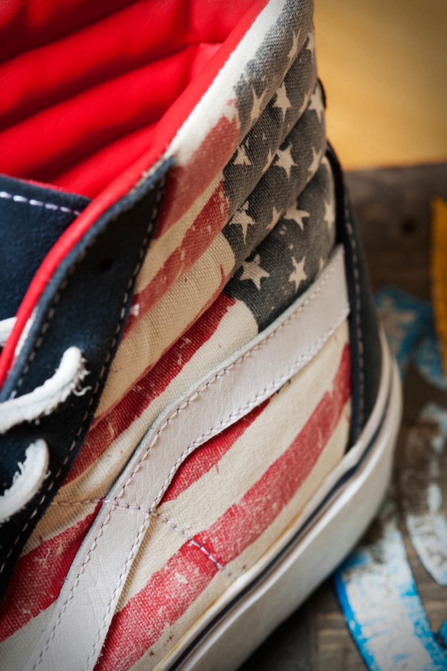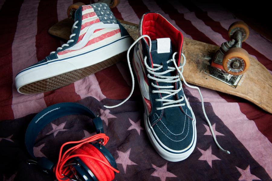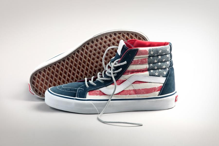 Dopo ben 40 anni di attività, Vans, azienda di sneakers nata in california nel, 1966 e divenuta poi punto di riferimento per milioni di skater, oggi rende "patriotticamente" omaggio alla sua nazione con il lancio della mitica Sk8 Hi versione "American Flag".