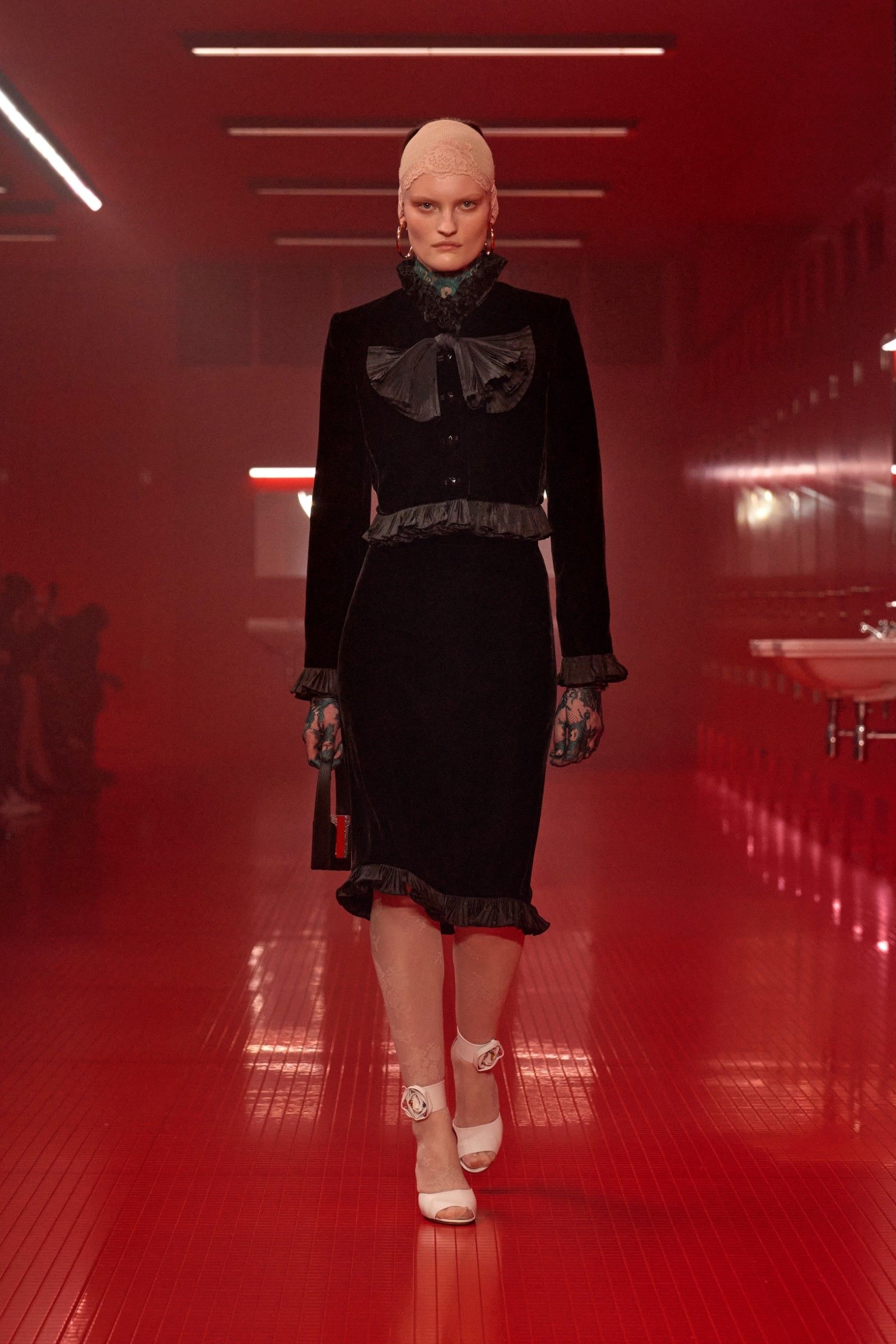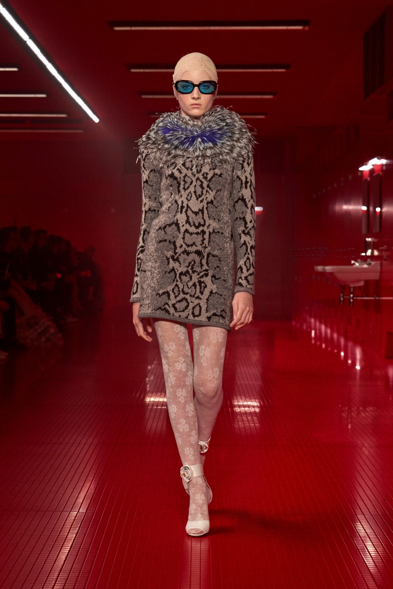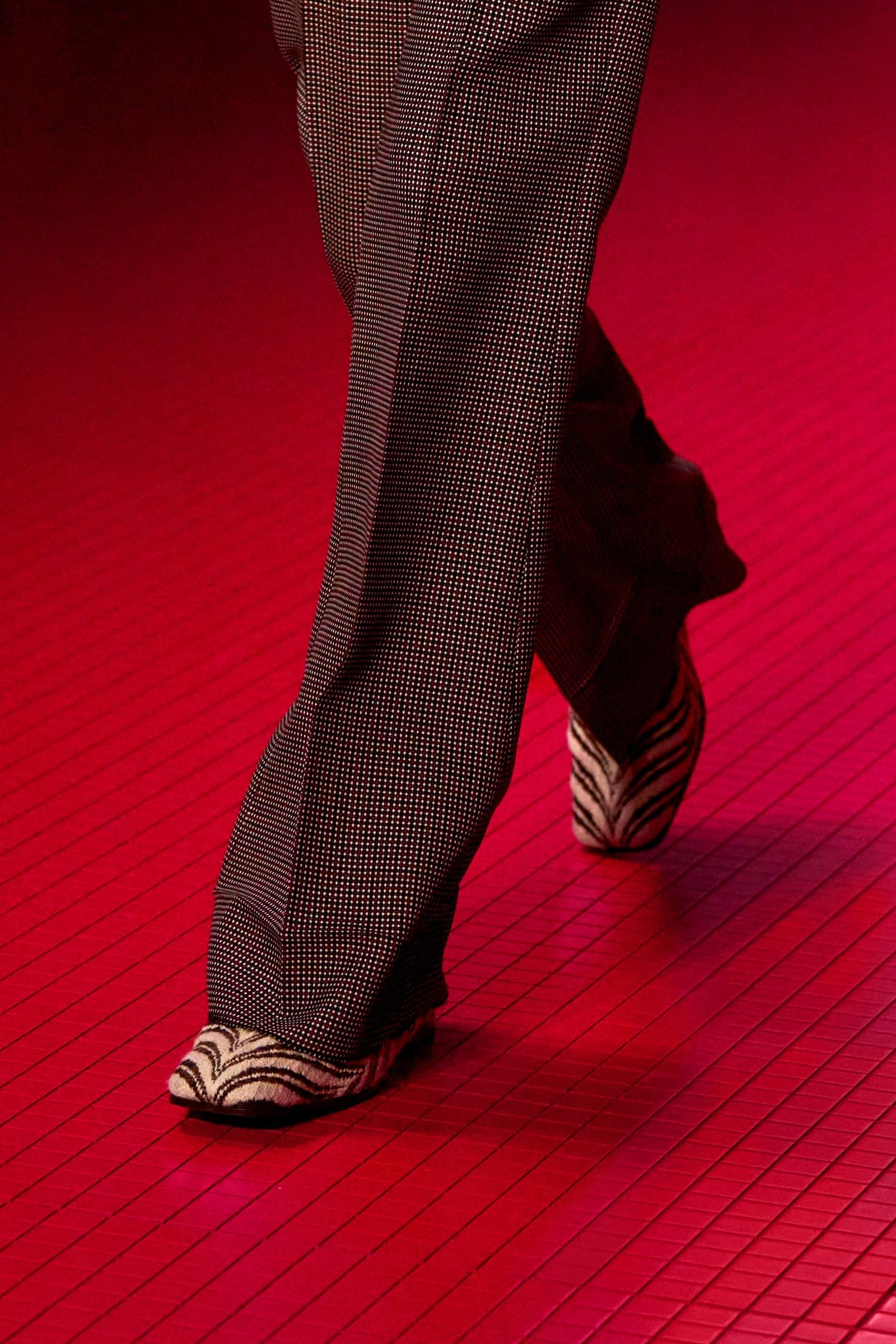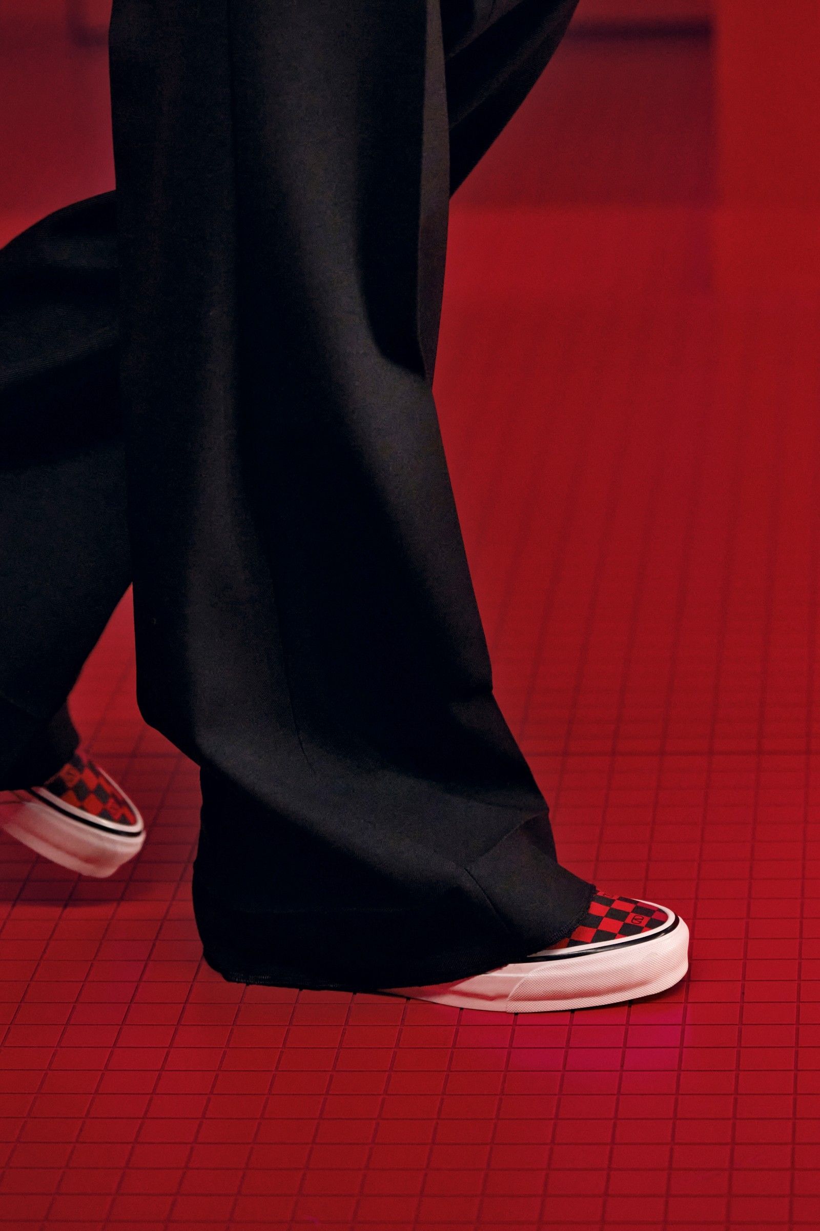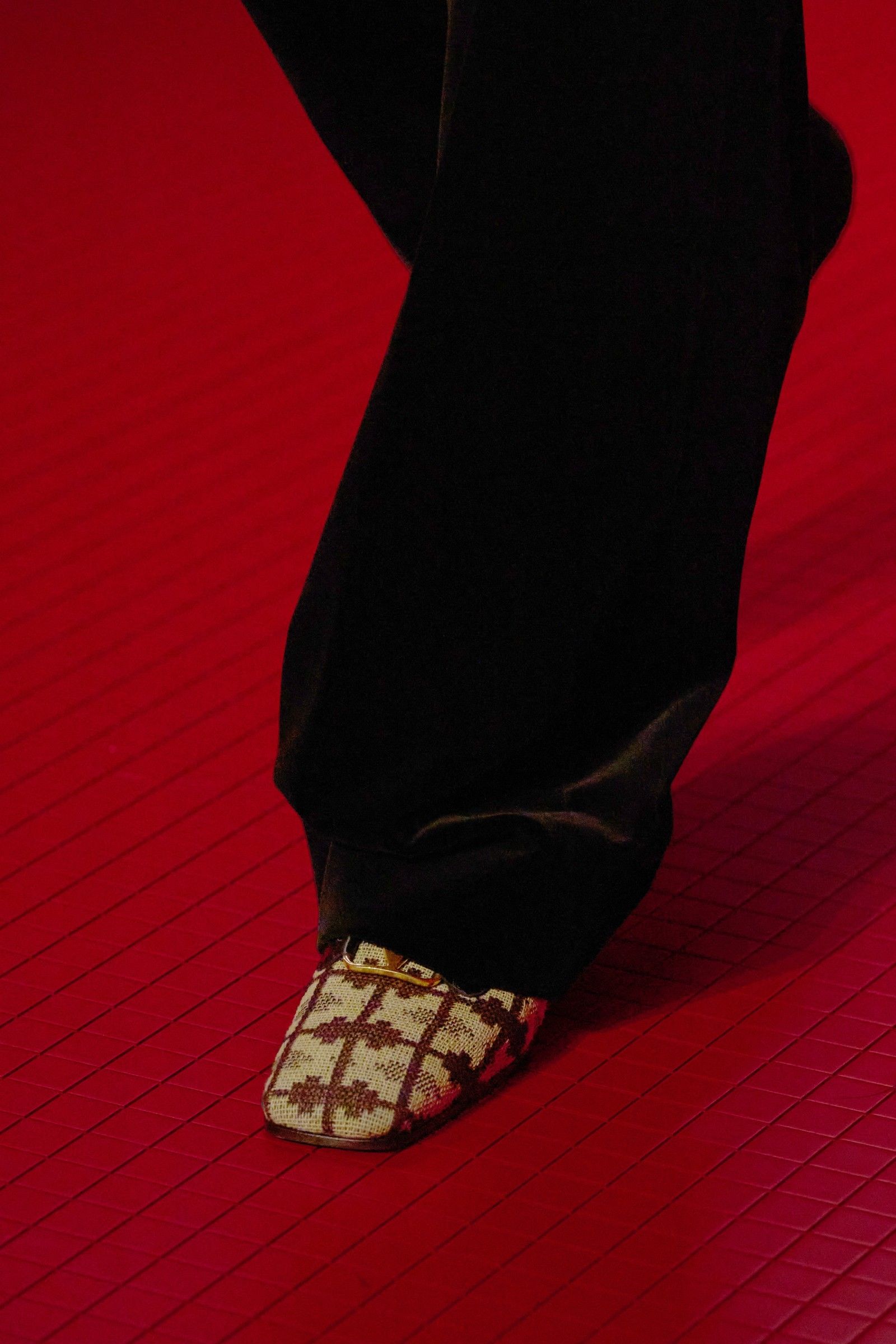 All’estremo opposto dello spettro della “normalità” c’era Alessandro Michele con Valentino. E se, come spesso accade, il concept del bagno pubblico come teatro di intimità performativa, spazio liminale dove ricordi di Lynch e di Kubrick si incrociano, prometteva bene – la collezione-fiume che Michele ha presentato ci ha in effetti dato l’impressione che il tempo fosse un bloccato in una spirale. È stato già ampiamente chiarito da diversi critici online che anche i pezzi più sopra le righe visti ieri allo show erano citazioni dell’enorme archivio di Valentino e che dunque Michele non sta rifacendo Gucci. Non di meno, questa consapevolezza e ogni approfondimento culturale possibile riescono a negare ciò che sta davanti ai nostri occhi? Le show notes firmate da Michele spendono tantissimo fiato sul significato del set dello show per cui, sembra di intendere, gli ottanta look di cui non si parla nemmeno fossero un mero pretesto. Era forse una collezione più misurata per Michele che, a differenza del passato, si è attenuto ai codici altoborghesi senza mescolare incongruamente gli “abiti della contessa” a short da bicicletta color fluo, harness sadomaso, sneaker da running e via dicendo. Il buono non mancava: la collaborazione con Vans era indovinata, i pantaloni con taglio bootcut molto à-la-page, le combo di pelliccia e pantaloni sartoriali, oggi come allora, restituiscono bene lo stile contemporaneo di molti giovani che indossano i nobili vestiti del passato insieme al proprio guardaroba casual. Ma anche a fronte di singoli prodotti e look molto validi (Michele è bravo nel suo lavoro, sa rivitalizzare le vendite e il team di Valentino è da sempre una potenza) non si può onestamente dire che questa collezione sarebbe stata diversa cinque o sette anni fa né che lo sarà la collezione che Michele ci presenterà a un anno o due da oggi.