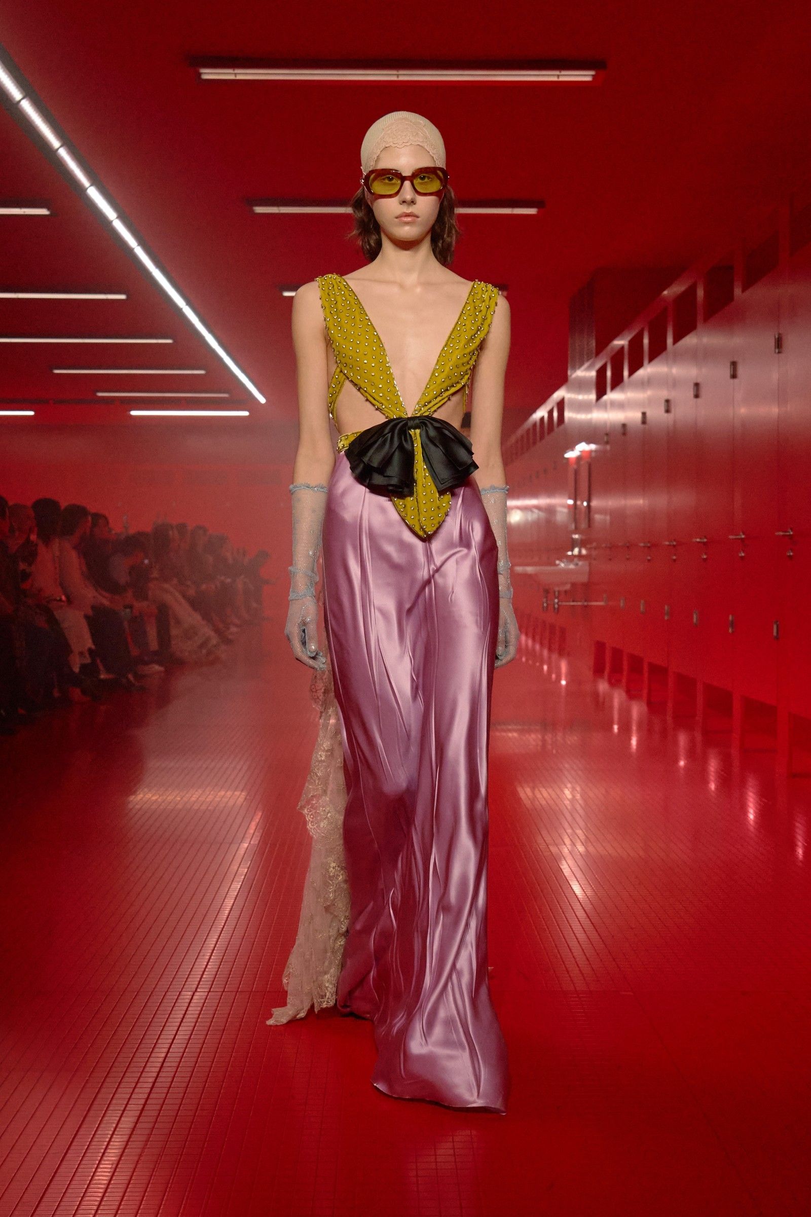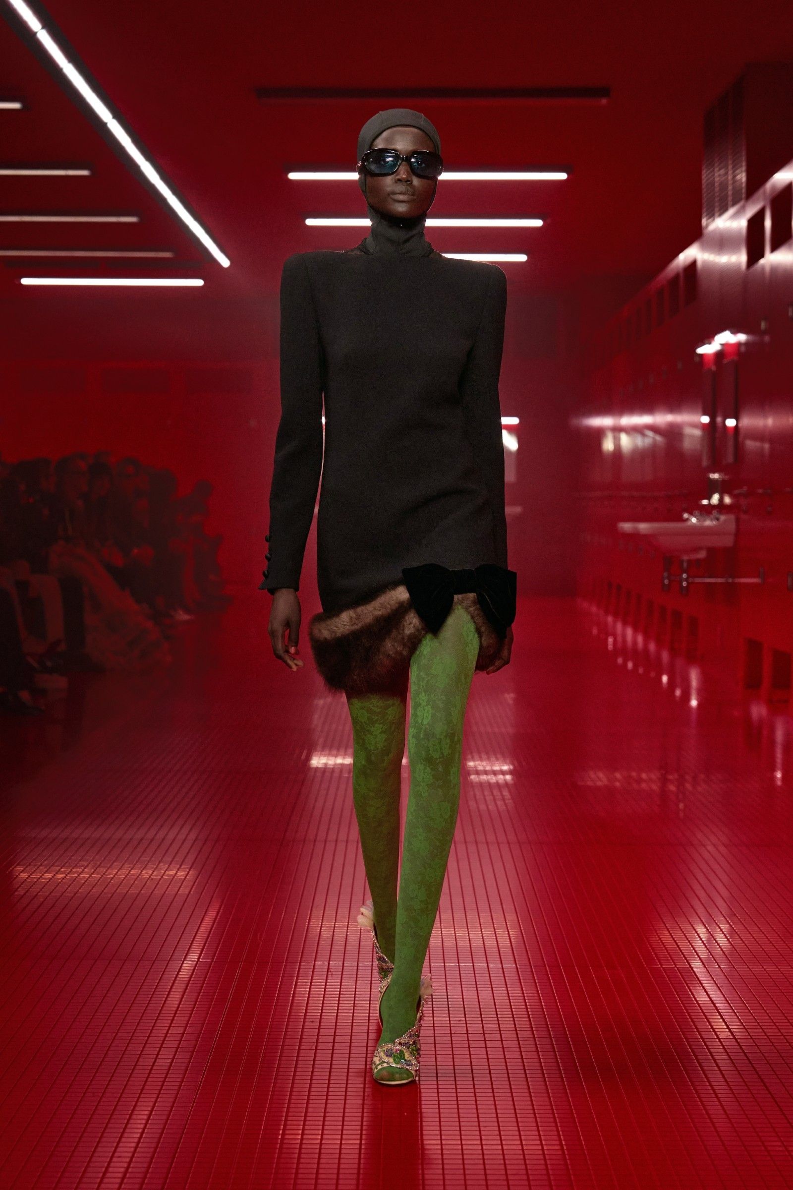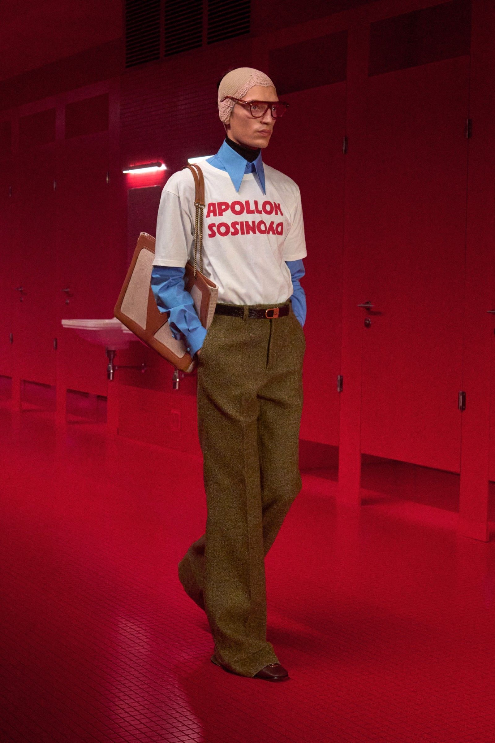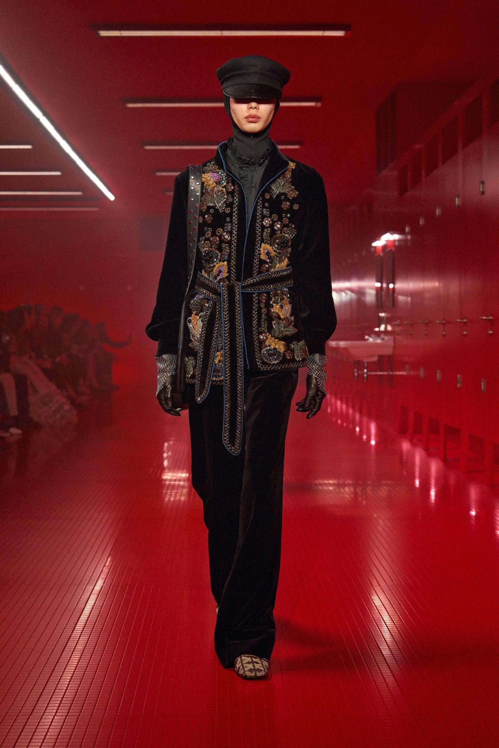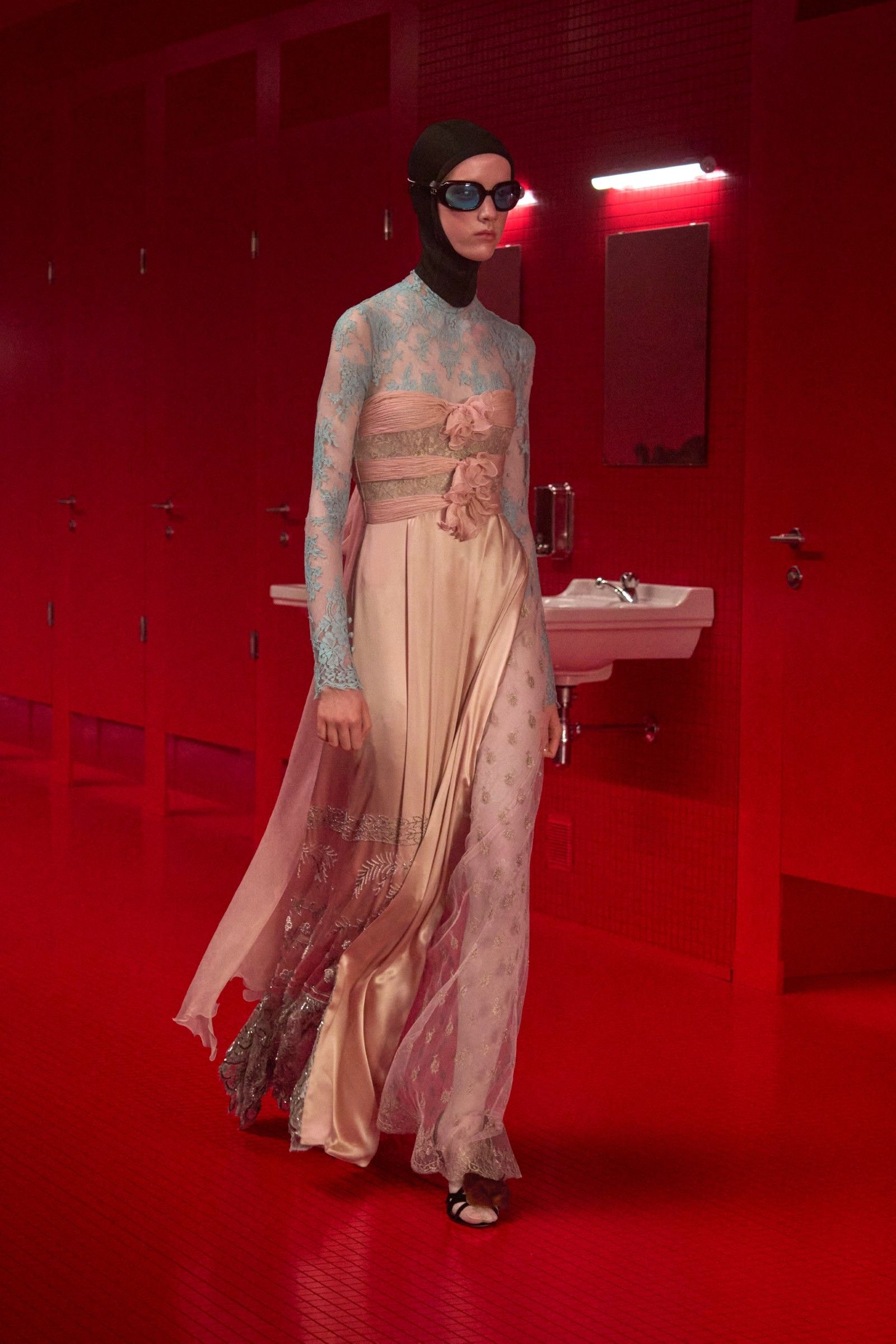 All’estremo opposto dello spettro della “normalità” c’era Alessandro Michele con Valentino. E se, come spesso accade, il concept del bagno pubblico come teatro di intimità performativa, spazio liminale dove ricordi di Lynch e di Kubrick si incrociano, prometteva bene – la collezione-fiume che Michele ha presentato ci ha in effetti dato l’impressione che il tempo fosse un bloccato in una spirale. È stato già ampiamente chiarito da diversi critici online che anche i pezzi più sopra le righe visti ieri allo show erano citazioni dell’enorme archivio di Valentino e che dunque Michele non sta rifacendo Gucci. Non di meno, questa consapevolezza e ogni approfondimento culturale possibile riescono a negare ciò che sta davanti ai nostri occhi? Le show notes firmate da Michele spendono tantissimo fiato sul significato del set dello show per cui, sembra di intendere, gli ottanta look di cui non si parla nemmeno fossero un mero pretesto. Era forse una collezione più misurata per Michele che, a differenza del passato, si è attenuto ai codici altoborghesi senza mescolare incongruamente gli “abiti della contessa” a short da bicicletta color fluo, harness sadomaso, sneaker da running e via dicendo. Il buono non mancava: la collaborazione con Vans era indovinata, i pantaloni con taglio bootcut molto à-la-page, le combo di pelliccia e pantaloni sartoriali, oggi come allora, restituiscono bene lo stile contemporaneo di molti giovani che indossano i nobili vestiti del passato insieme al proprio guardaroba casual. Ma anche a fronte di singoli prodotti e look molto validi (Michele è bravo nel suo lavoro, sa rivitalizzare le vendite e il team di Valentino è da sempre una potenza) non si può onestamente dire che questa collezione sarebbe stata diversa cinque o sette anni fa né che lo sarà la collezione che Michele ci presenterà a un anno o due da oggi.