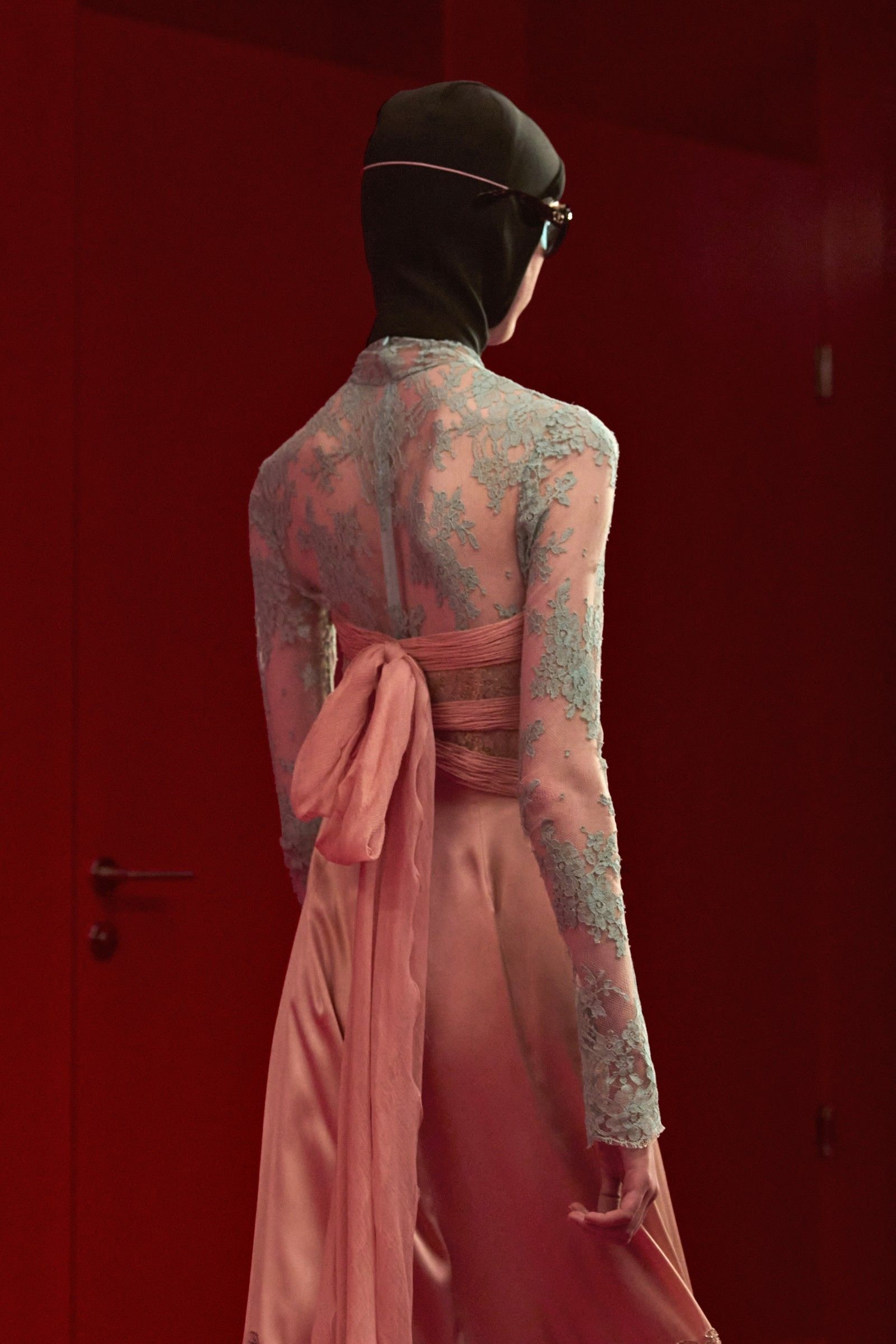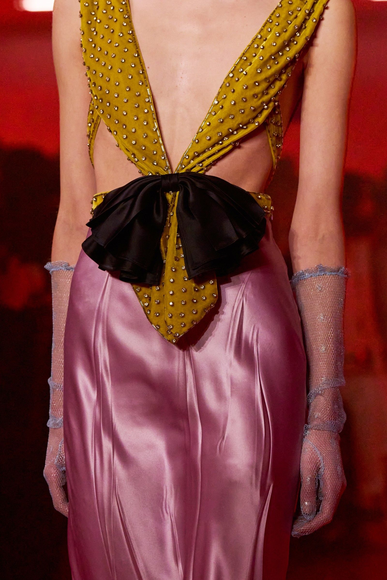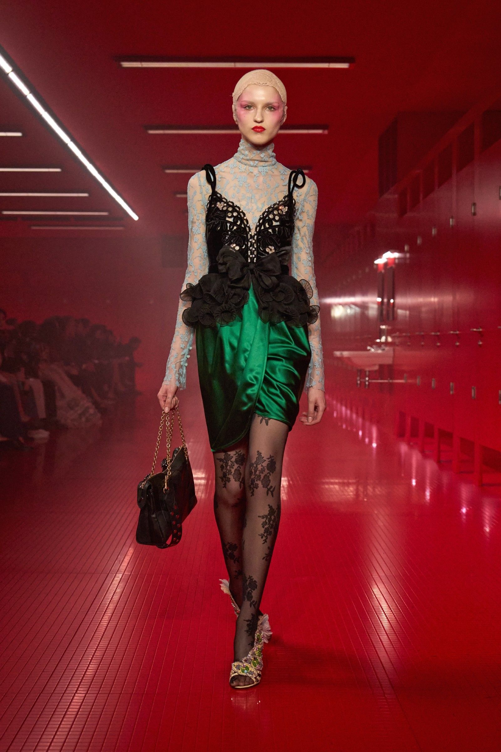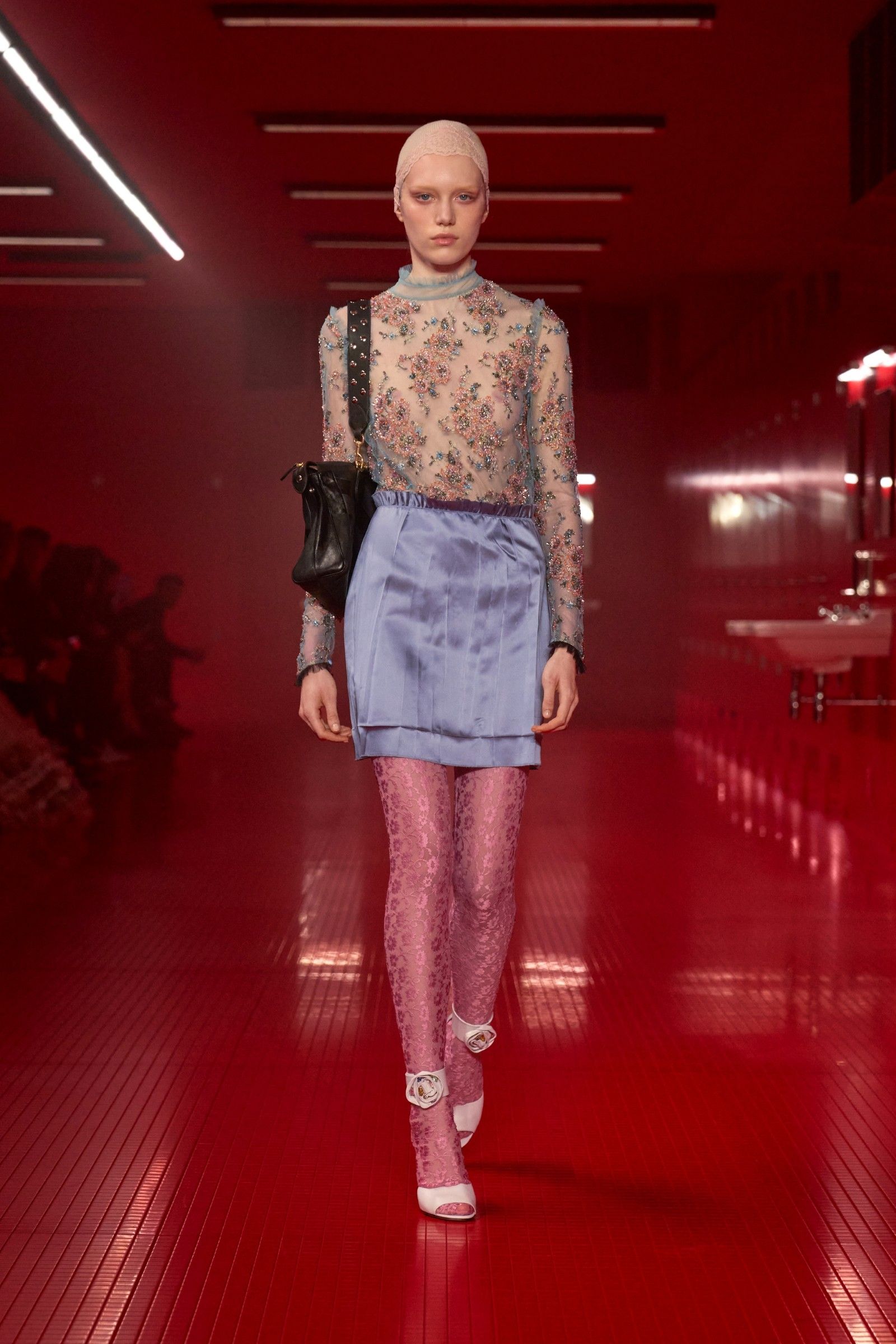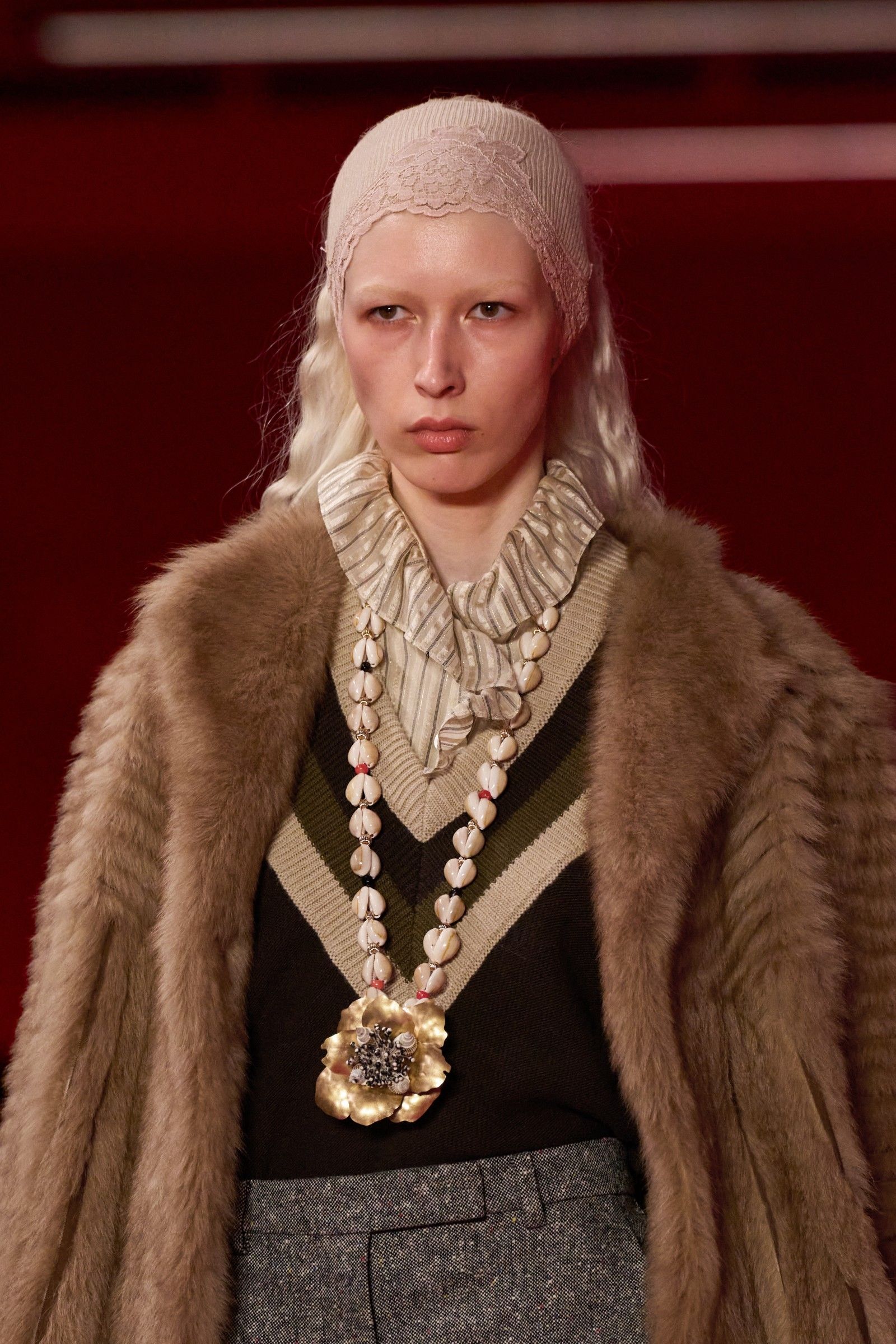 All’estremo opposto dello spettro della “normalità” c’era Alessandro Michele con Valentino. E se, come spesso accade, il concept del bagno pubblico come teatro di intimità performativa, spazio liminale dove ricordi di Lynch e di Kubrick si incrociano, prometteva bene – la collezione-fiume che Michele ha presentato ci ha in effetti dato l’impressione che il tempo fosse un bloccato in una spirale. È stato già ampiamente chiarito da diversi critici online che anche i pezzi più sopra le righe visti ieri allo show erano citazioni dell’enorme archivio di Valentino e che dunque Michele non sta rifacendo Gucci. Non di meno, questa consapevolezza e ogni approfondimento culturale possibile riescono a negare ciò che sta davanti ai nostri occhi? Le show notes firmate da Michele spendono tantissimo fiato sul significato del set dello show per cui, sembra di intendere, gli ottanta look di cui non si parla nemmeno fossero un mero pretesto. Era forse una collezione più misurata per Michele che, a differenza del passato, si è attenuto ai codici altoborghesi senza mescolare incongruamente gli “abiti della contessa” a short da bicicletta color fluo, harness sadomaso, sneaker da running e via dicendo. Il buono non mancava: la collaborazione con Vans era indovinata, i pantaloni con taglio bootcut molto à-la-page, le combo di pelliccia e pantaloni sartoriali, oggi come allora, restituiscono bene lo stile contemporaneo di molti giovani che indossano i nobili vestiti del passato insieme al proprio guardaroba casual. Ma anche a fronte di singoli prodotti e look molto validi (Michele è bravo nel suo lavoro, sa rivitalizzare le vendite e il team di Valentino è da sempre una potenza) non si può onestamente dire che questa collezione sarebbe stata diversa cinque o sette anni fa né che lo sarà la collezione che Michele ci presenterà a un anno o due da oggi.